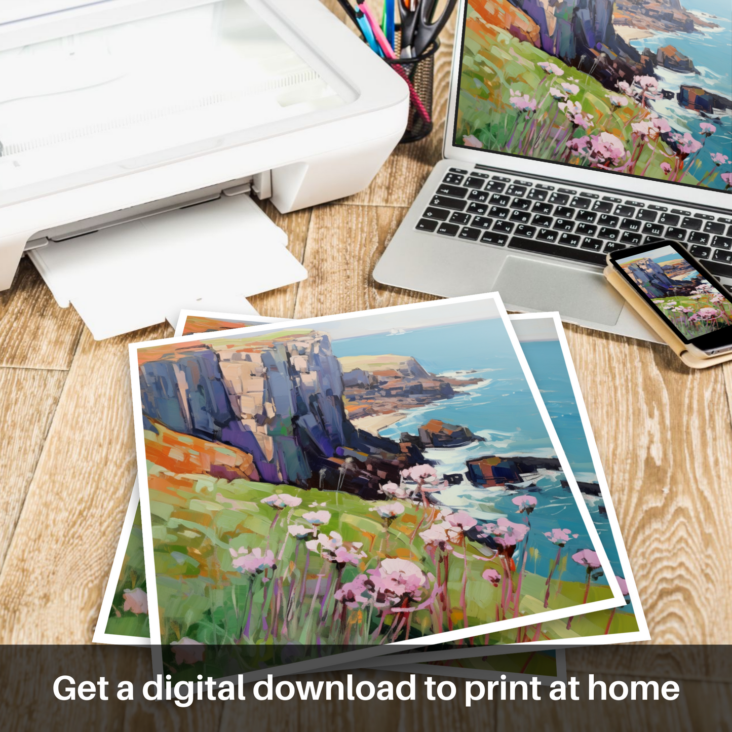 Transport your senses to the rugged beauty of the Scottish coastline with this evocative piece that captures the essence of St Abbs Head's natural splendour. Brimming with the spirit of Impressionism, the print draws you into a spellbinding landscape where the vibrant hues of sea thrift punctuate the verdant cliffside.