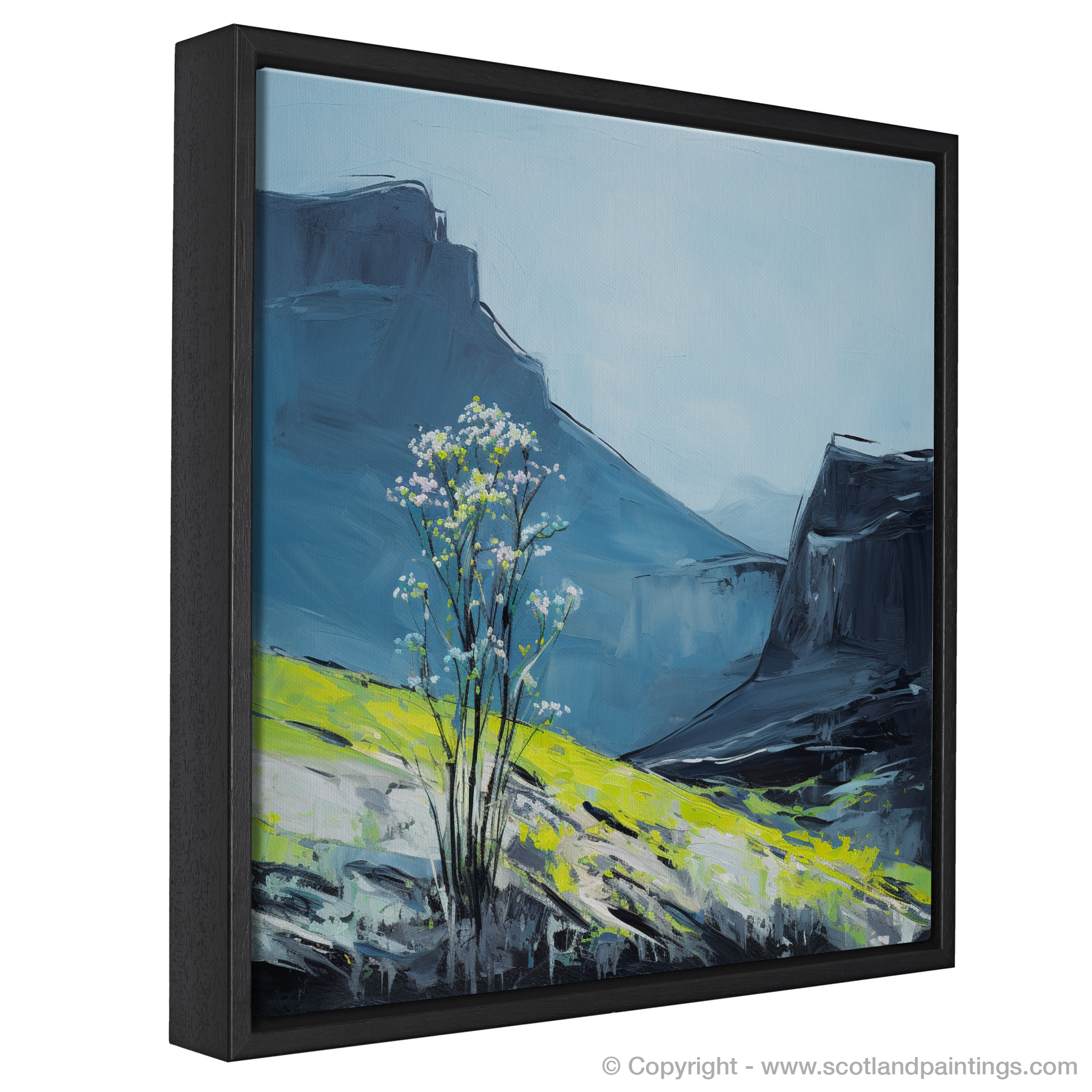This print invites nature lovers and art aficionados alike to ponder over the ephemeral moments where flora and stone converse. It stands as a tribute to Scottish Flowers and Flora, forever preserving the fleeting enchantment of a windswept isle woven into intricate textures and strokes. Embrace a piece of Scotland's natural grandeur for your collection and carry with you a timeless echo of The Cuillins' quiet allure.