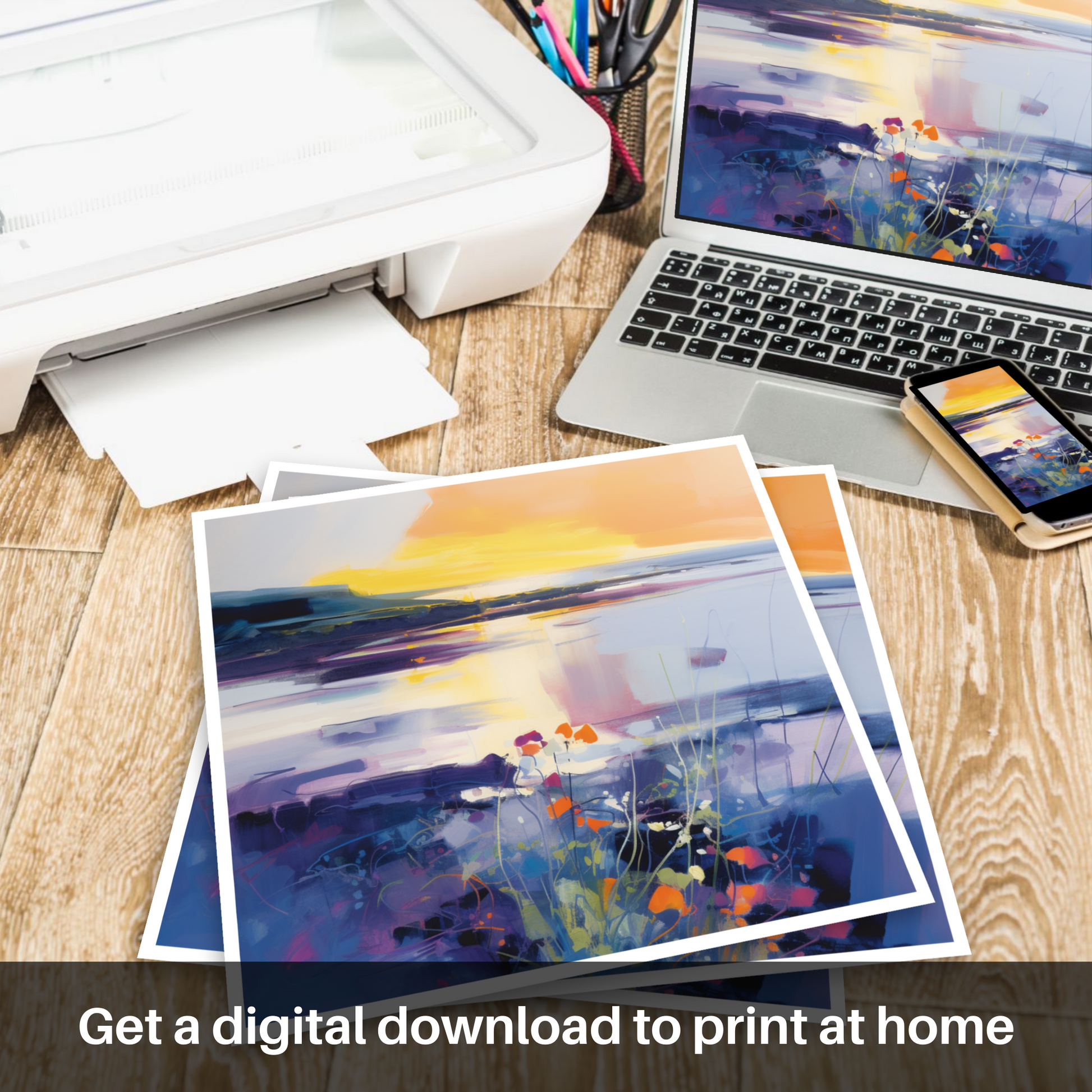 Immerse yourself in the vivid embrace of the Scottish coast with this evocative abstract rendition inspired by the enchanting Oysterplant along the tranquil shores of Dornoch Firth. Celebrated for its fragile beauty, the piece captures the serene, wild essence of the Scottish flora, offering an elegant addition to any space it graces.
