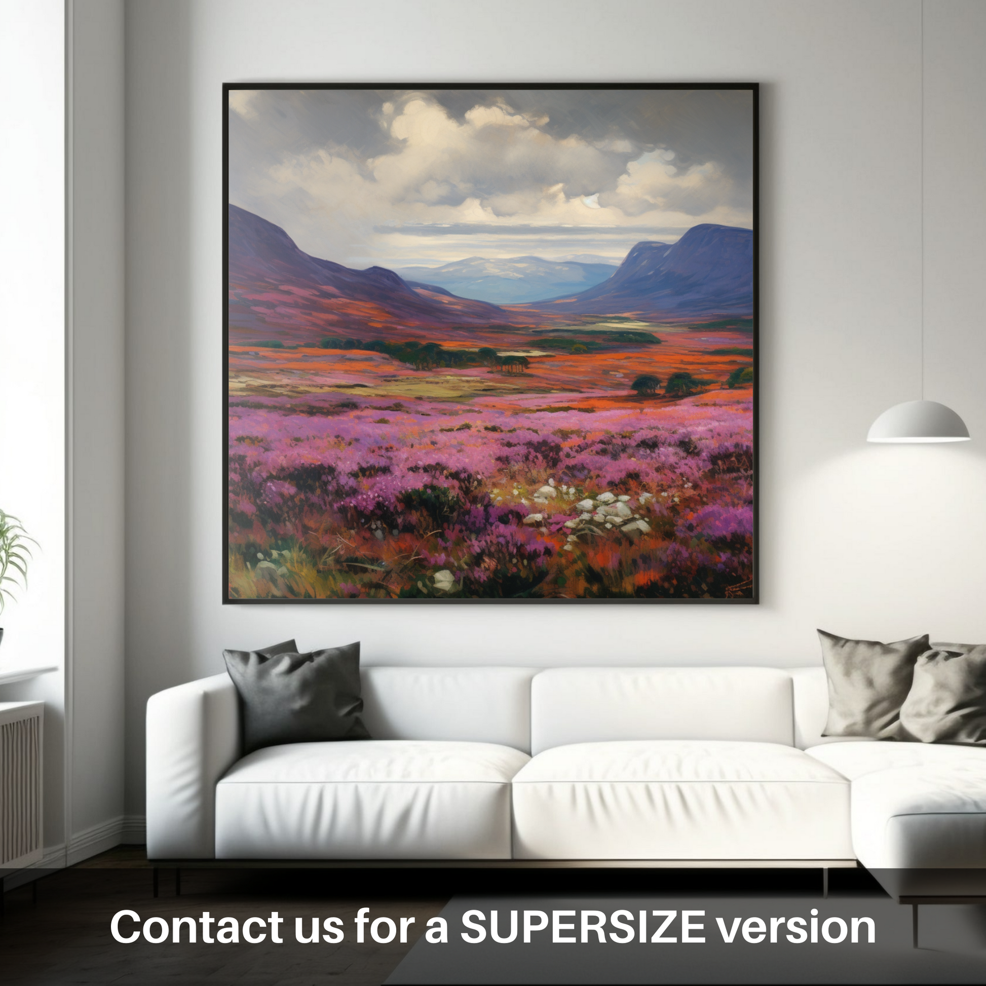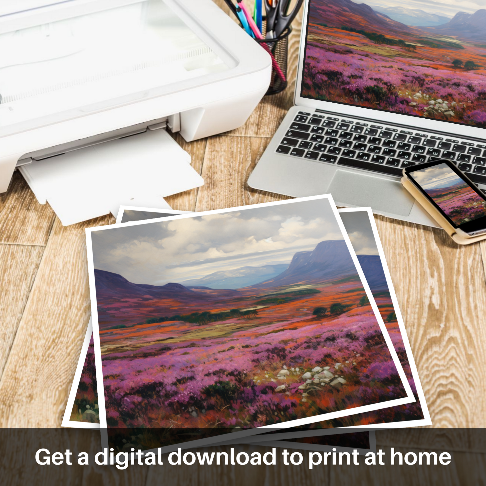 Caressing the wild beauty of Braemar, this enchanting print captures the heather-clad moorlands of Aberdeenshire in a mesmerising flourish of colours, reminiscent of the celebrated Art Nouveau style. As your gaze wanders across the vibrant tapestry of purples and pinks, you'll find yourself transported to a realm where nature's palette is opulent and untamed.