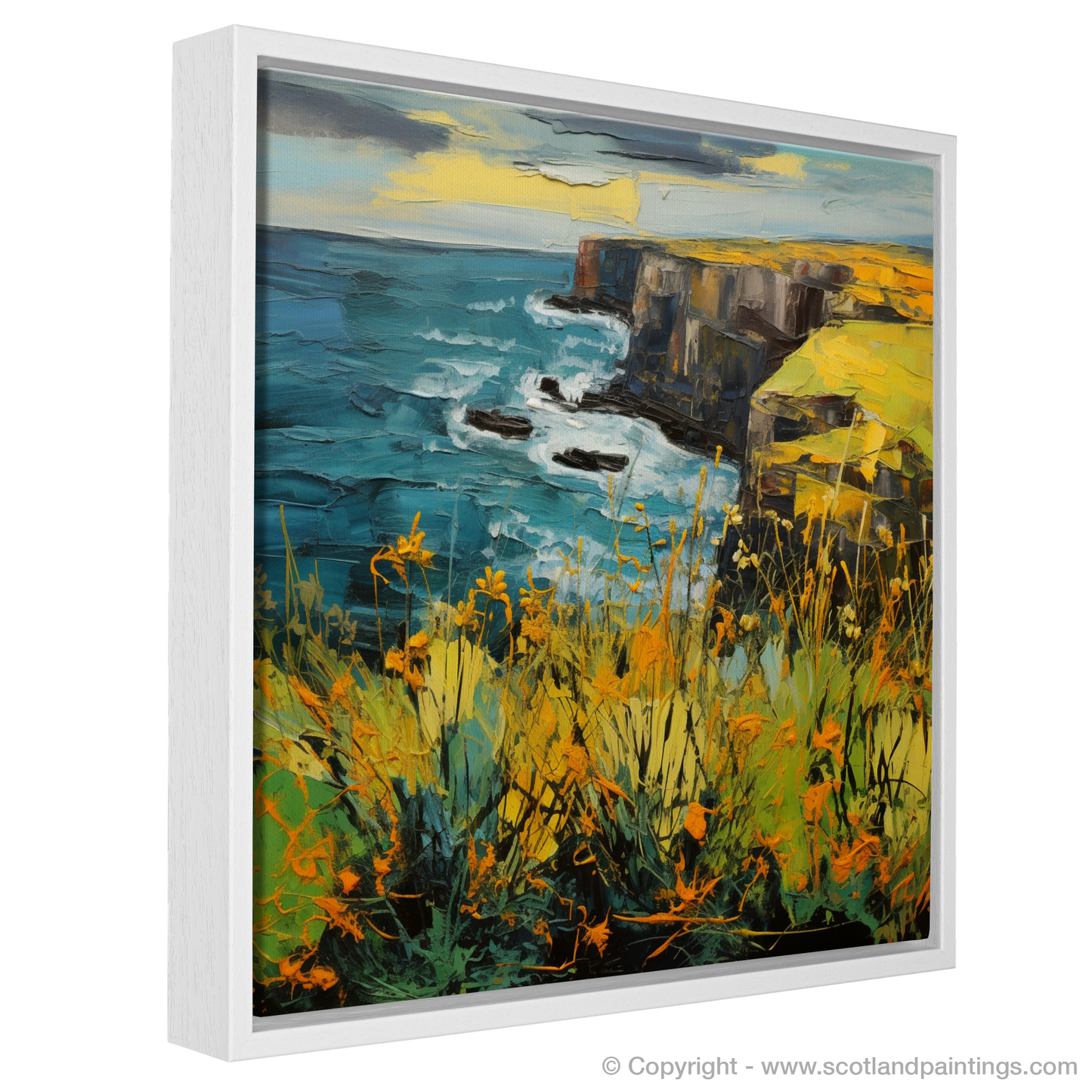 Step into the rugged charm of the Scottish coast with our captivating print, eloquently capturing the essence of Golden samphire as it blankets the majestic cliffs of Berwick-upon-Tweed. Swaths of vibrant yellow and amber flora come alive in the foreground, reflecting the wild beauty of the Golden samphire's blossoms, which add a burst of colour against the greens and earthy tones of the cliffside vegetation.