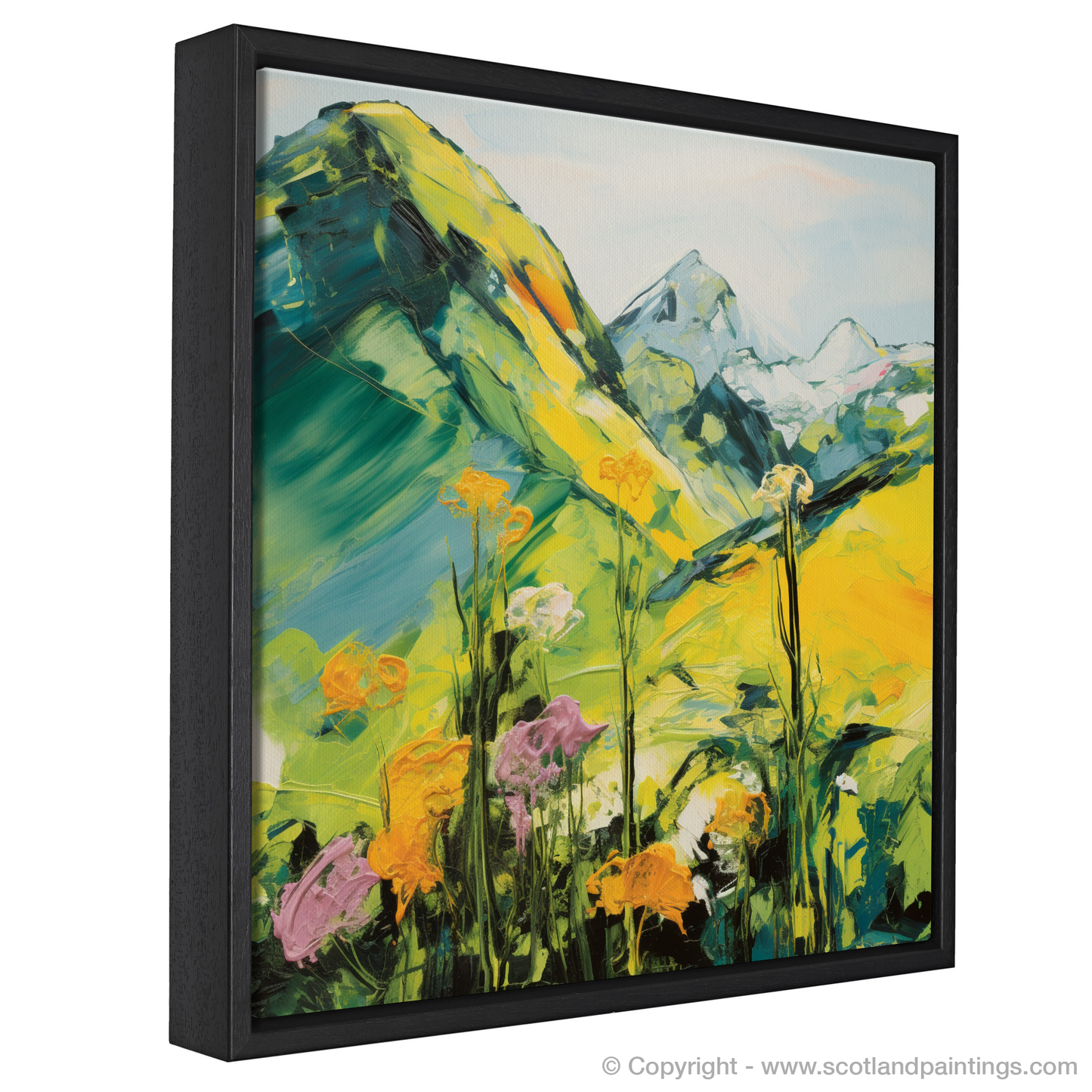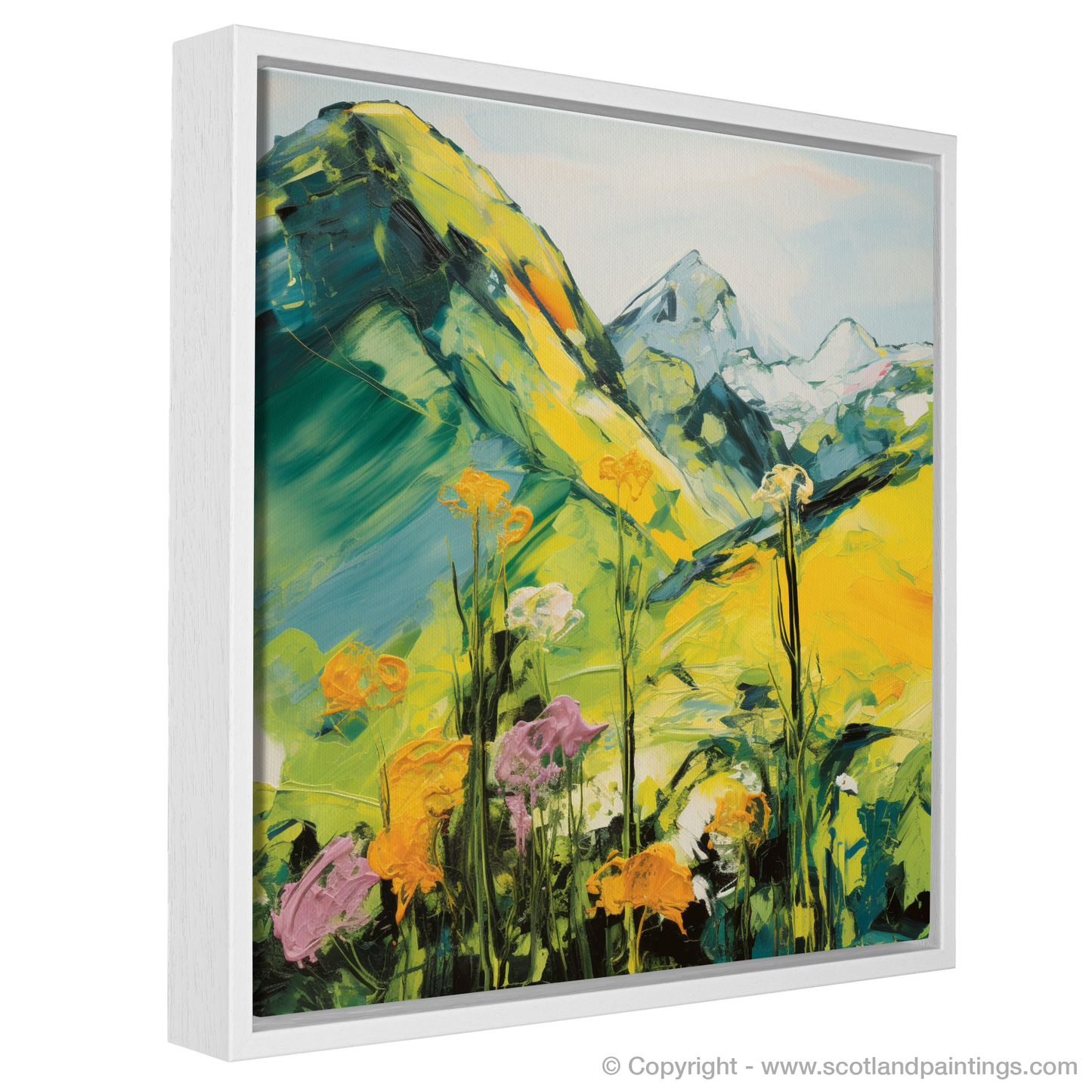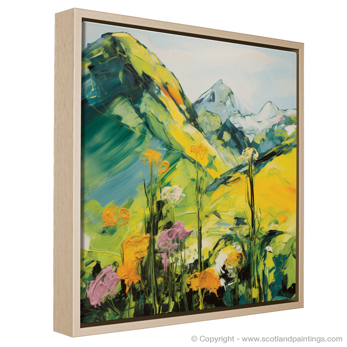 With an Abstract Impressionist approach, the artwork exudes a sense of movement, evoking the gentle sway of flowers in a mountain breeze. Bold brushstrokes and a lively juxtaposition of hues convey the ruggedness of the landscape, while softer patches suggest the fleeting play of light across the slopes.