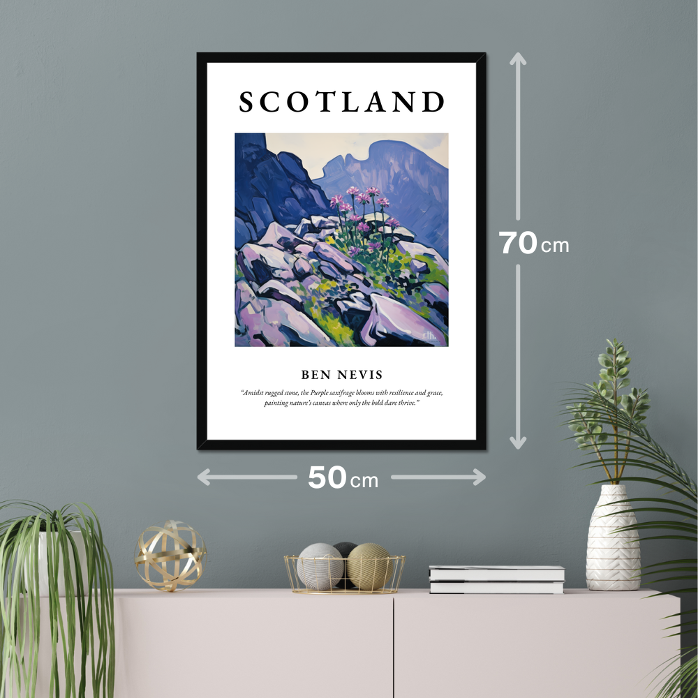 Discover the allure of Scotland with our stunning framed poster print, a perfect blend of nature, art, and timeless elegance. Measuring an impressive 50cm x 70cm, this piece transforms any wall into a window to the majestic Highlands, capturing the spirit of adventure and appreciation for the wild beauty of Scotland. Ideal for the passionate traveller, devoted art lover, or anyone with a special connection to this enchanting place, this poster offers an affordable way to bring the grandeur of Ben Nevis and the charm of Scottish flora into your home.