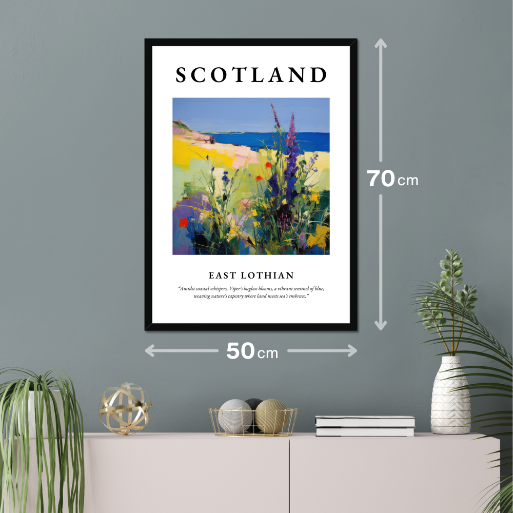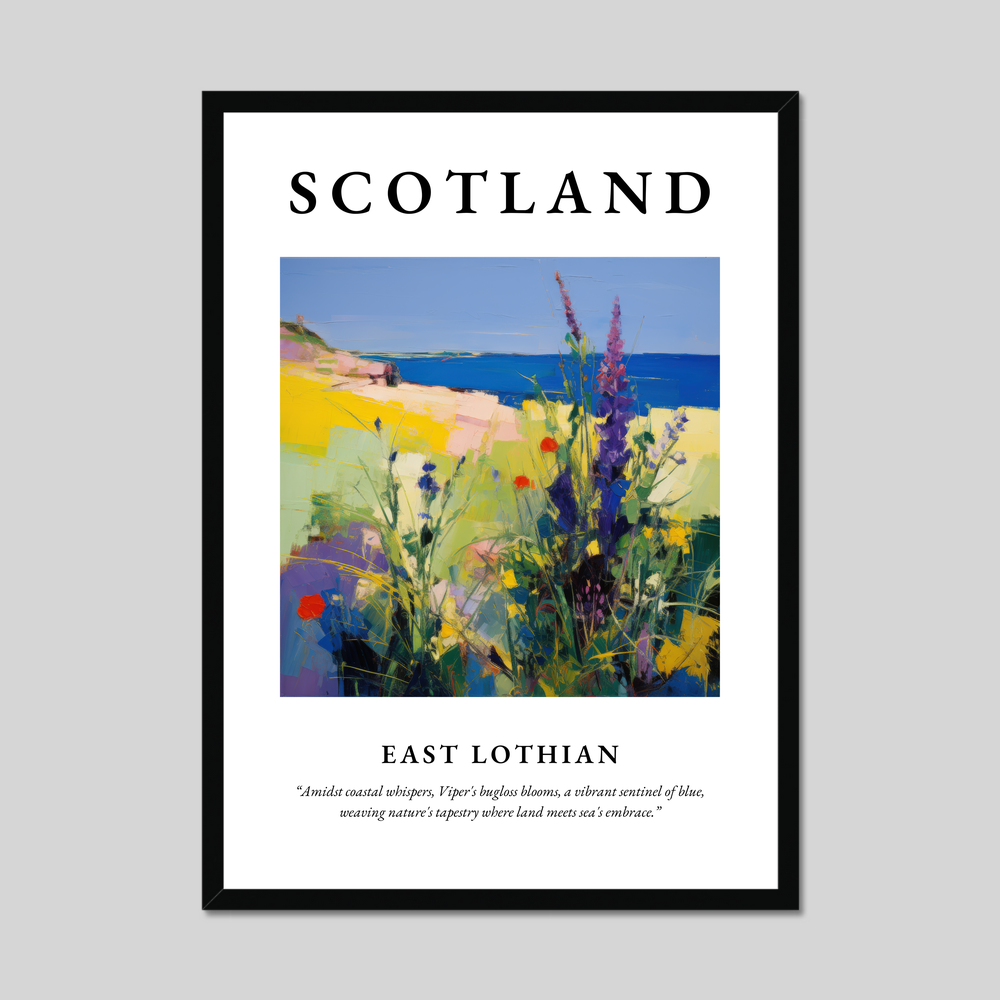 Whether you've strolled along the sands of East Lothian, lost yourself in its colourful vistas, or dream of exploring its scenic coasts, this framed poster print is sure to resonate. Celebrate the captivating allure of Scotland in your home, and let the whispering waves and blooming wildflowers transport you to a place where nature’s beauty knows no bounds.