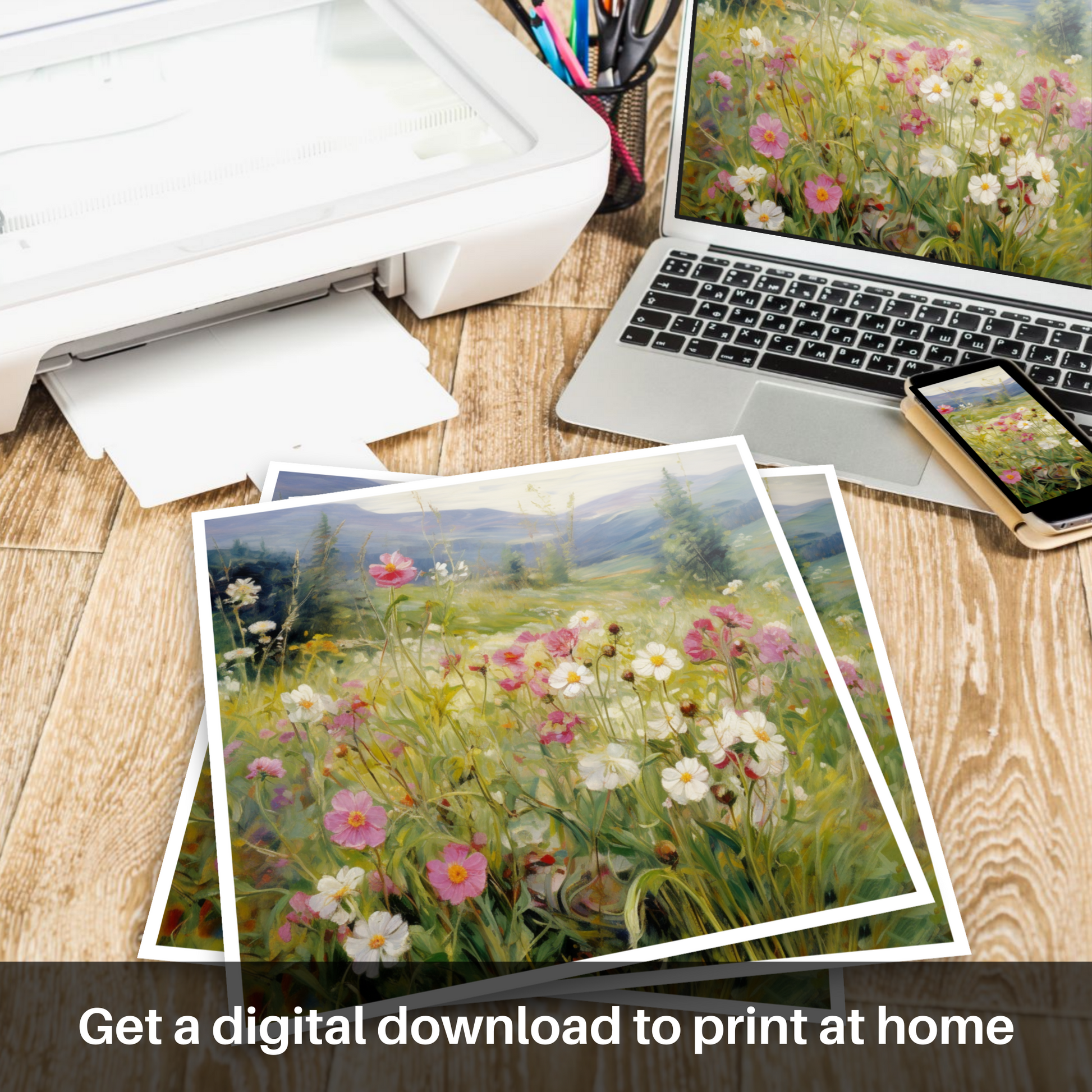 Invite this print into your home or workspace and let the charm of The Trossachs' meadows—where flora frolic freely under the open sky—infuse your environment with beauty and a breath of fresh air.