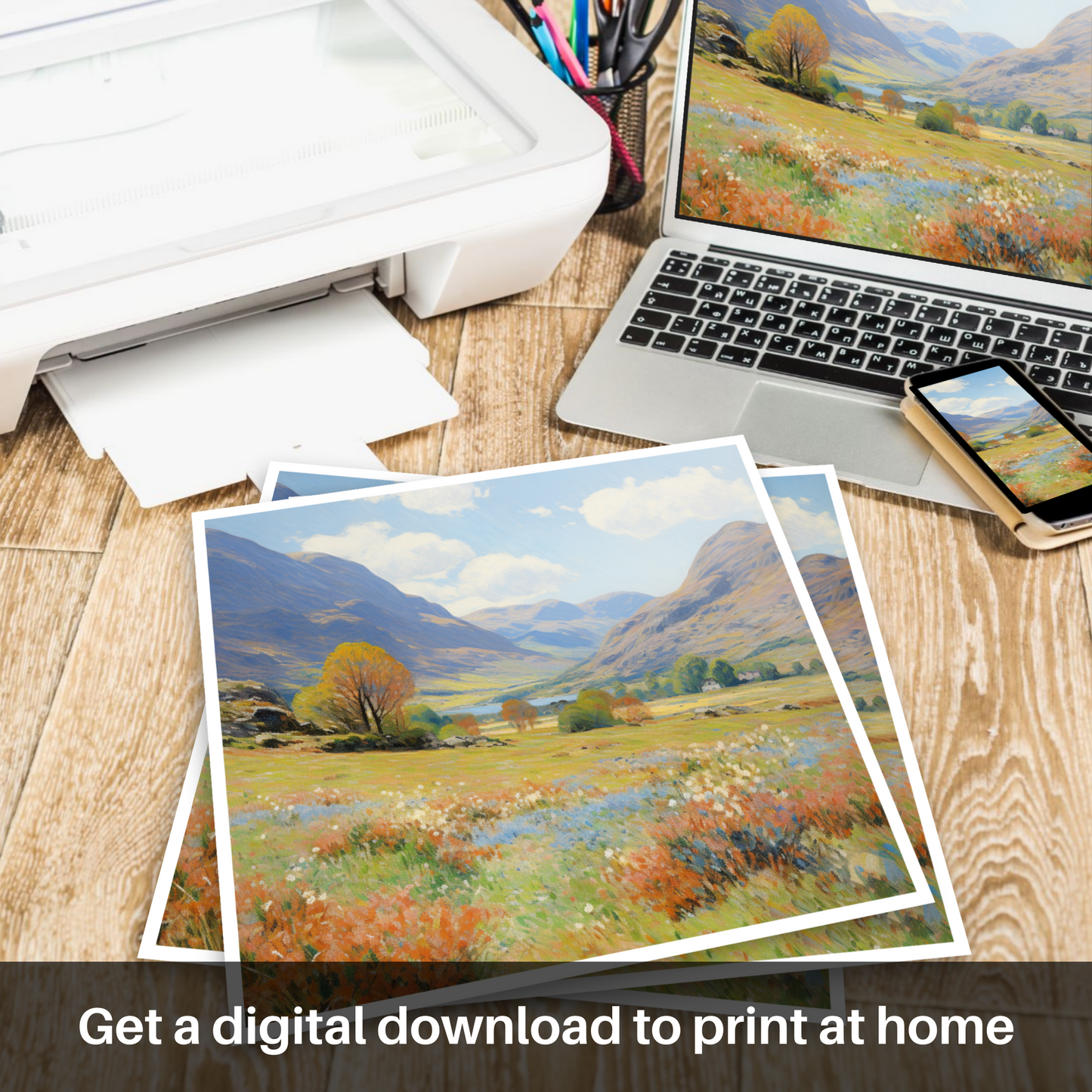 In true Impressionist fashion, each brushstroke revels in the play of light and colour, lending a dynamic texture and vibrancy to the scene. The painting evokes a sense of peaceful solitude, inviting the viewer to lose themselves in the natural grandeur of the highlands.