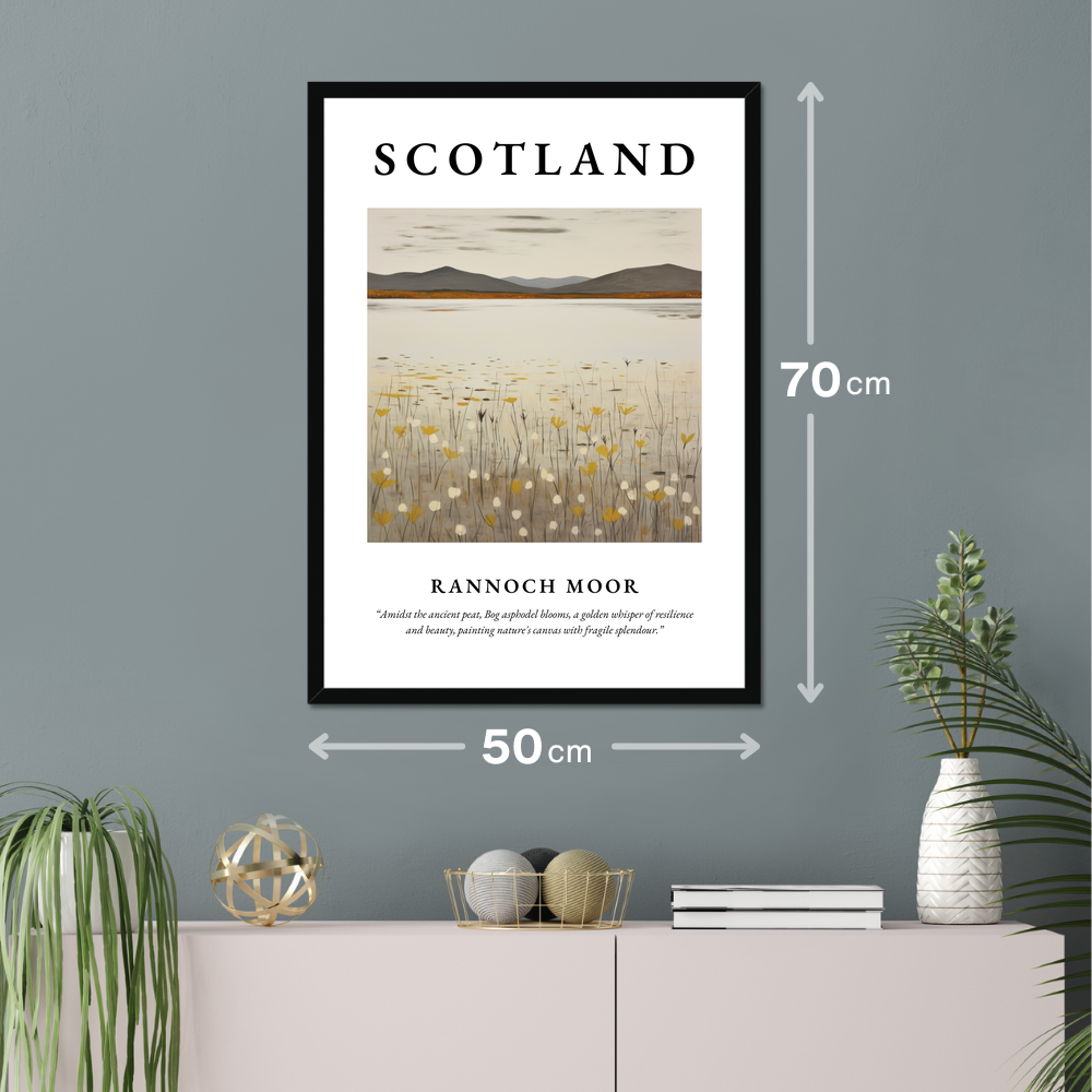 Experience the enchanting allure of the Scottish Highlands with our stunning framed poster print, a striking tribute to the wild beauty of Rannoch Moor. Dominated by the bold lettering of “SCOTLAND” and accompanied by an evocative quote, this 50cm x 70cm piece effortlessly captures the essence of the landscape's quiet magnificence.