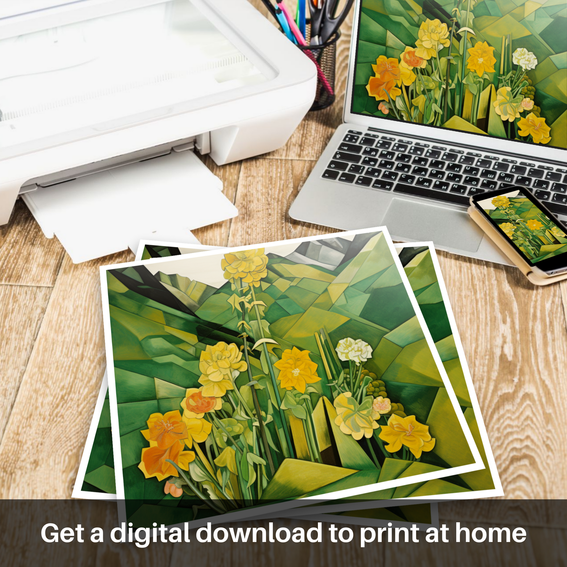 This print is a homage to Scotland's natural splendour, a perfect blend of art and botany that offers a modern twist to the conventional portrayal of plants. It serves as a striking reminder of the resilient and diverse ecosystem found on the Scottish mountainsides, inviting contemplation and providing a fresh perspective on the traditional representation of its flowers and flora. Whether you are an admirer of Cubism, a lover of Scottish landscapes, or a collector of botanical art, this print is sure to be a conversation starter and a timeless addition to your collection.