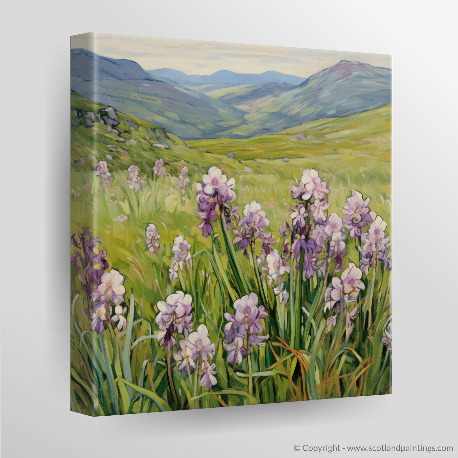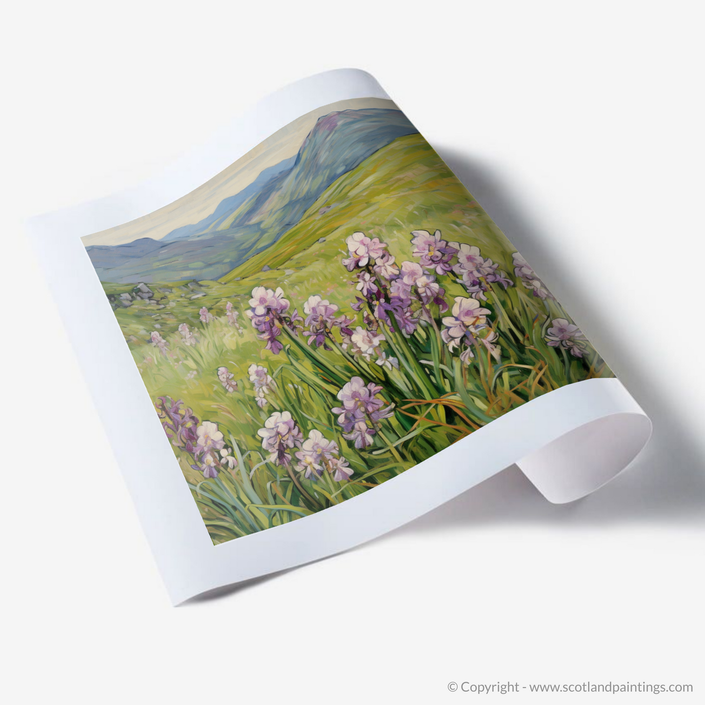 Embracing the timeless elegance of the Art Nouveau style, this exquisite print captures the delicate beauty of the Moorland spotted orchid amidst the verdant grassy patches characteristic of The Mamores' dramatic highland terrain. A symphony of soft purples, gentle pinks, and creamy whites, the orchid's petals bloom with an almost ethereal quality, their intricate patterns highlighted by the lush, green blades that cradle them.