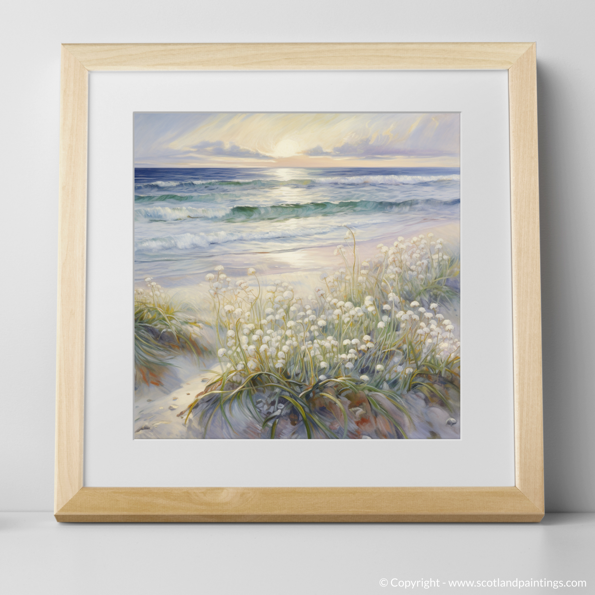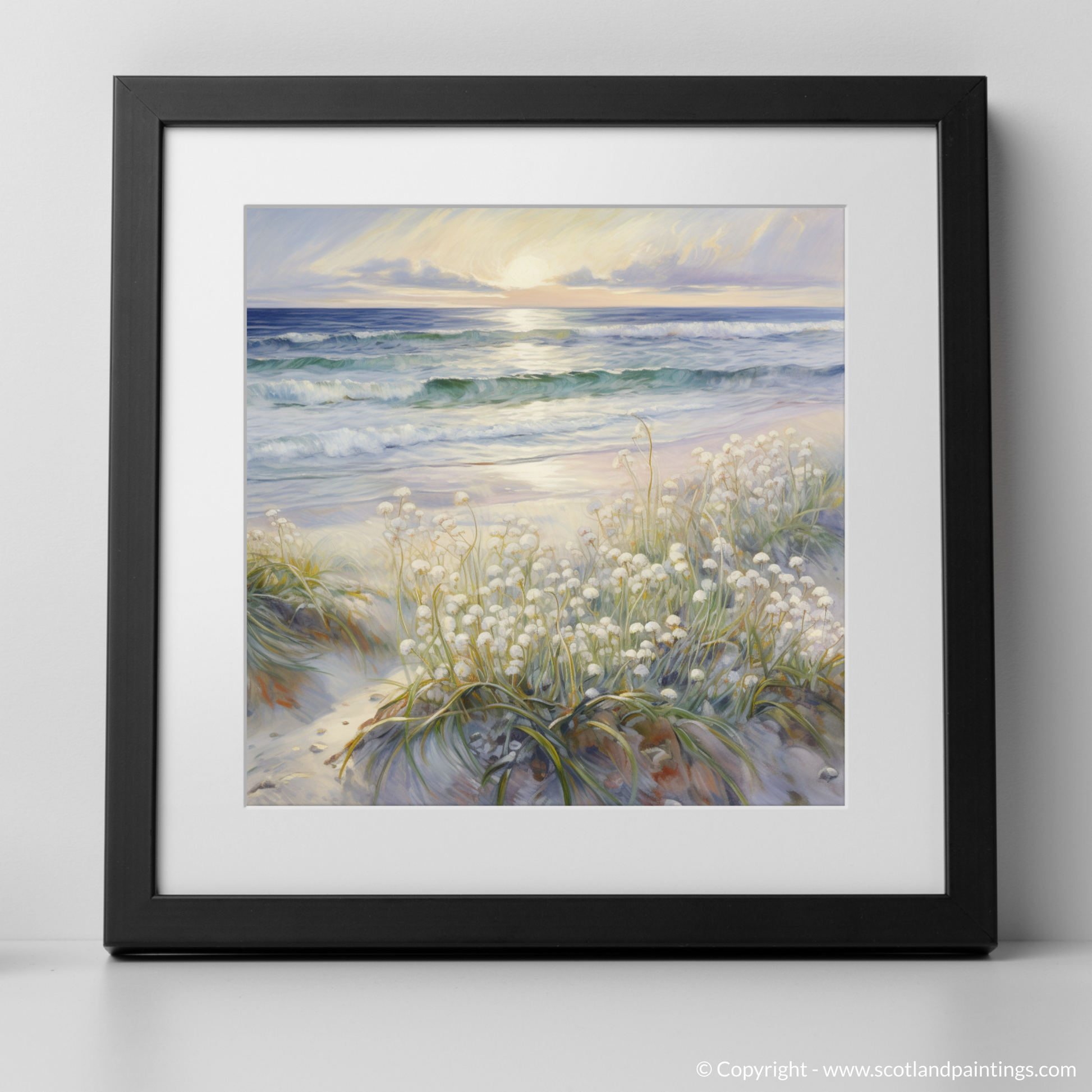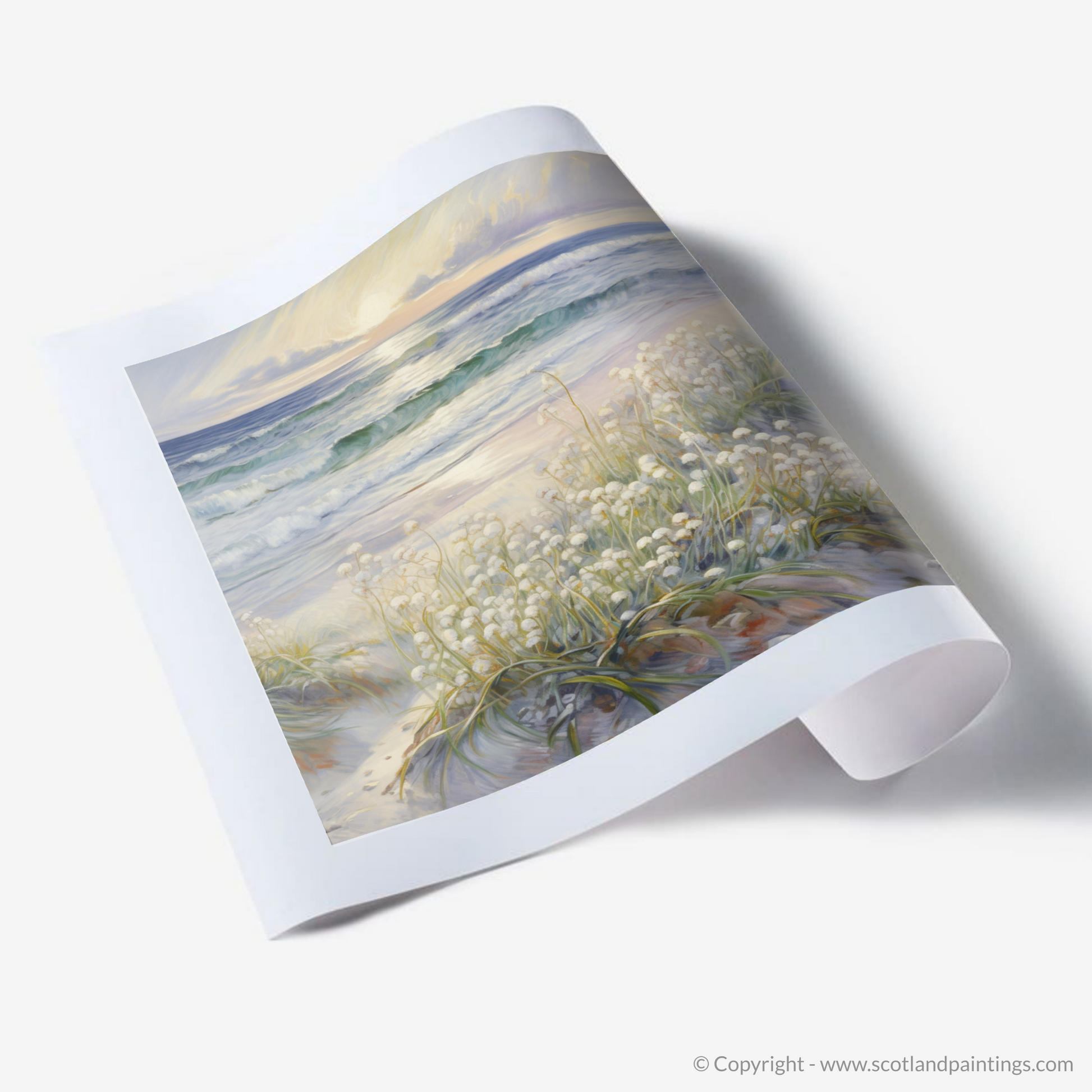 Capturing the ethereal beauty of Scotland's indigenous flora, this exquisite print pays homage to the hardy Scurvygrass lining the windswept, salty fringes of Portobello Beach in Edinburgh. Evocative of the flowing lines and natural themes of the Art Nouveau style, the image delicately intertwines the tenacious greenery with the ambient golden light of a setting sun.