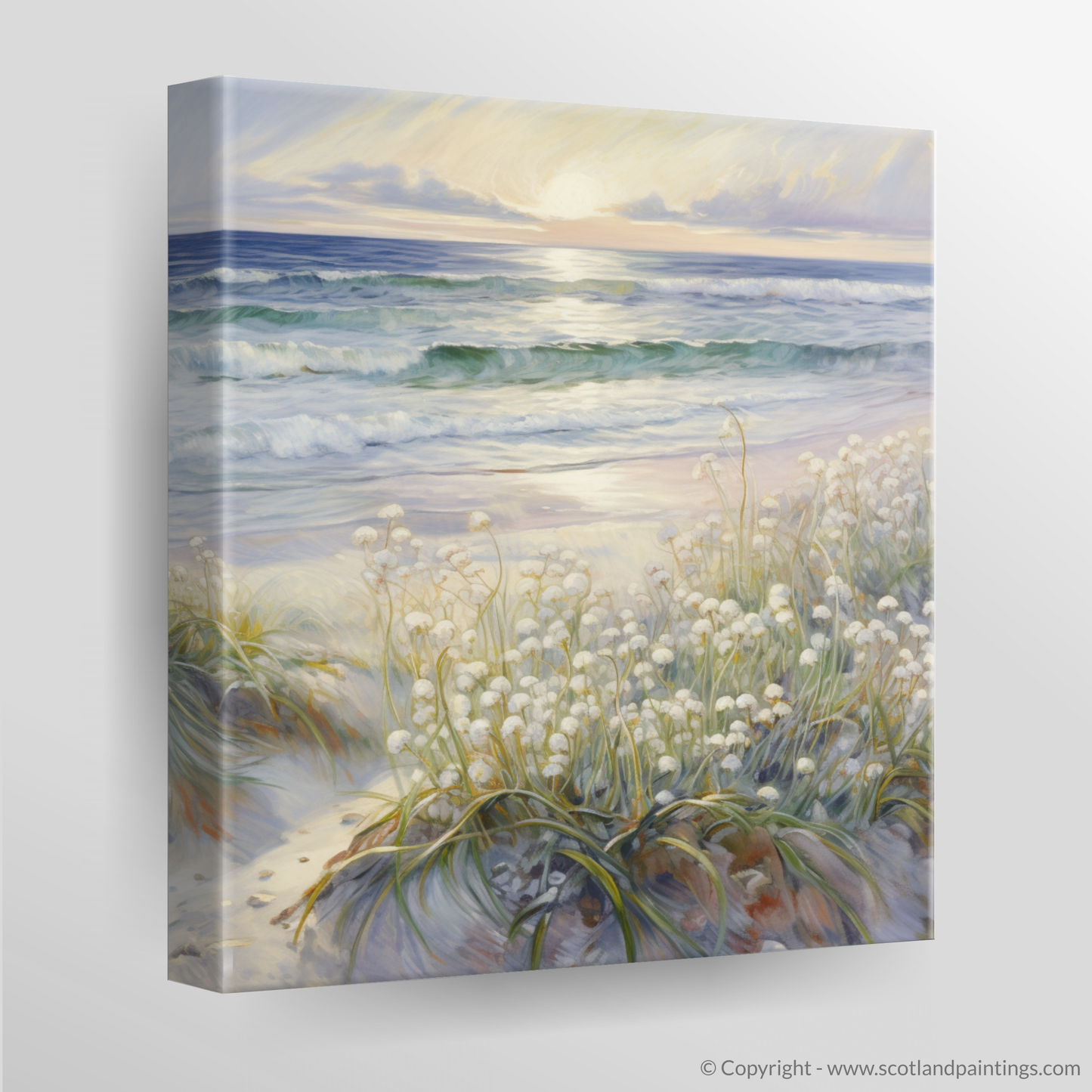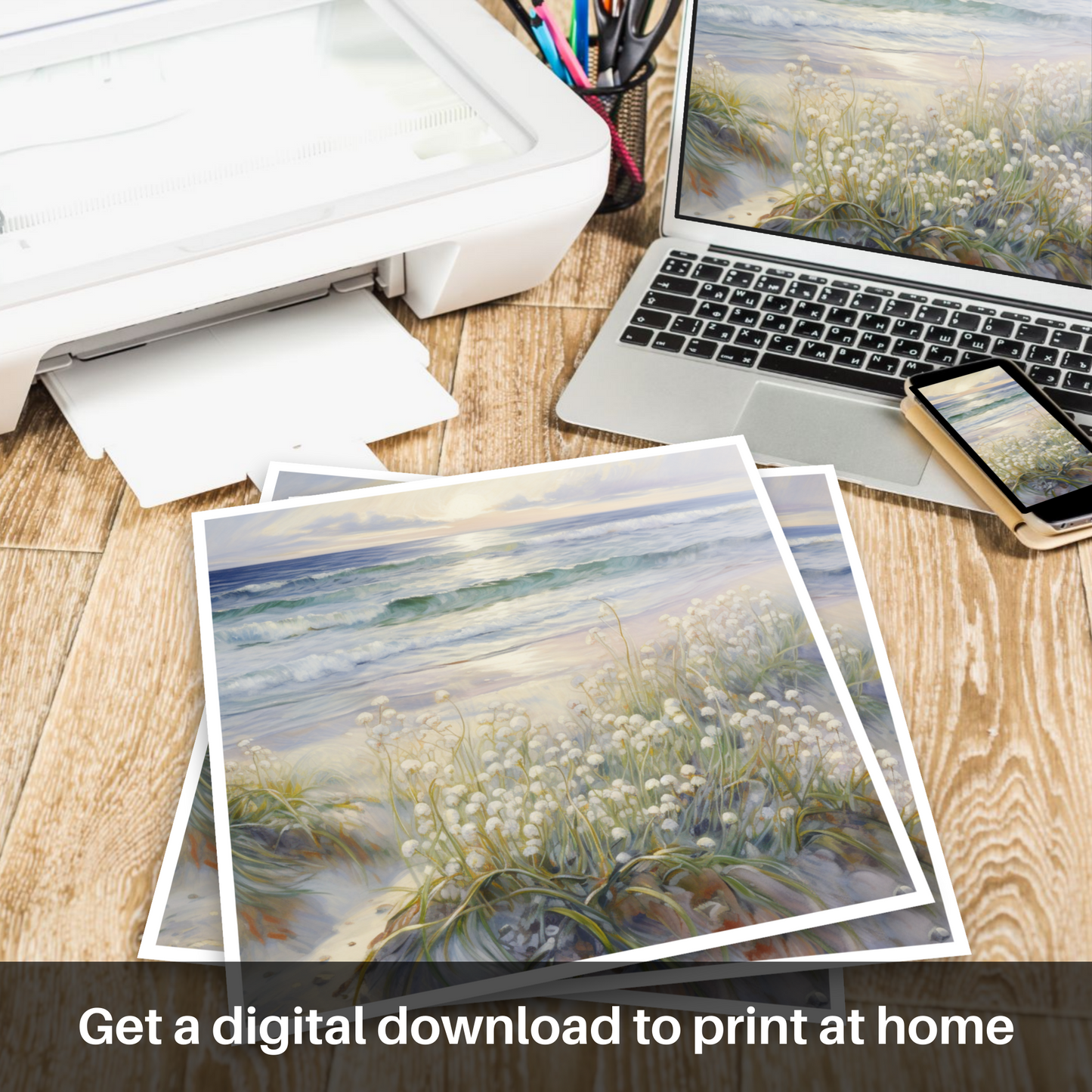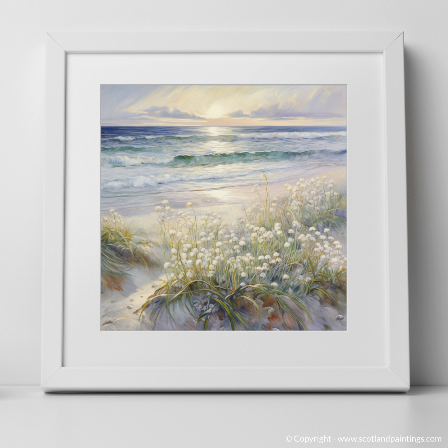Capturing the ethereal beauty of Scotland's indigenous flora, this exquisite print pays homage to the hardy Scurvygrass lining the windswept, salty fringes of Portobello Beach in Edinburgh. Evocative of the flowing lines and natural themes of the Art Nouveau style, the image delicately intertwines the tenacious greenery with the ambient golden light of a setting sun.