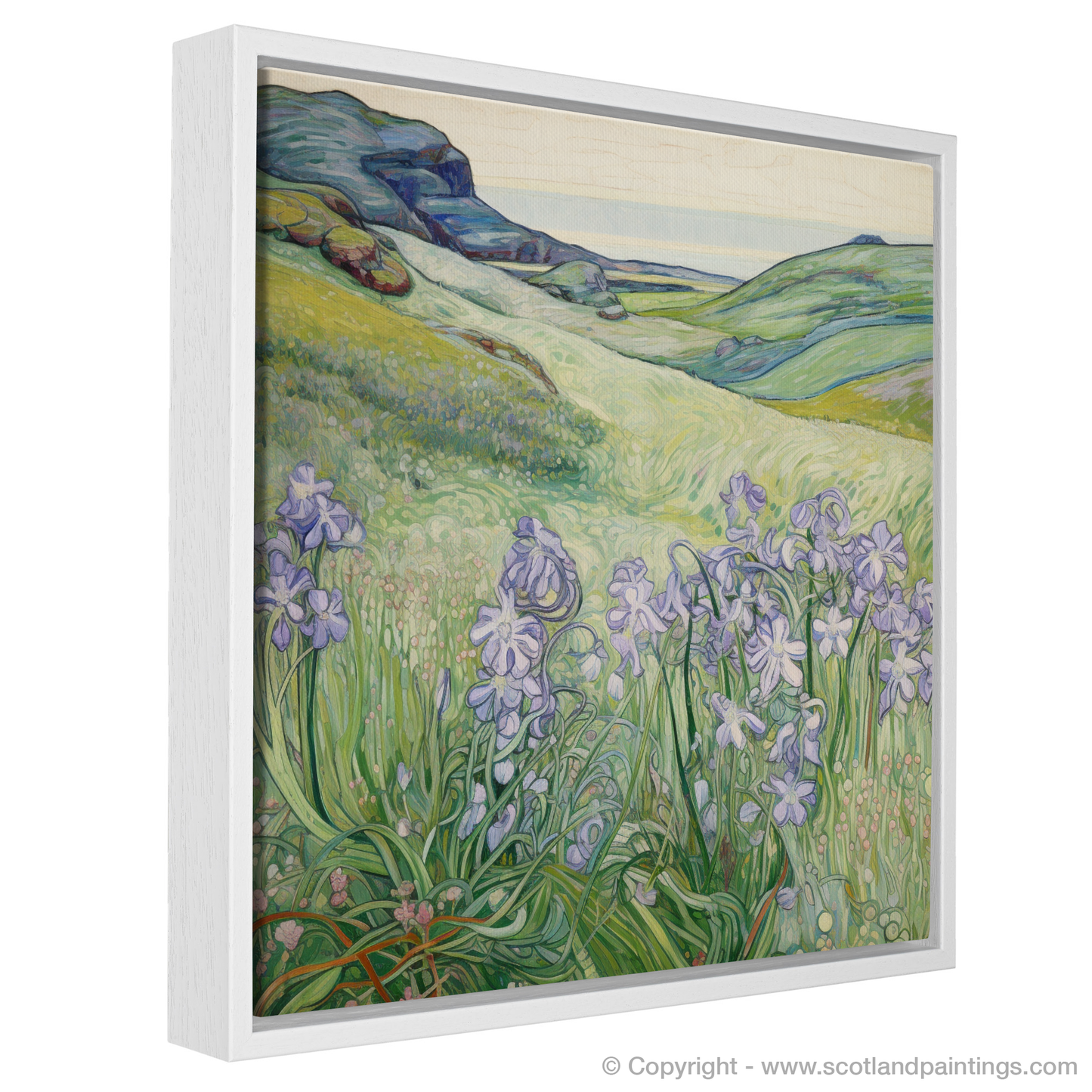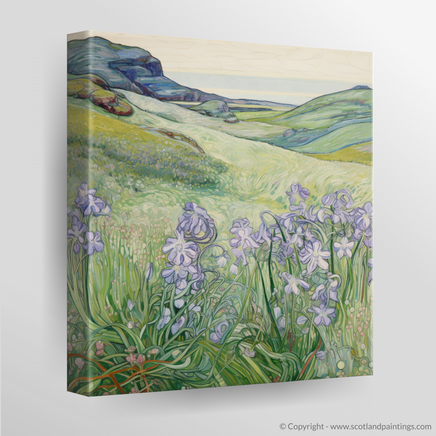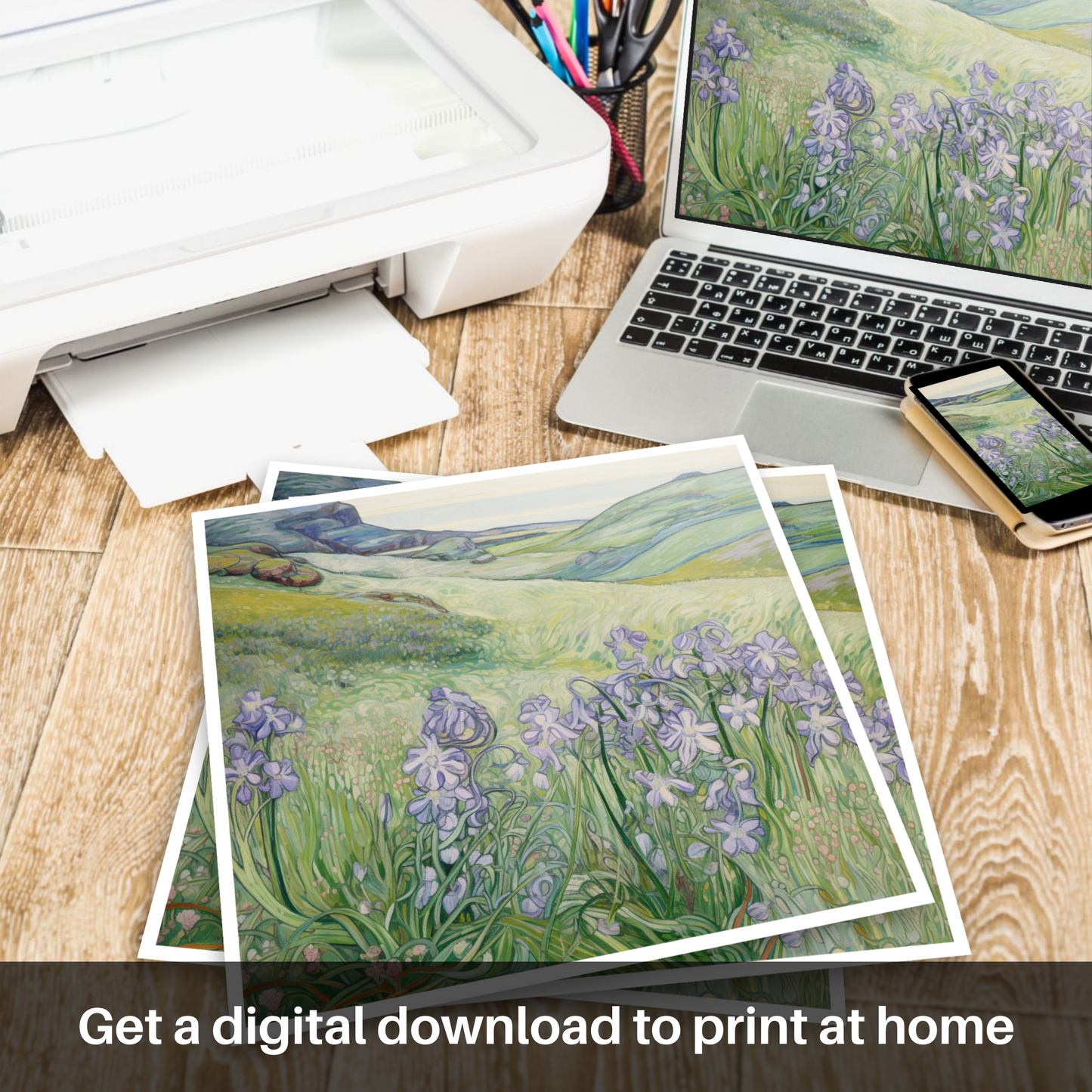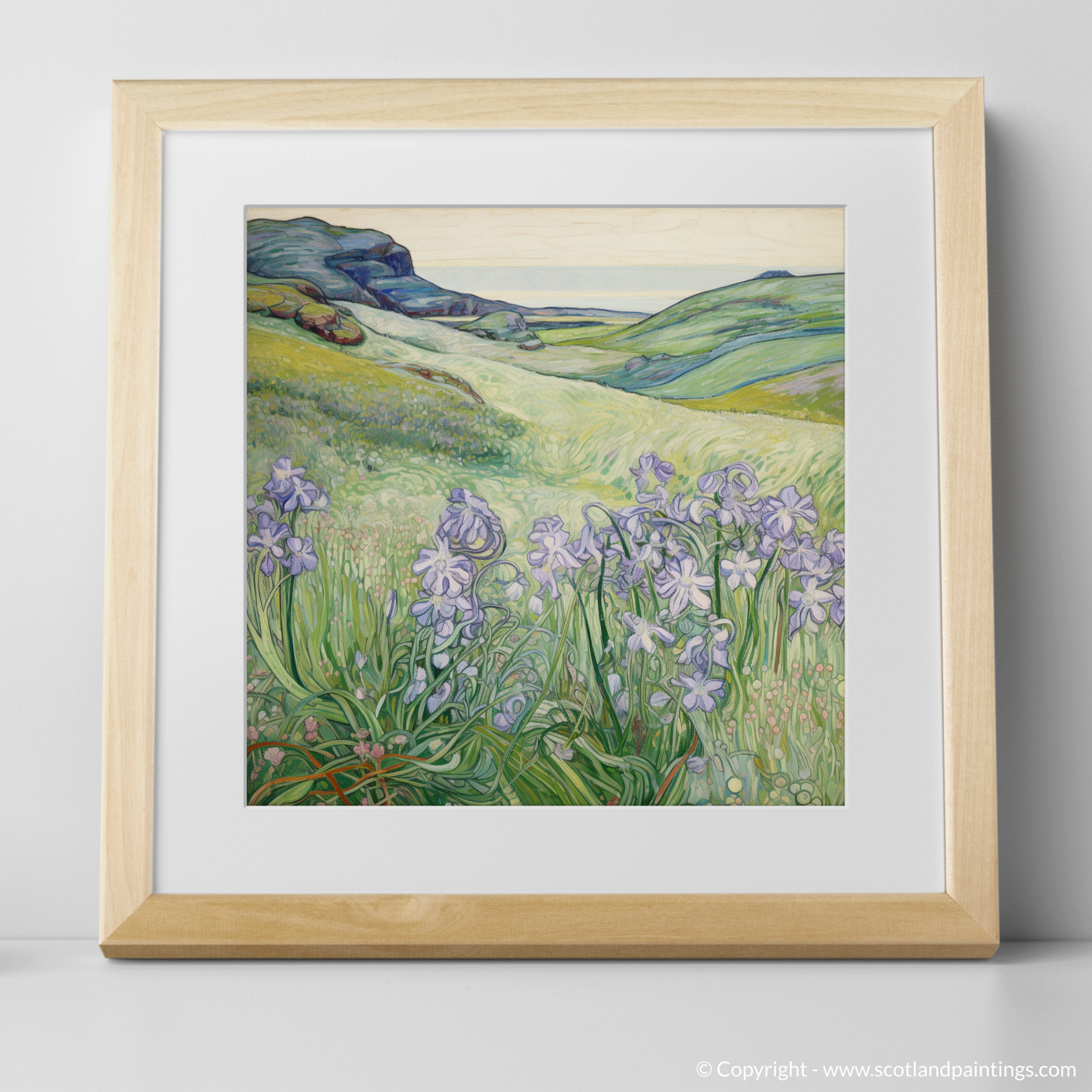 Capturing the essence of a serene Speyside vista, this exquisite print transports the observer to the rolling grasslands of Scotland, a timeless illustration rooted in the enchanting Art Nouveau style. A harmonious composition of delicate Harebells, with their signature bell-shaped blooms in soft lavender hues, commands immediate attention. These elegant flowers dance gracefully in the foreground, set against an infusion of wild thyme and the subtle white and yellow flecks of eyebright that pepper the verdant scene.