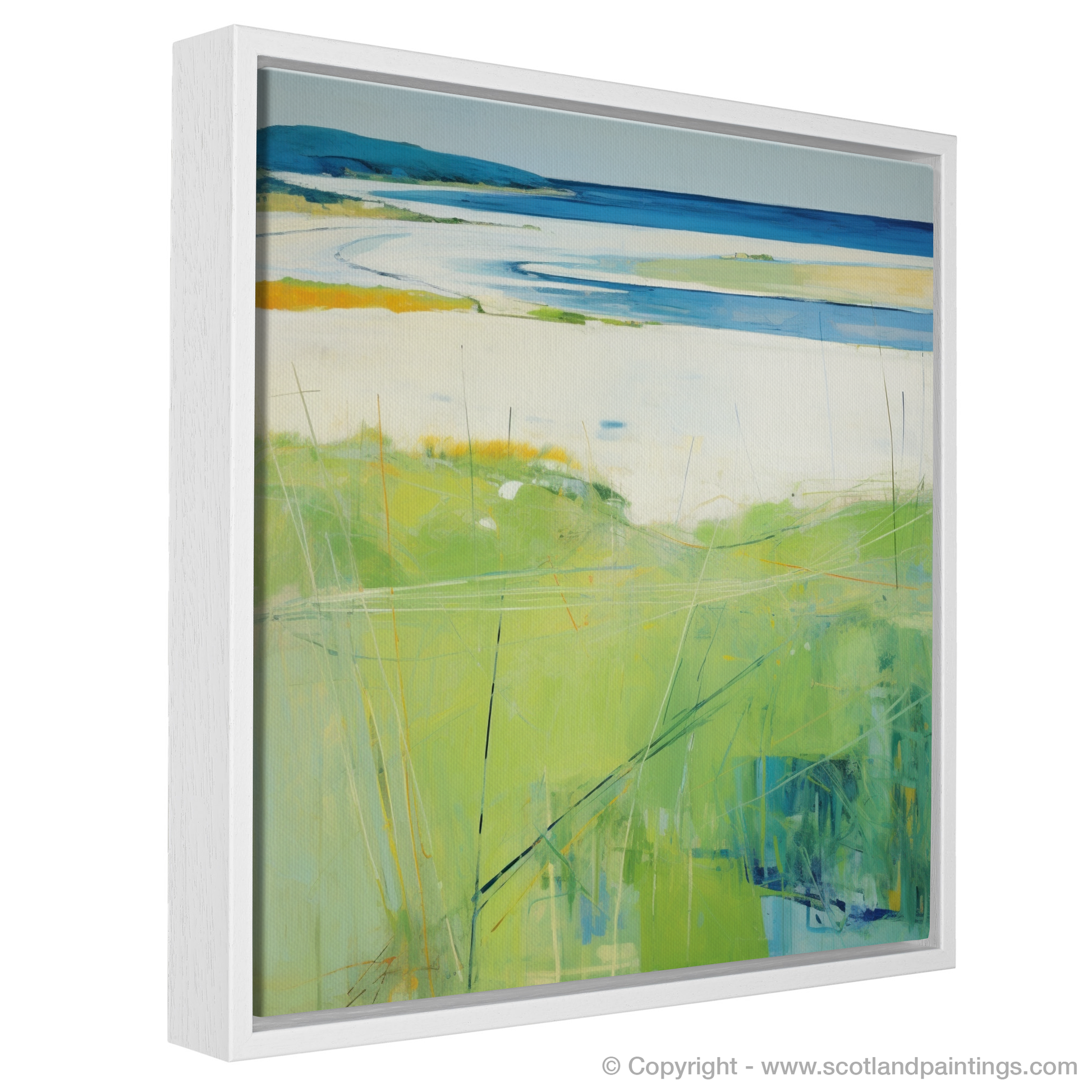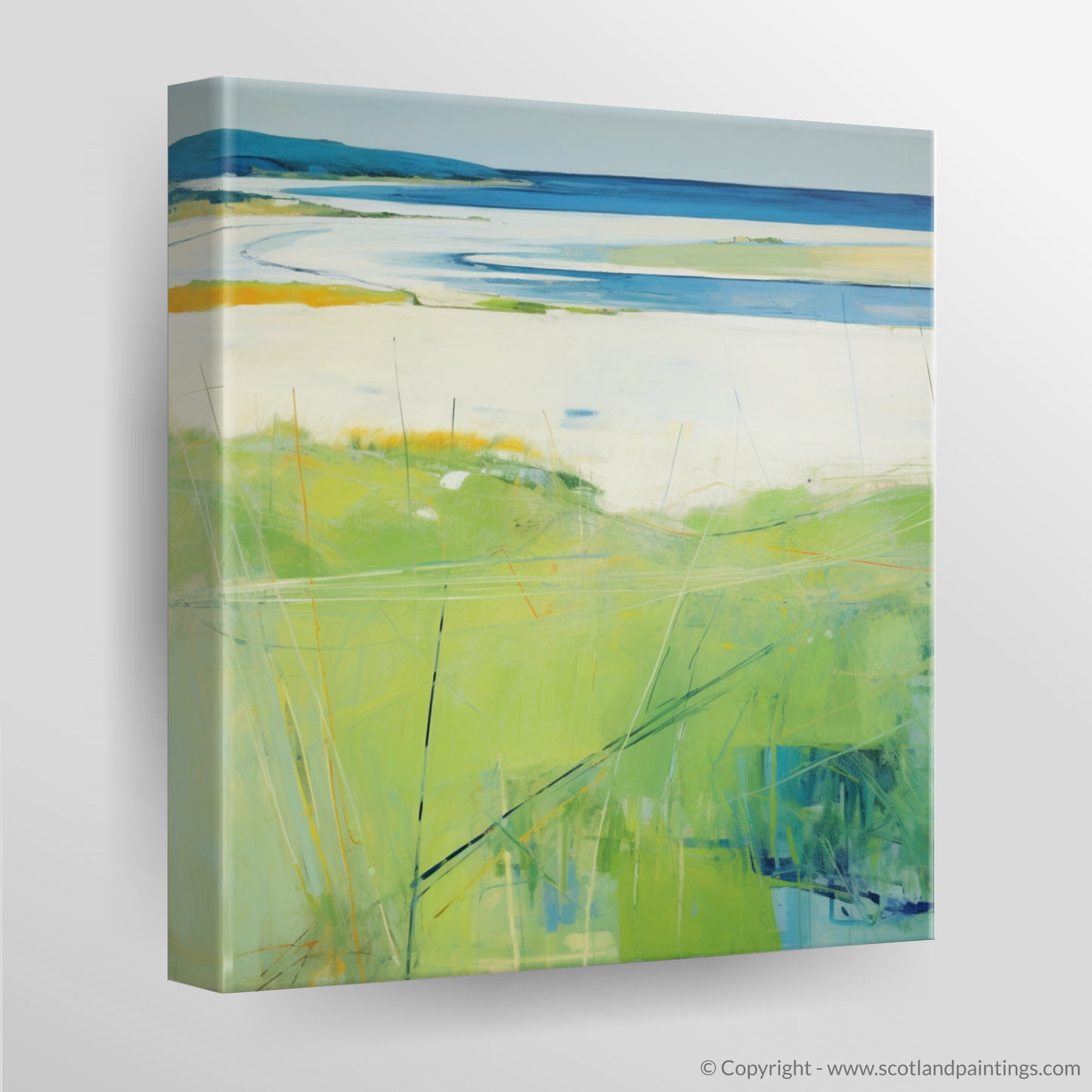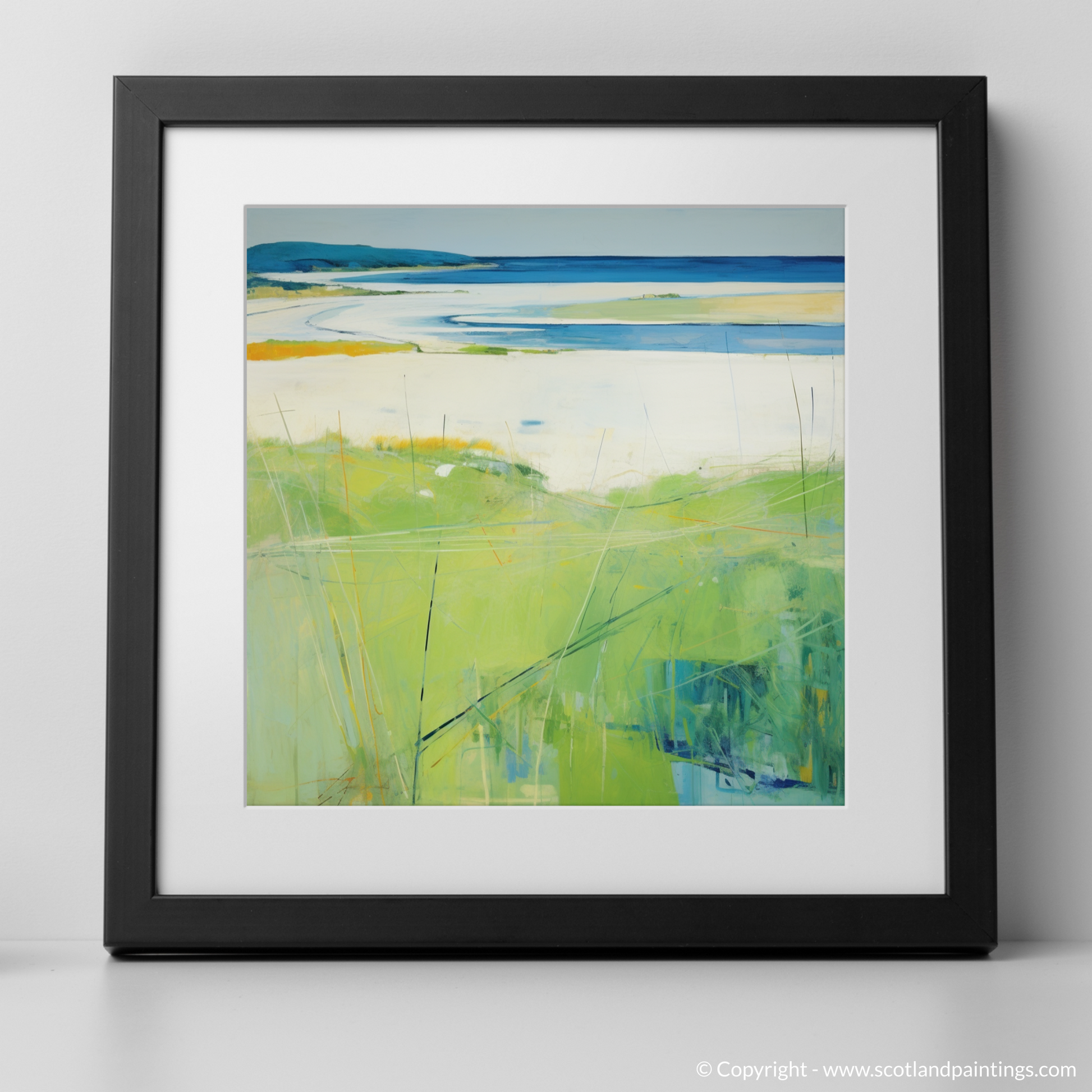 Capturing the ephemeral dance of light and shadow across the coastal dunes of Nairn Beach, this exquisite print invites you into a world where nature's beauty is abstracted into harmonious swathes of colour and form. Through a palette that marries the vibrant greens of Lyme grass with the azure of the sky and the aquamarine of serene waters, the piece evokes the refreshing breeze and tranquil spirit of the Scottish seaside.