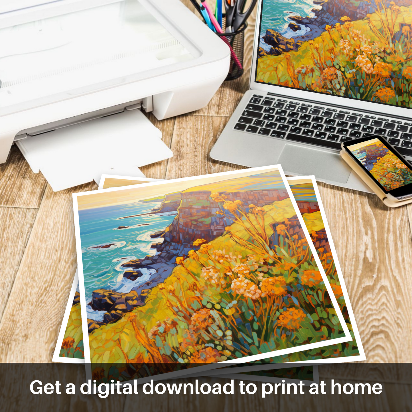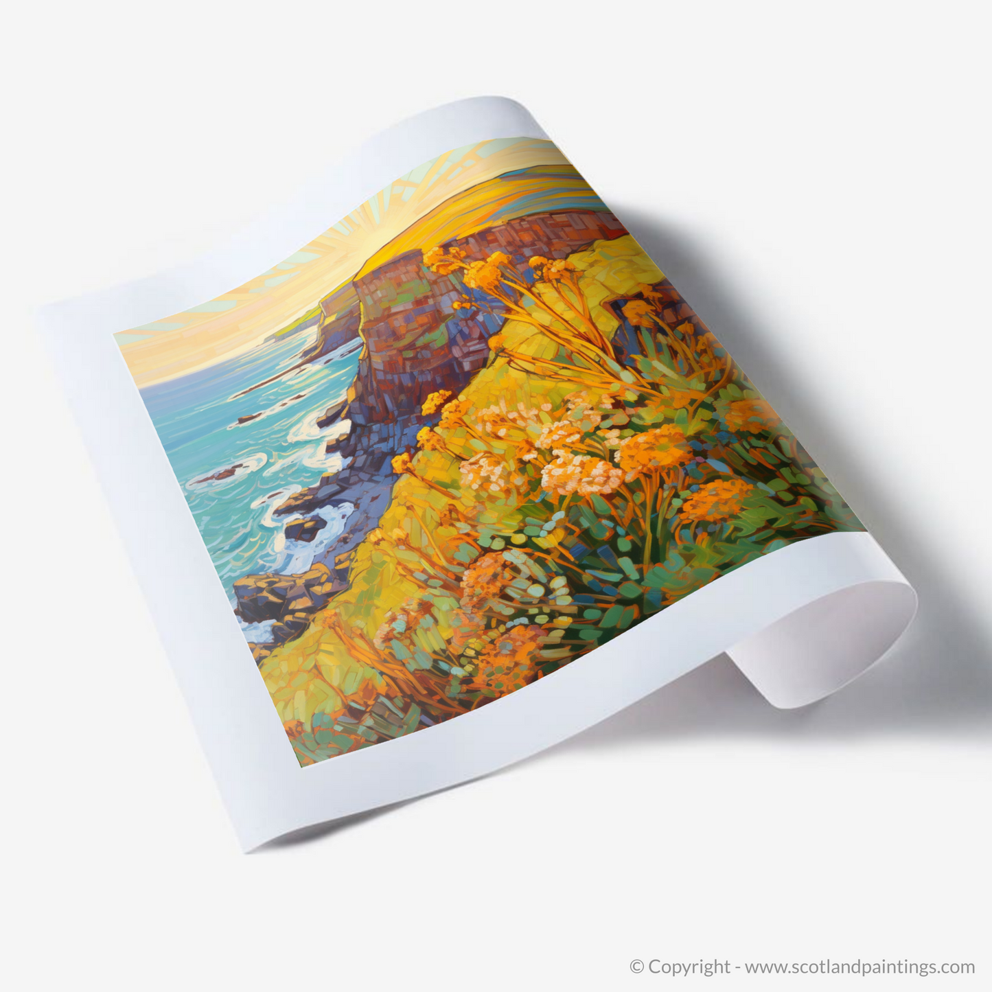 Golden Samphire on Berwick Cliffs: A Modern Impressionist Tribute