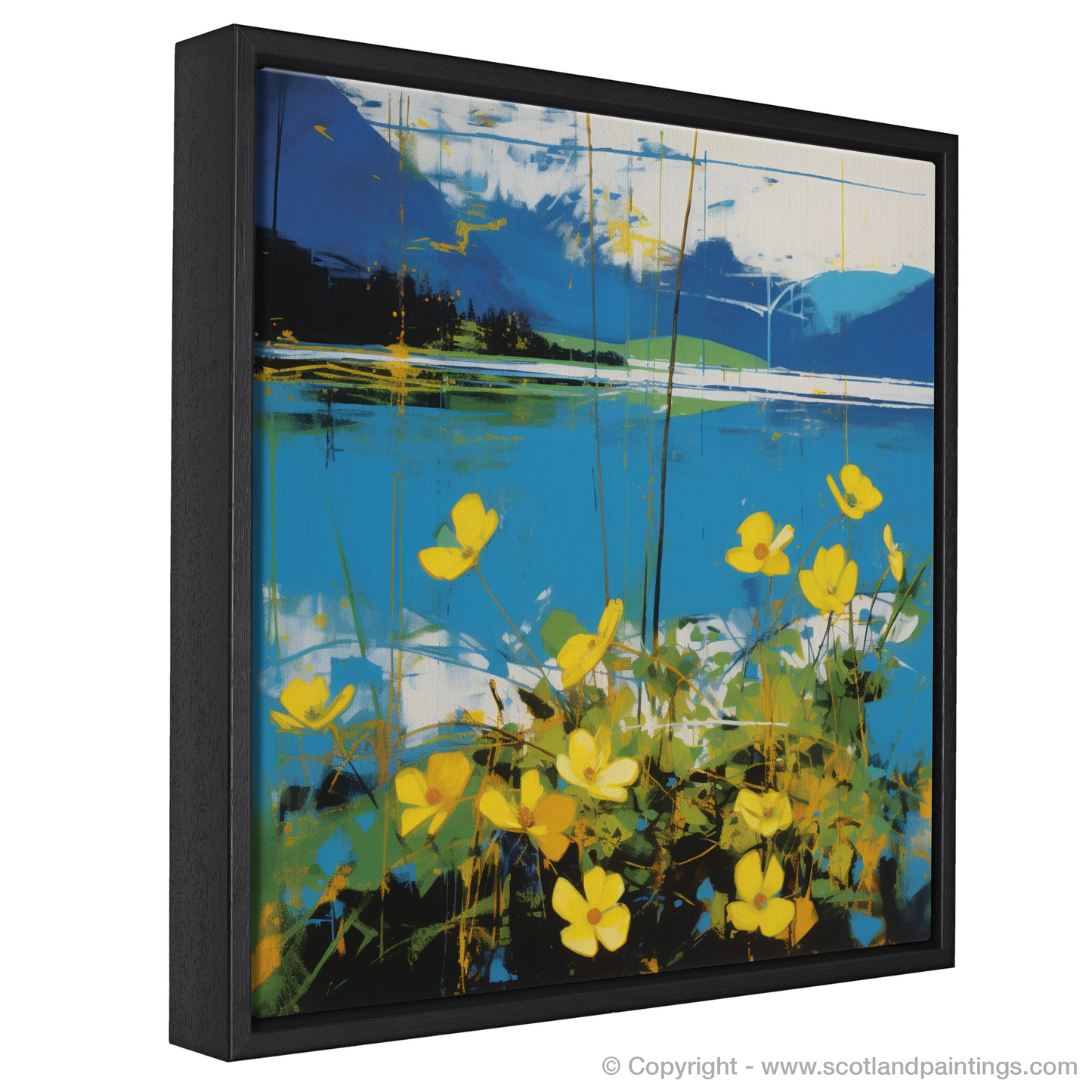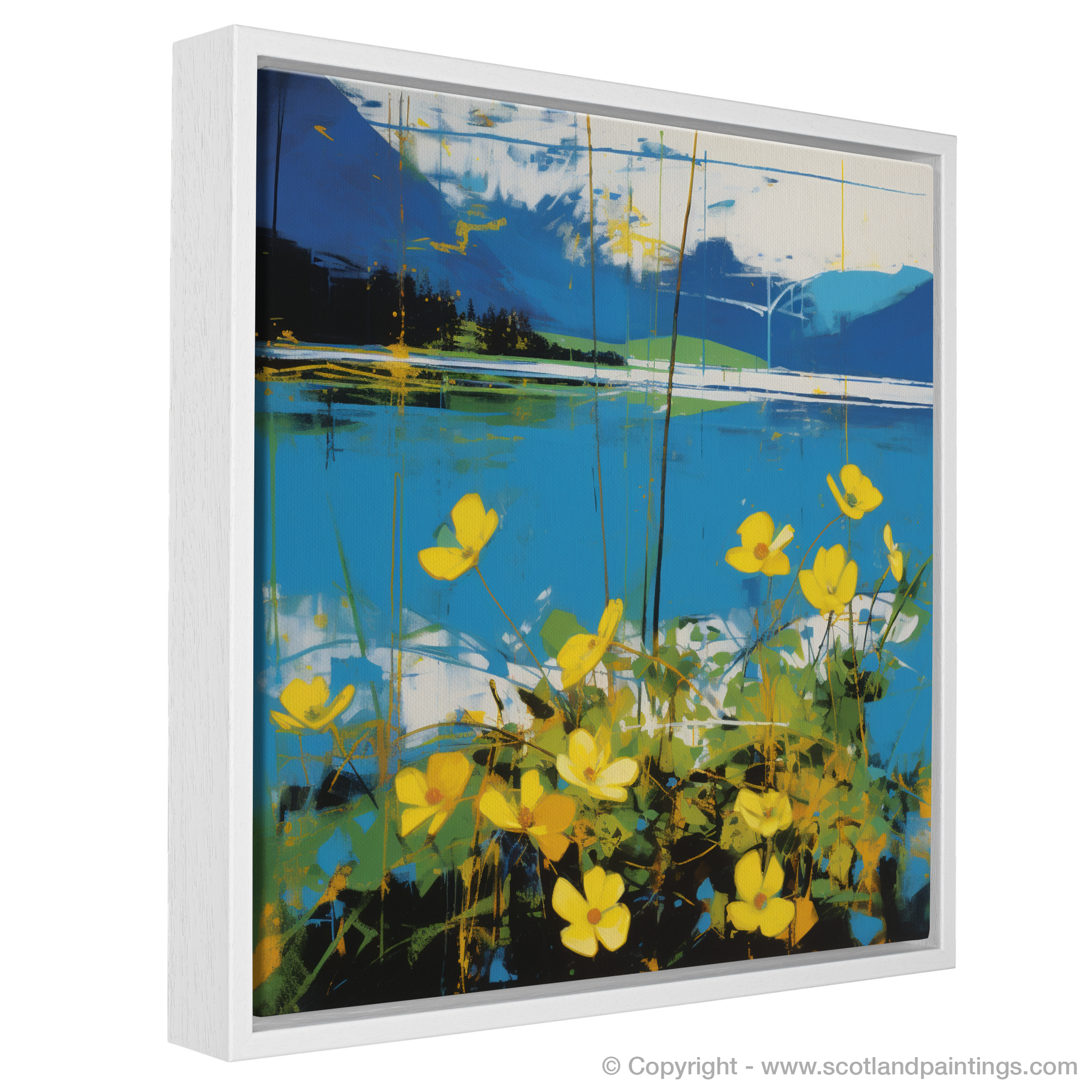 Immerse yourself in the serene splendour of Scotland's natural beauty with this captivating visual ode to the Scottish landscape. This exquisite print celebrates the charming presence of the Lesser celandine, a springtime herald, set against the idyllic backdrop of Loch Tay.