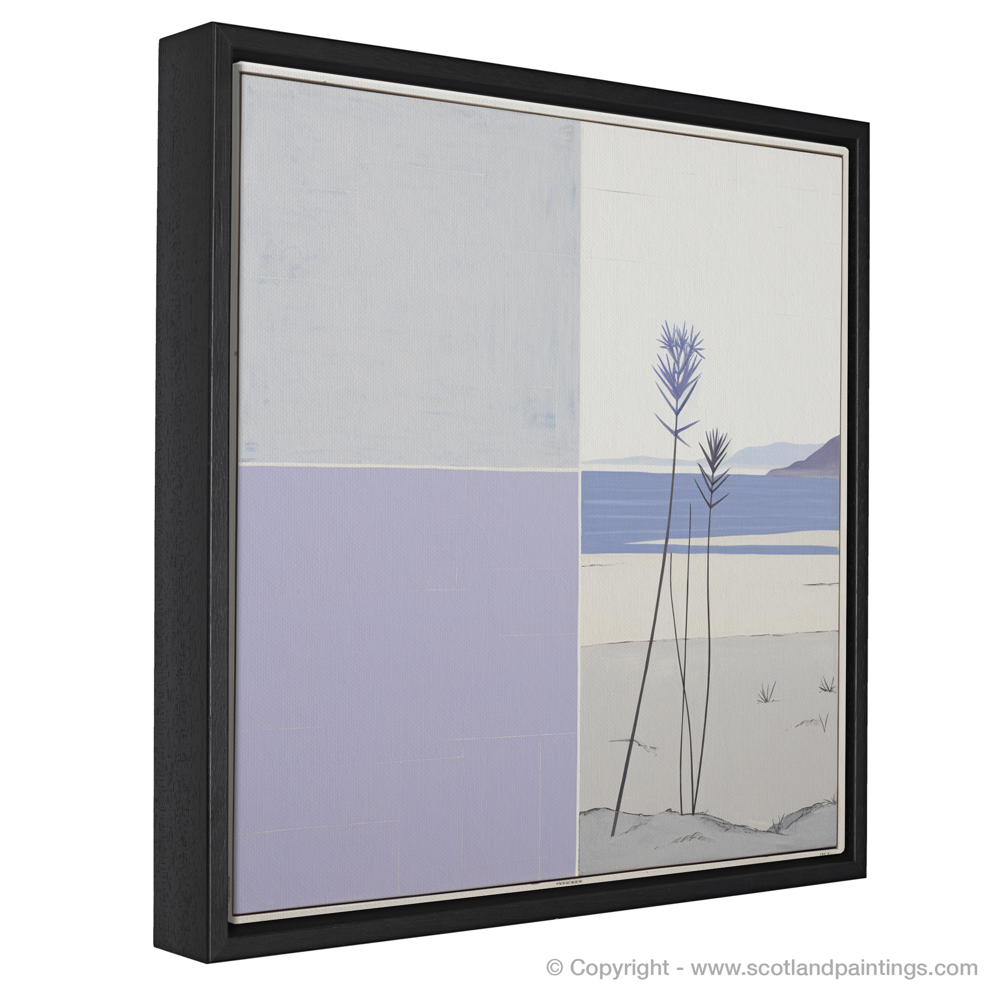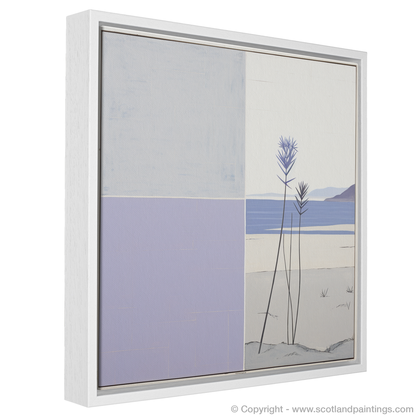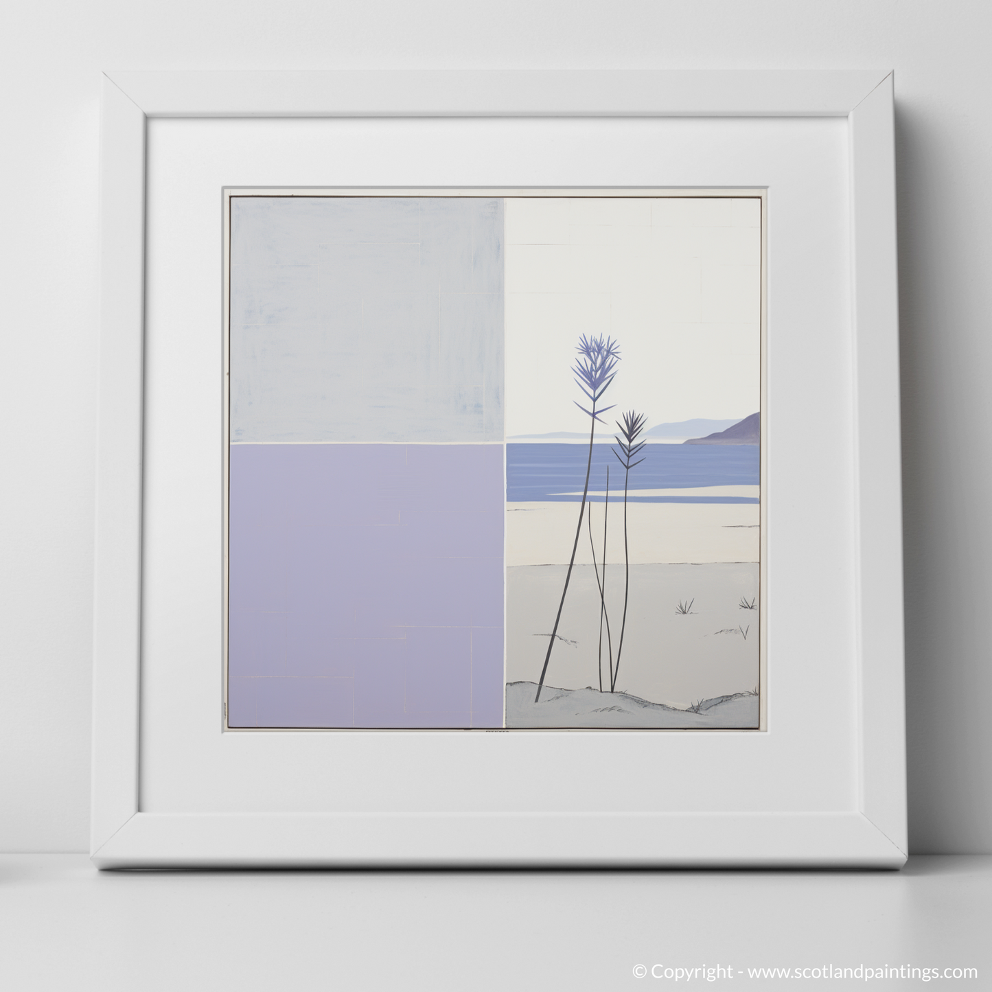 Immerse yourself in the serene beauty of Sandwood Bay with this captivating abstract print, where the natural grace of Scottish flora takes centre stage. The piece features the regal Sea holly—its elegant, spiky blooms rising with a stoic grace against the backdrop of ethereal shores.