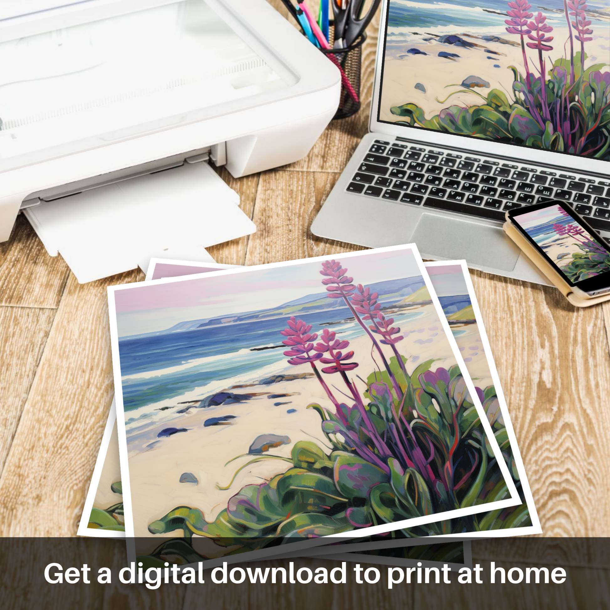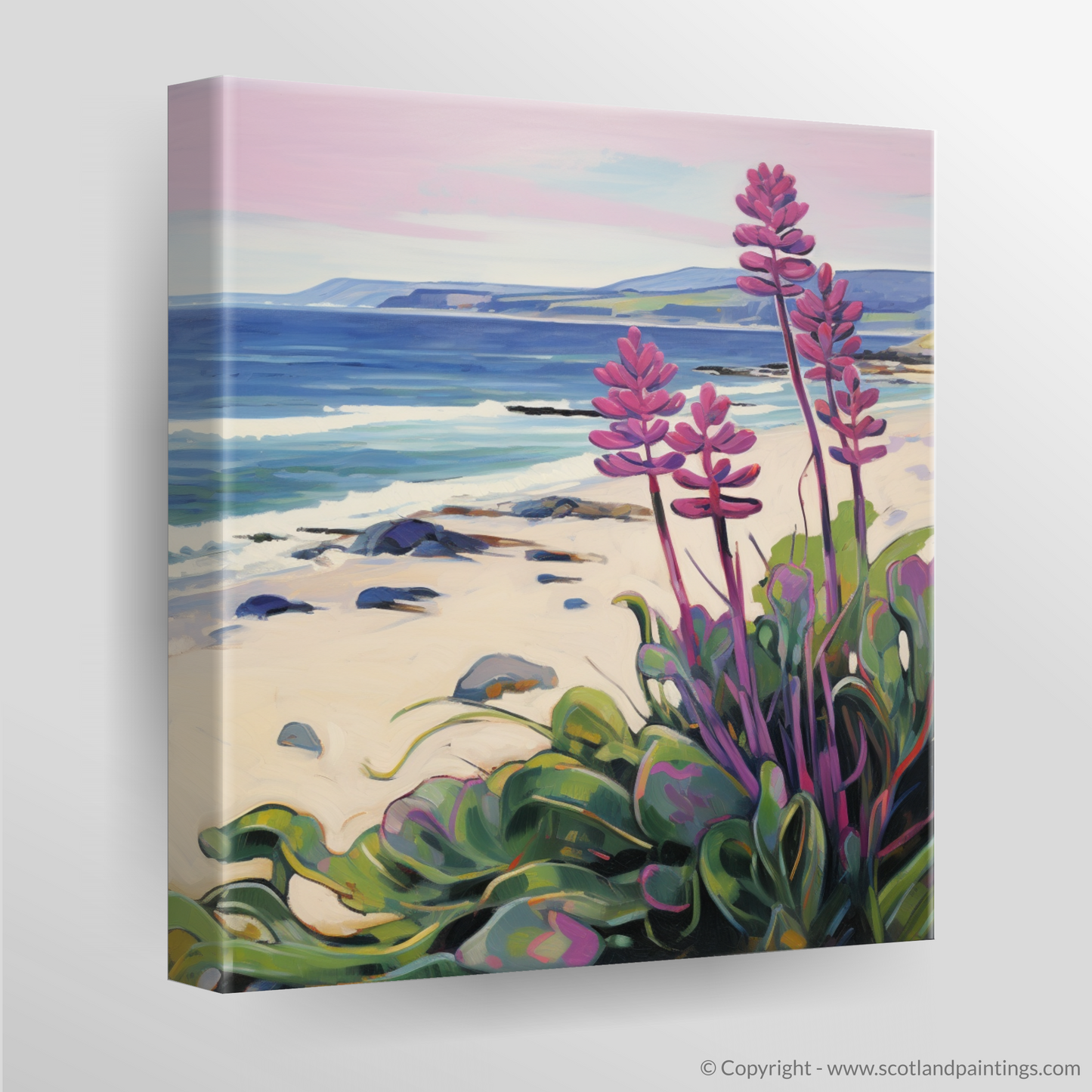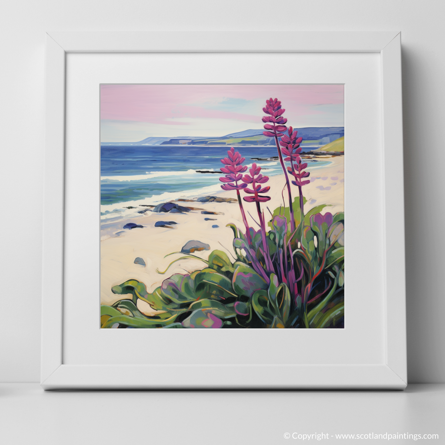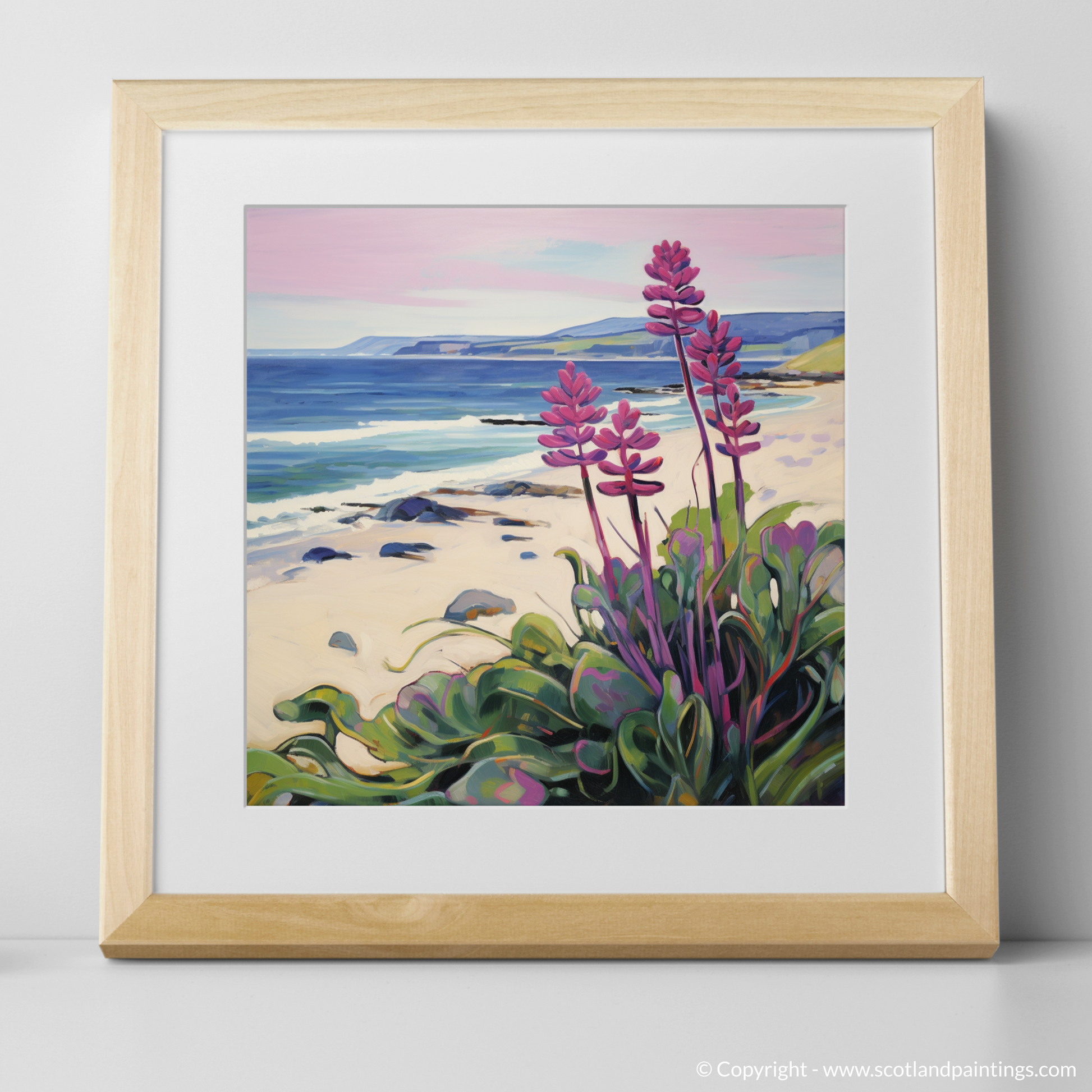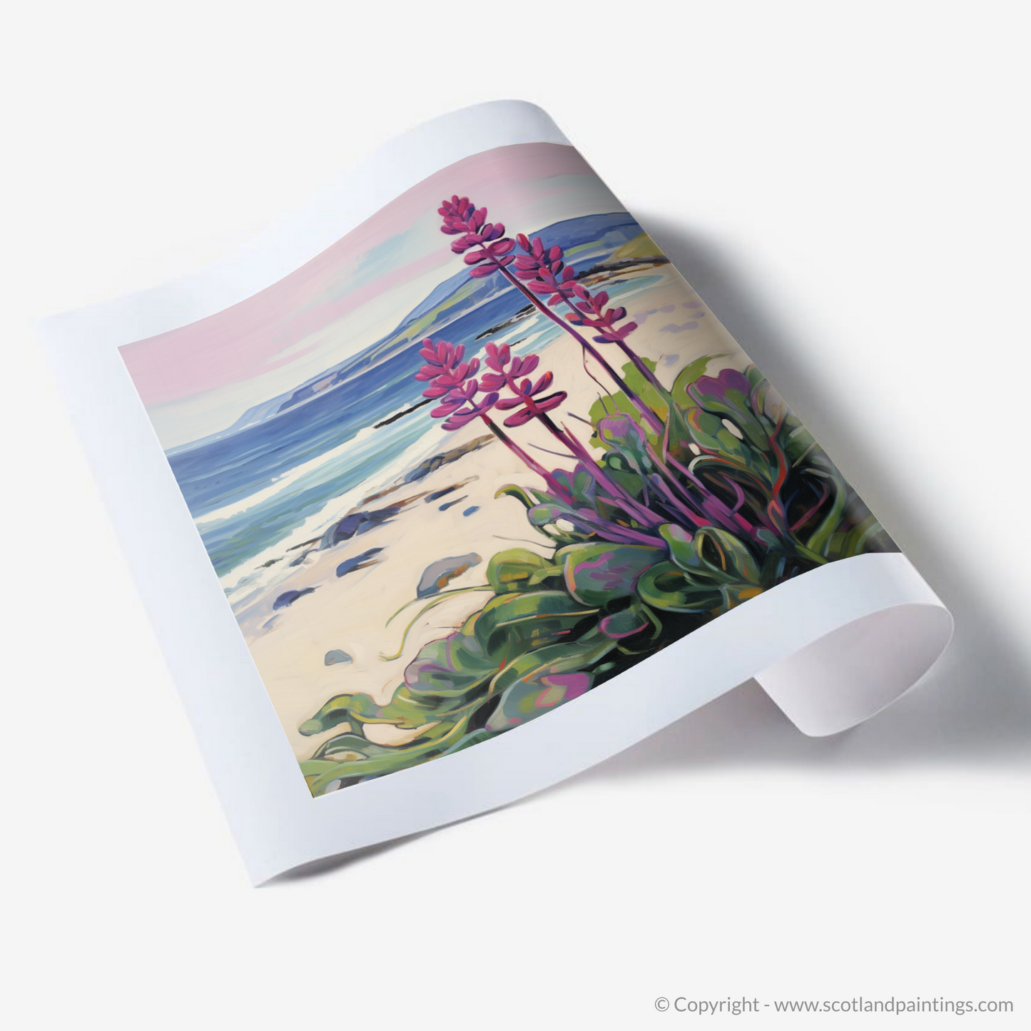 Capturing the vivacious spirit of the coast, this expressive print brings to life the robust beauty of the Oysterplant along the sweeping shores of Dornoch Firth. Pools of azure and cobalt dance upon the canvas depicting the North Sea's gentle waves, as they kiss the pristine sands of the Scottish coastline. The warm blush of the sky, a subtle nod to the fleeting moments of a sunset, provides a contrasting canopy to the seascape below.