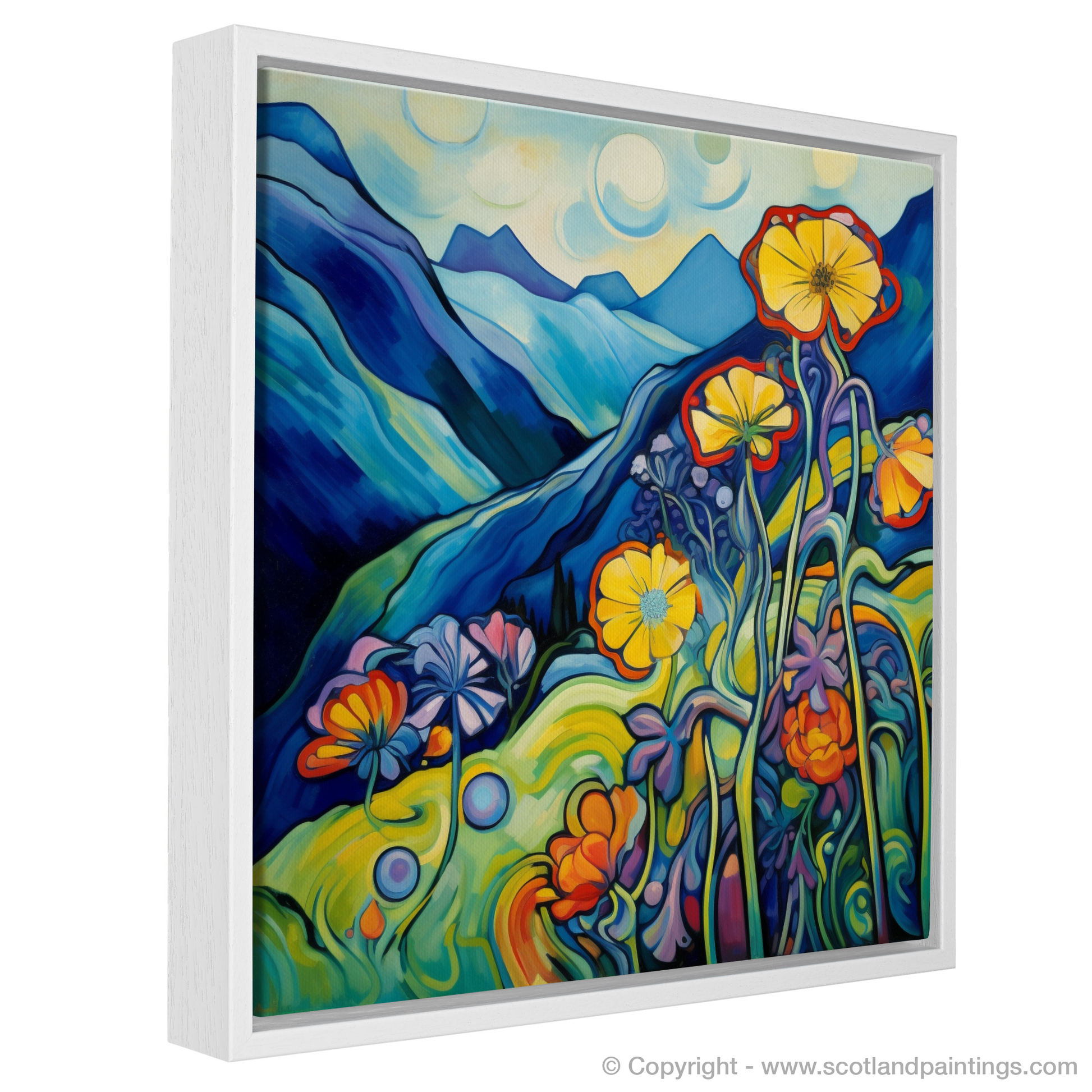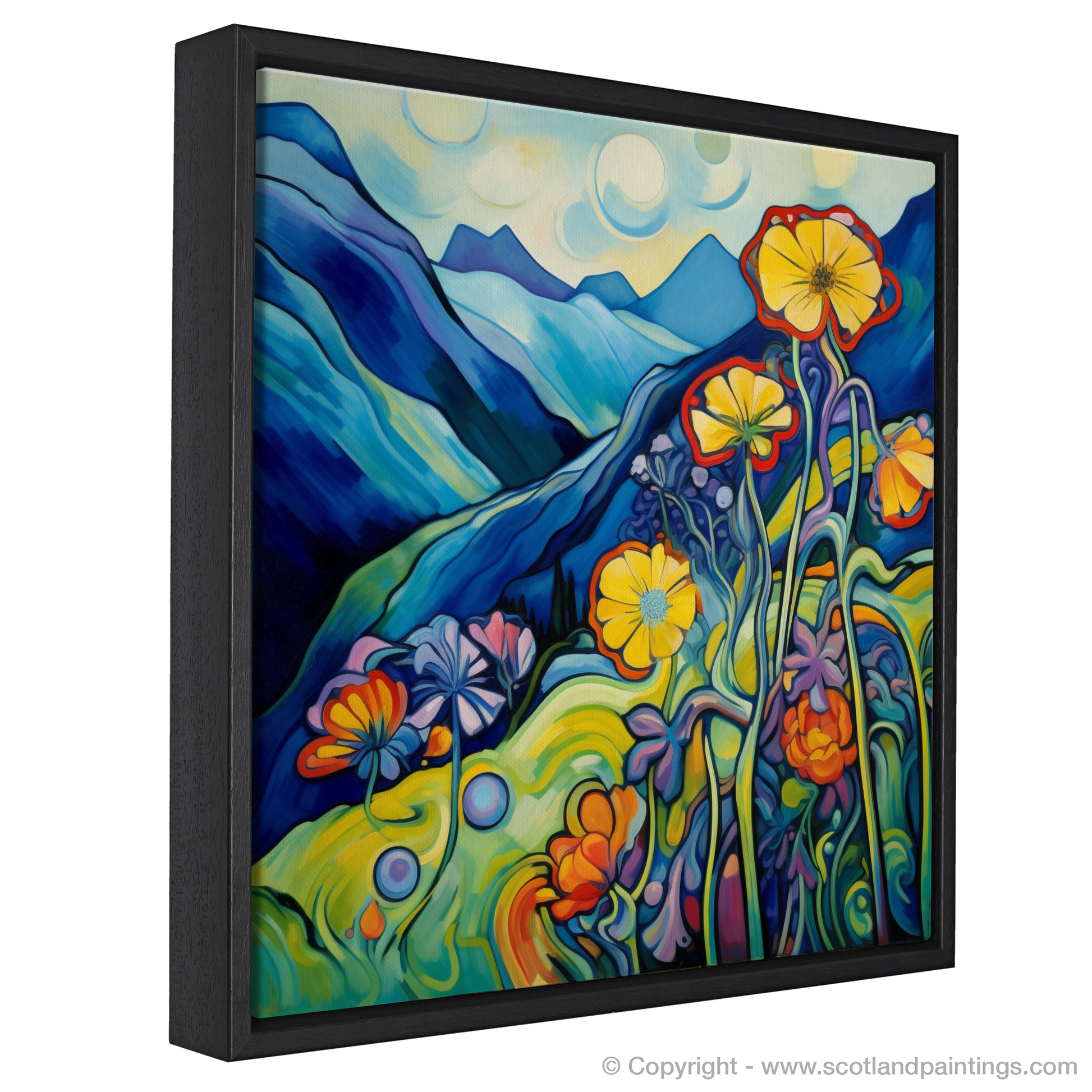 Let the whispers of the Scottish highlands envelop your space with this vibrant abstract print, reminiscent of an Alpine lady's-mantle flourishing on the slopes of Ben Lawers. The artwork casts a tapestry of vivid hues across the canvas, distilling the essence of Scotland's natural beauty into a radiant dance of colour.