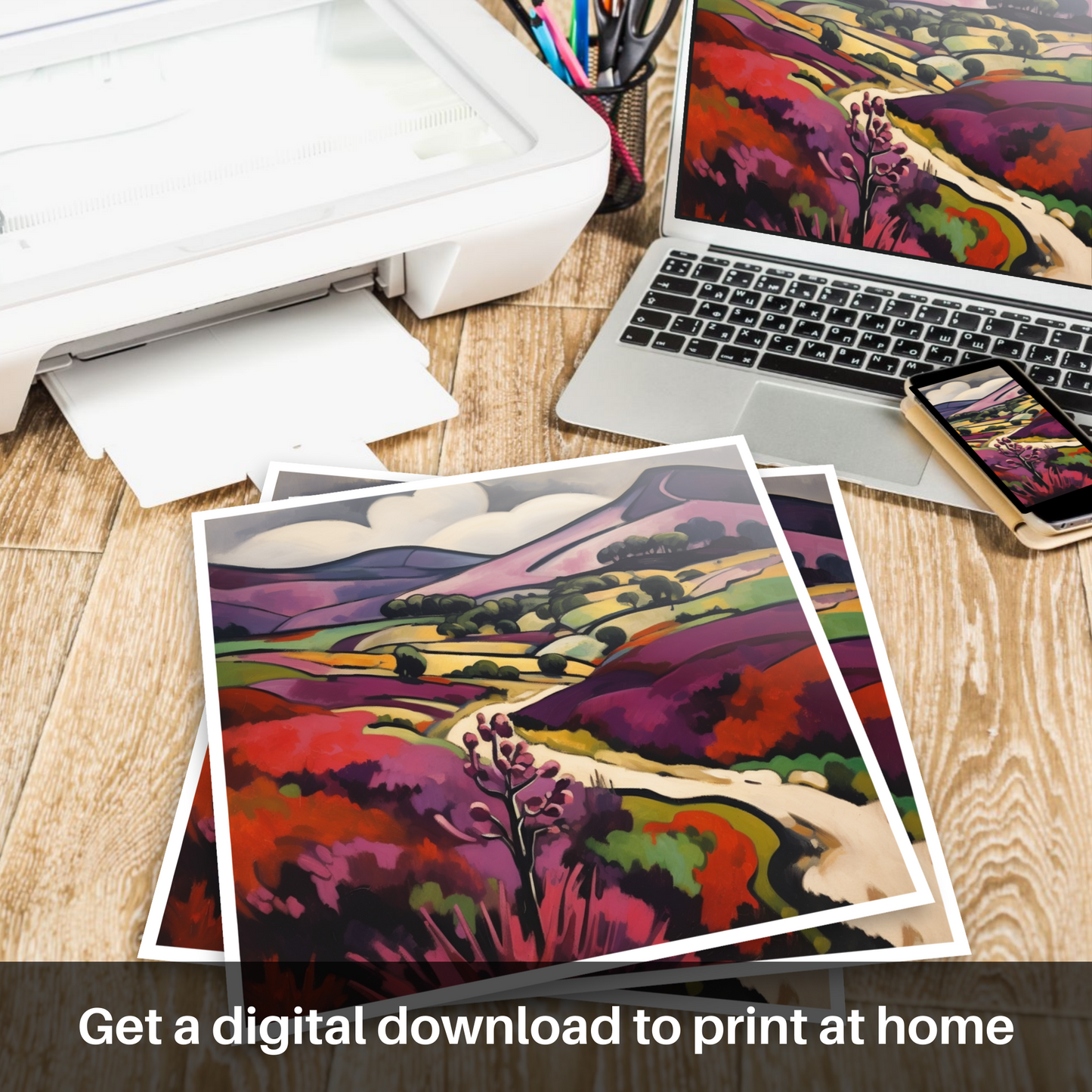 Immerse yourself in the vivid tapestry of Aberdeenshire's moorlands with this exquisite abstract interpretation, inspired by the natural beauty of Heather blooms across the undulating hills of Braemar. Dominated by a rich palette of deep purples and vibrant magentas, each brushstroke captures the essence of wild Scottish flora, a testament to the enchanting allure that defines the region's natural landscape.