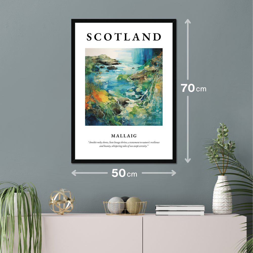 Surrounded by dramatic cliffs and lush landscapes, Mallaig whispers tales of sea-swept adventures and quiet moments amidst thriving Scots lovage. It’s a place where the untamed sea meets resilient flora, creating a rich tapestry of life and colour that is beautifully captured in this artwork. Let this framed poster transport a piece of Scotland’s enchanting allure into your home.
