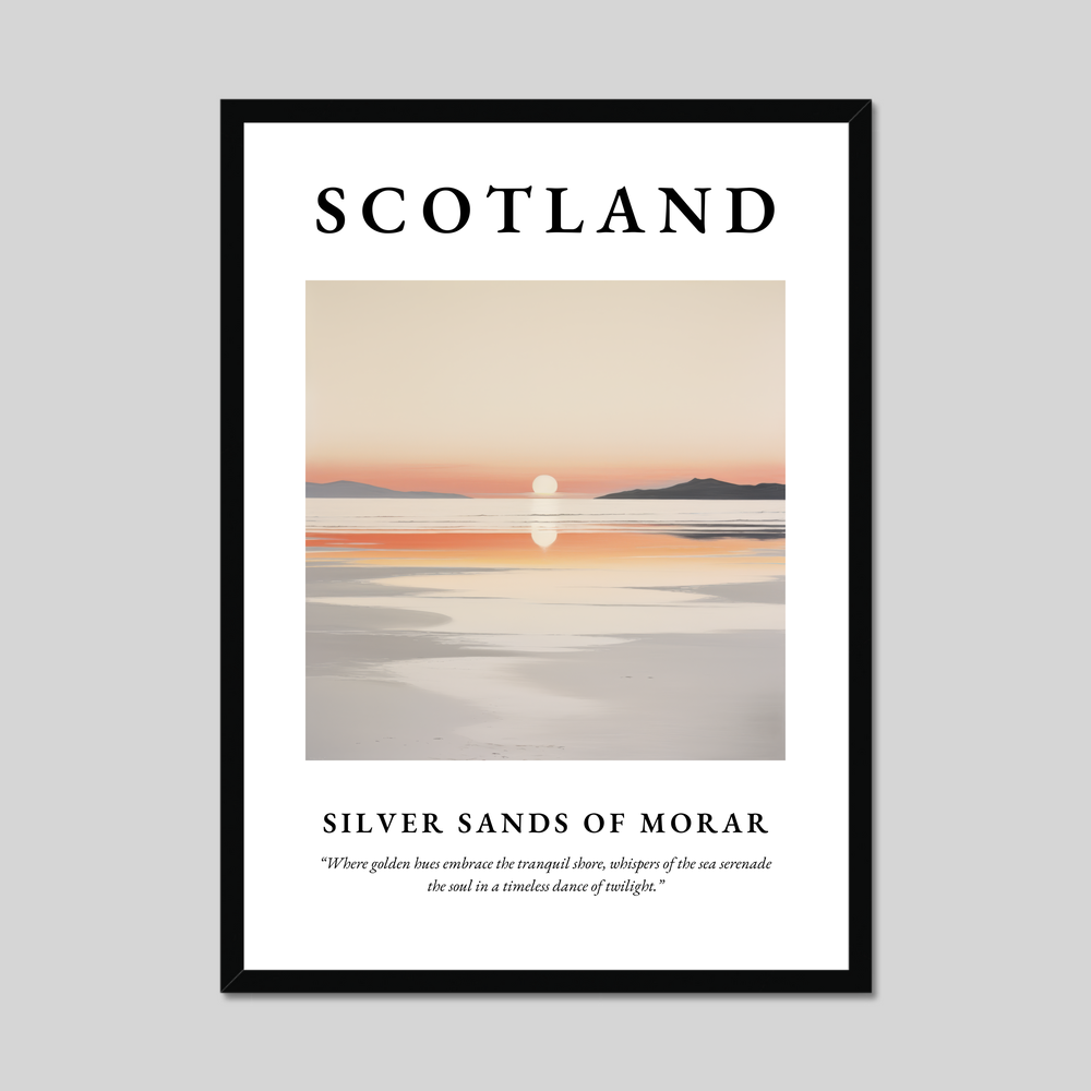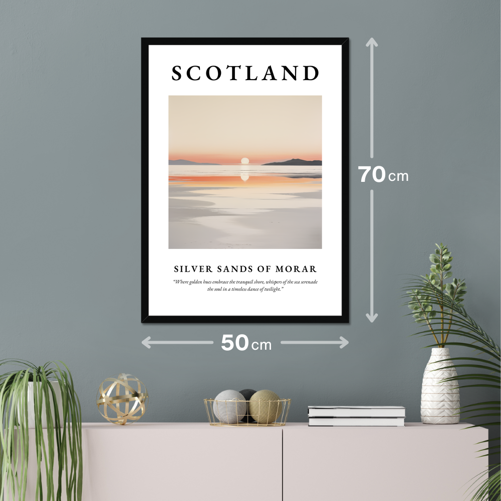 Capture the stunning beauty and serene ambience of the Silver Sands of Morar with this exquisite framed poster print. Measuring an impressive 50cm x 70cm, this piece carries a commanding presence, effortlessly transforming any room into a haven of tranquillity.