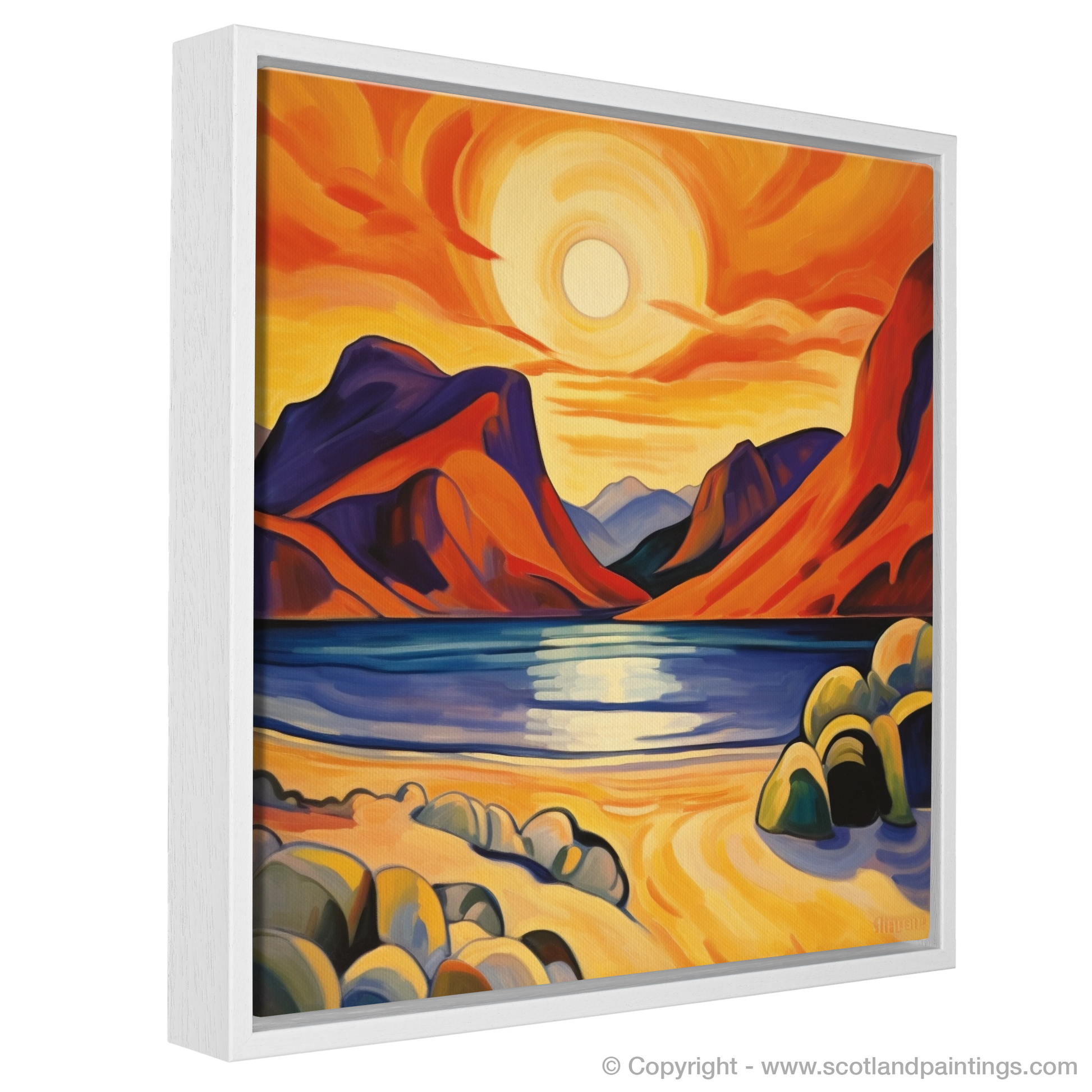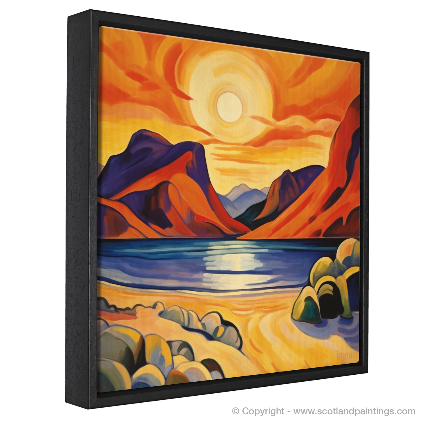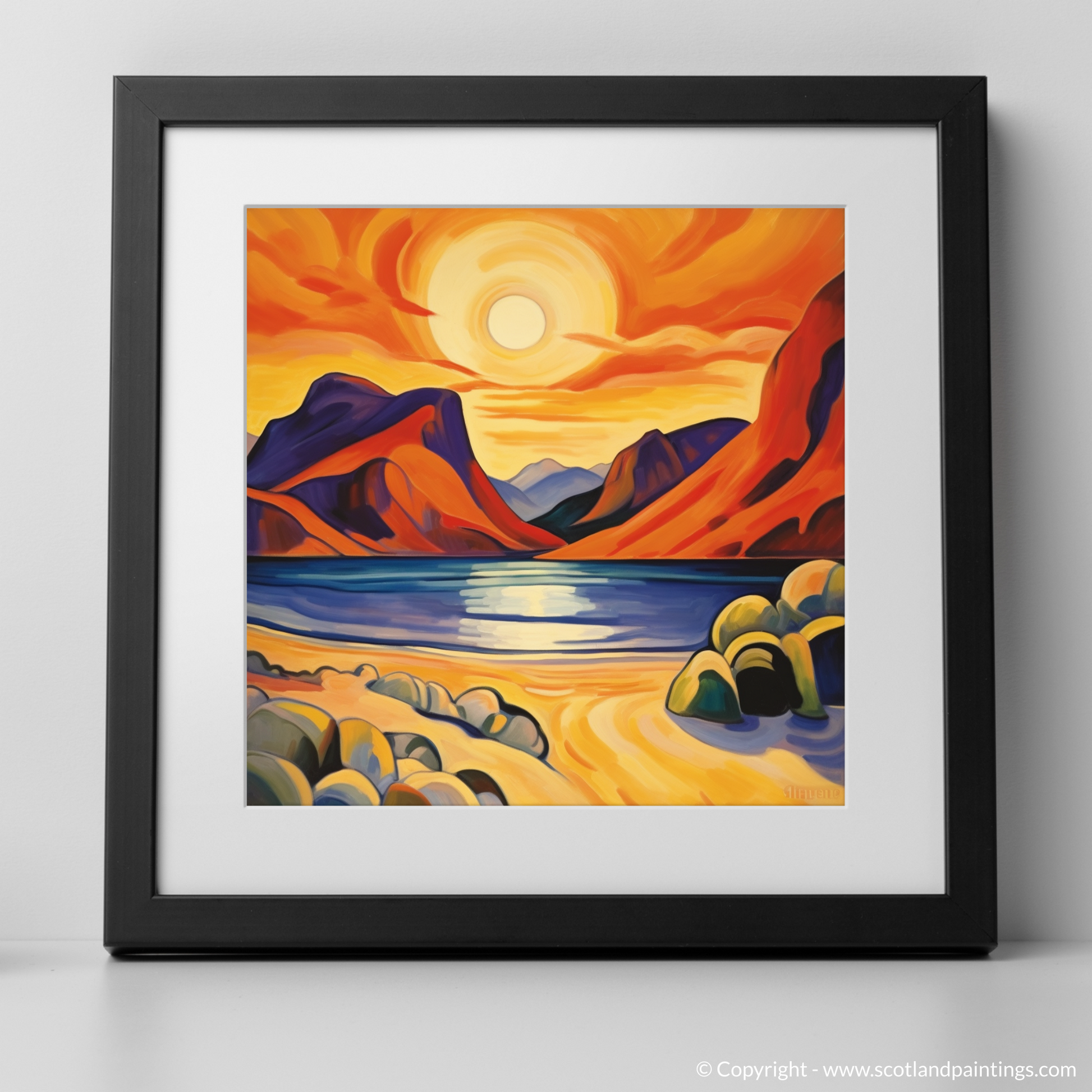 Bathed in the ethereal glow of the setting sun, this evocative print captures the serene beauty of a Scottish beach at the enchanting golden hour. Embracing the bold colours and dynamic brushwork characteristic of Fauvism, the piece presents Calgary Bay in a vivid tapestry of oranges, purples, and blues that dance across the canvas.