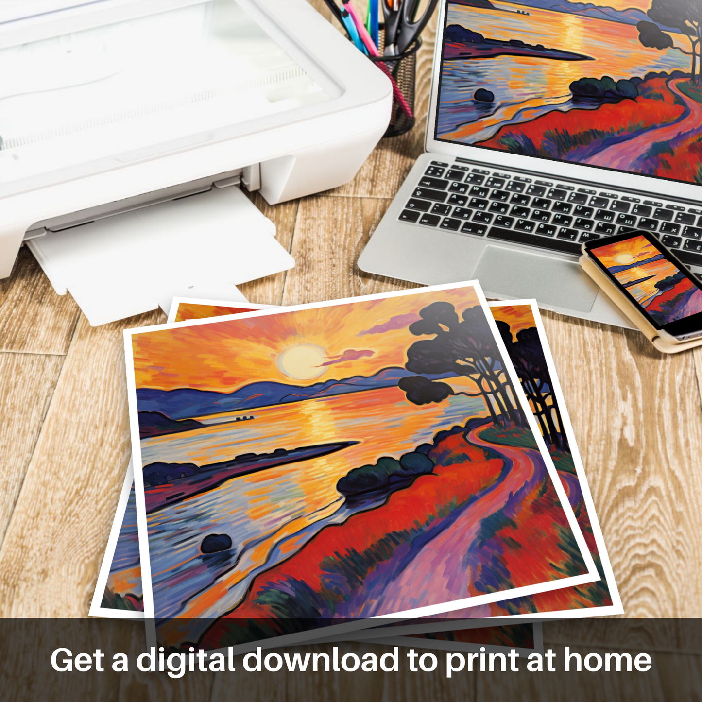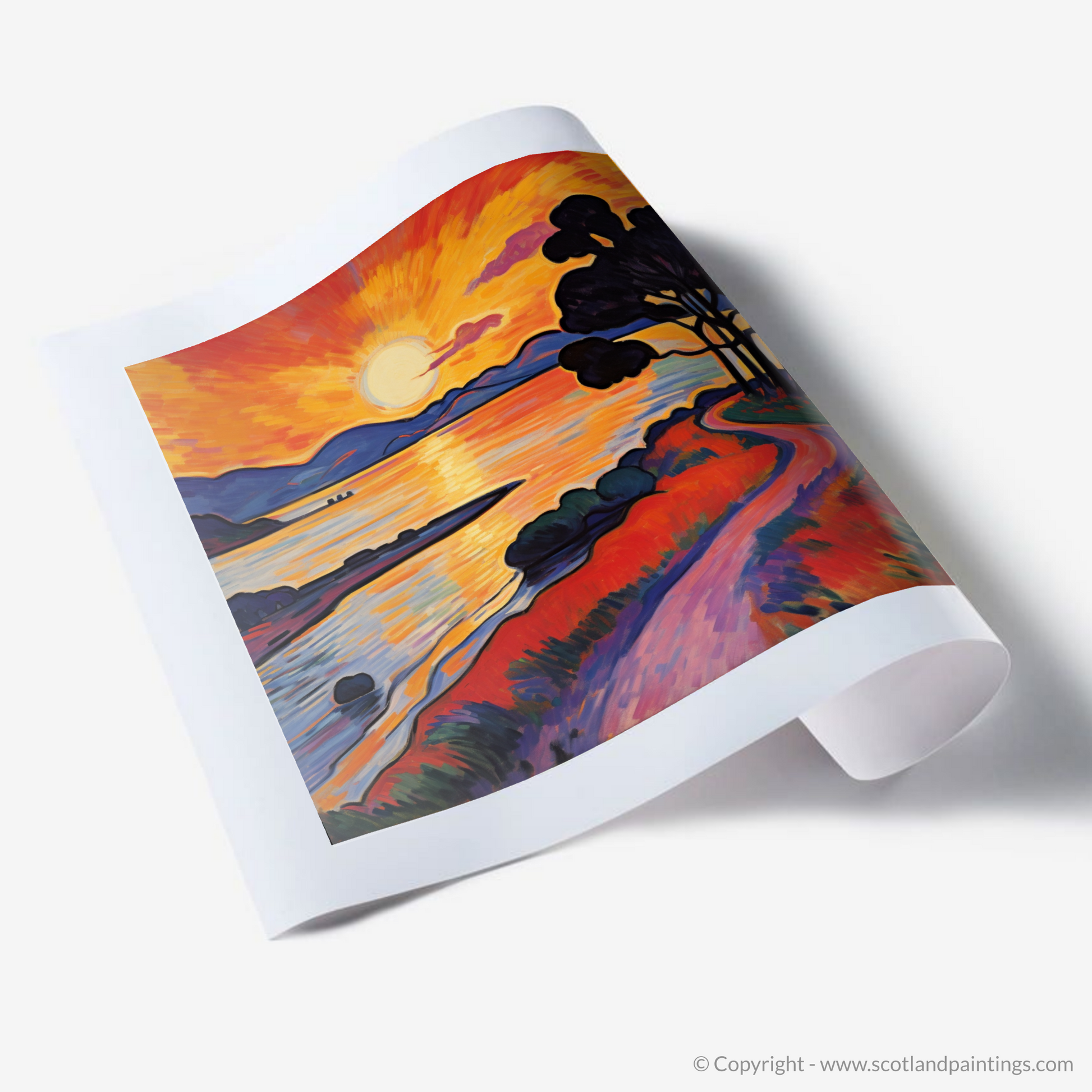 This print, a part of the 'Scottish Coves' collection, is an ode to the power of colour and the beauty of Scotland's natural landscapes. It promises to be a statement piece, an evocative reminder of the time when day cedes to night, and a fitting tribute to a style of art that continues to challenge and captivate. Let this visual spectacle bring the splendour of Ardanaiseig Bay's sunset into your space, stirring your emotions with its daring palette and impassioned representation of the world.