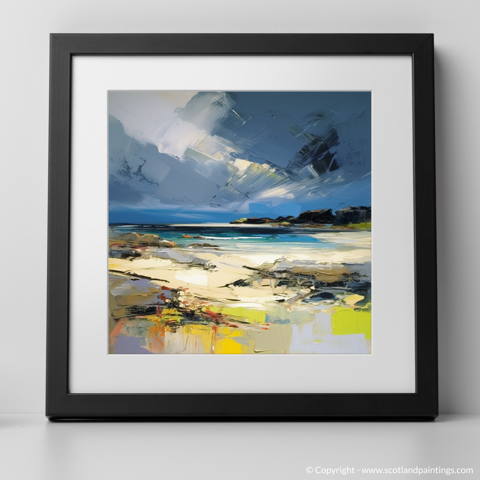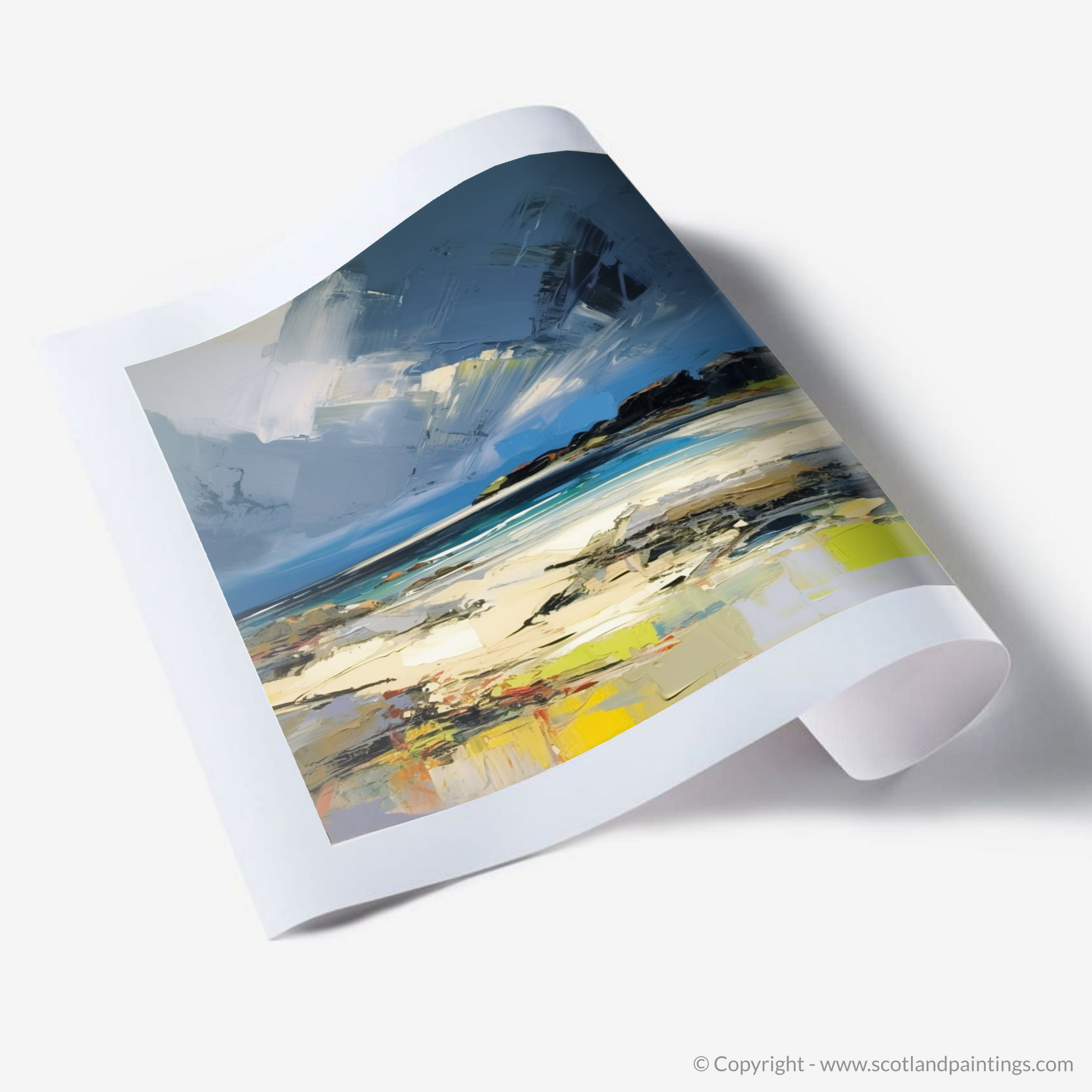 Embrace the tempestuous beauty of Arisaig Beach, as rendered through the impassioned strokes of abstract expressionism. This evocative print captures the untamed essence of one of Scotland's most picturesque coastal locales, drawing the onlooker into a visceral experience of swirling storms and serene seas.