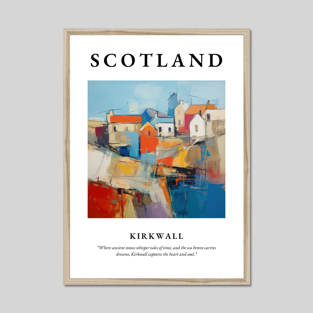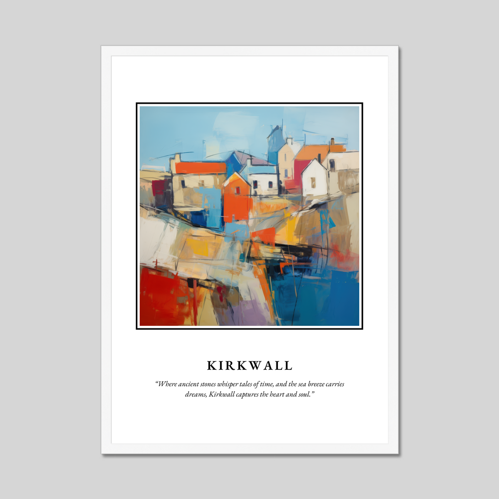 Whether you've wandered through its historical streets, felt the cool sea breeze, or dreamt of visiting, this framed poster brings the vivid essence of Kirkwall to your home. It’s more than just a piece of art; it’s a reminder of a place where time stands still and dreams take flight.