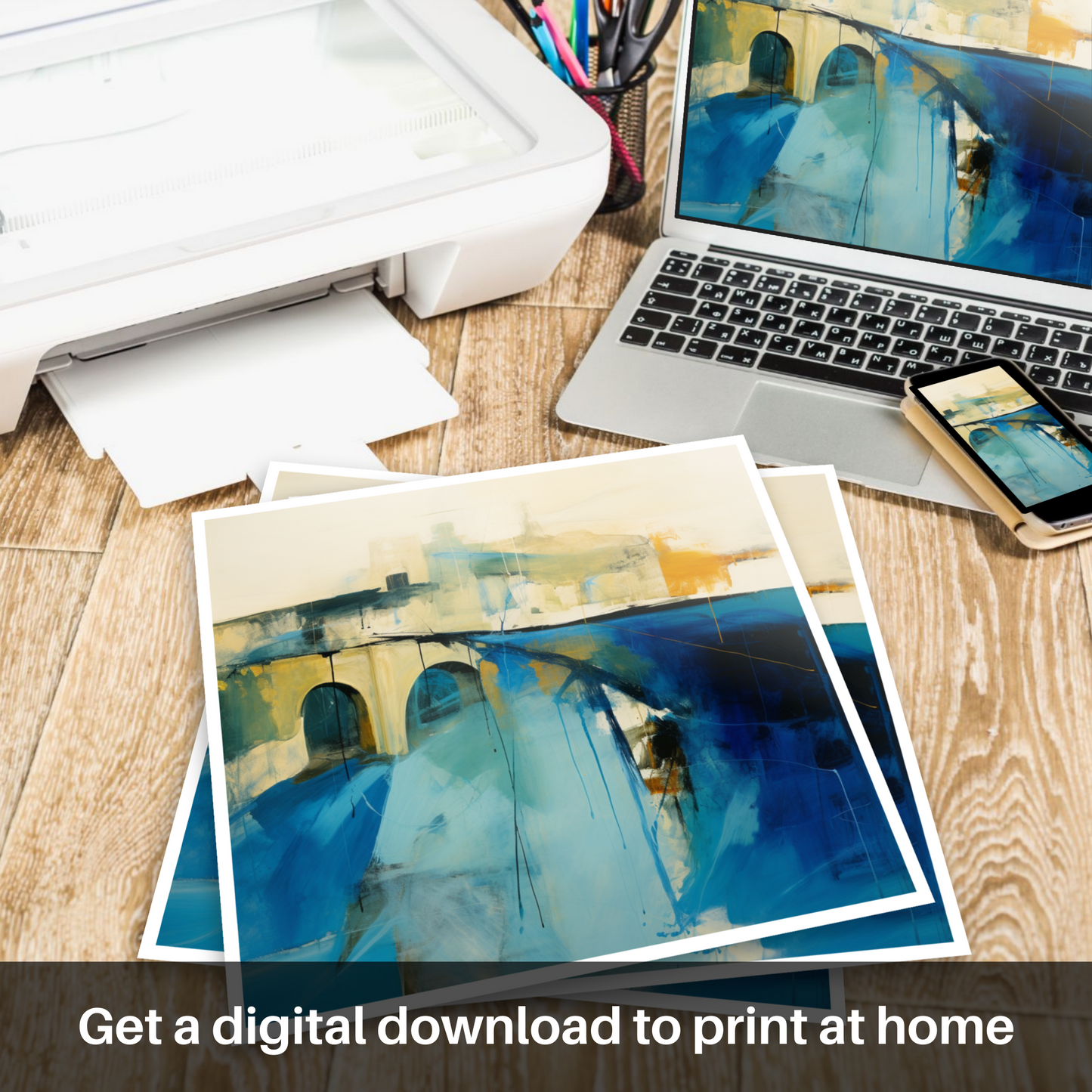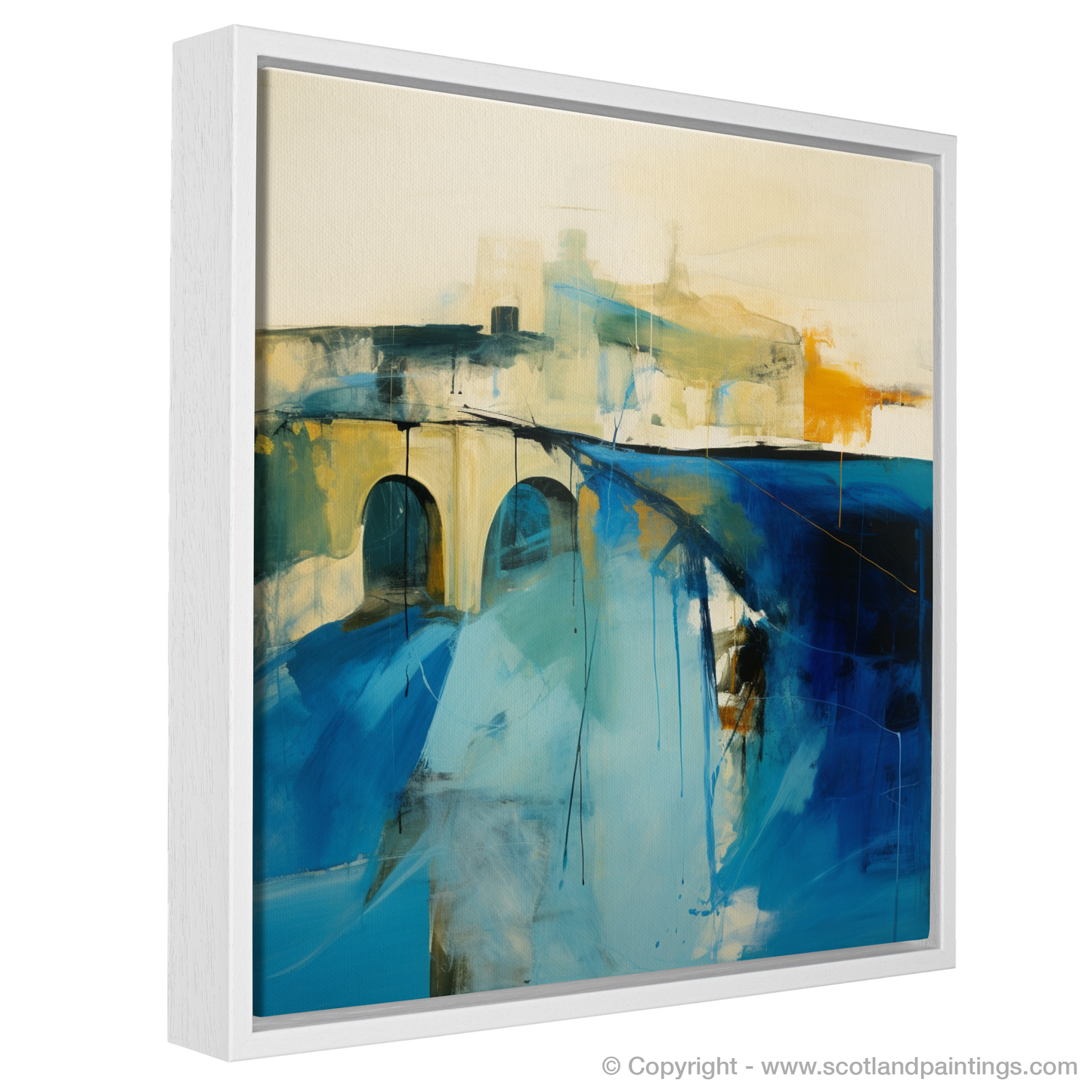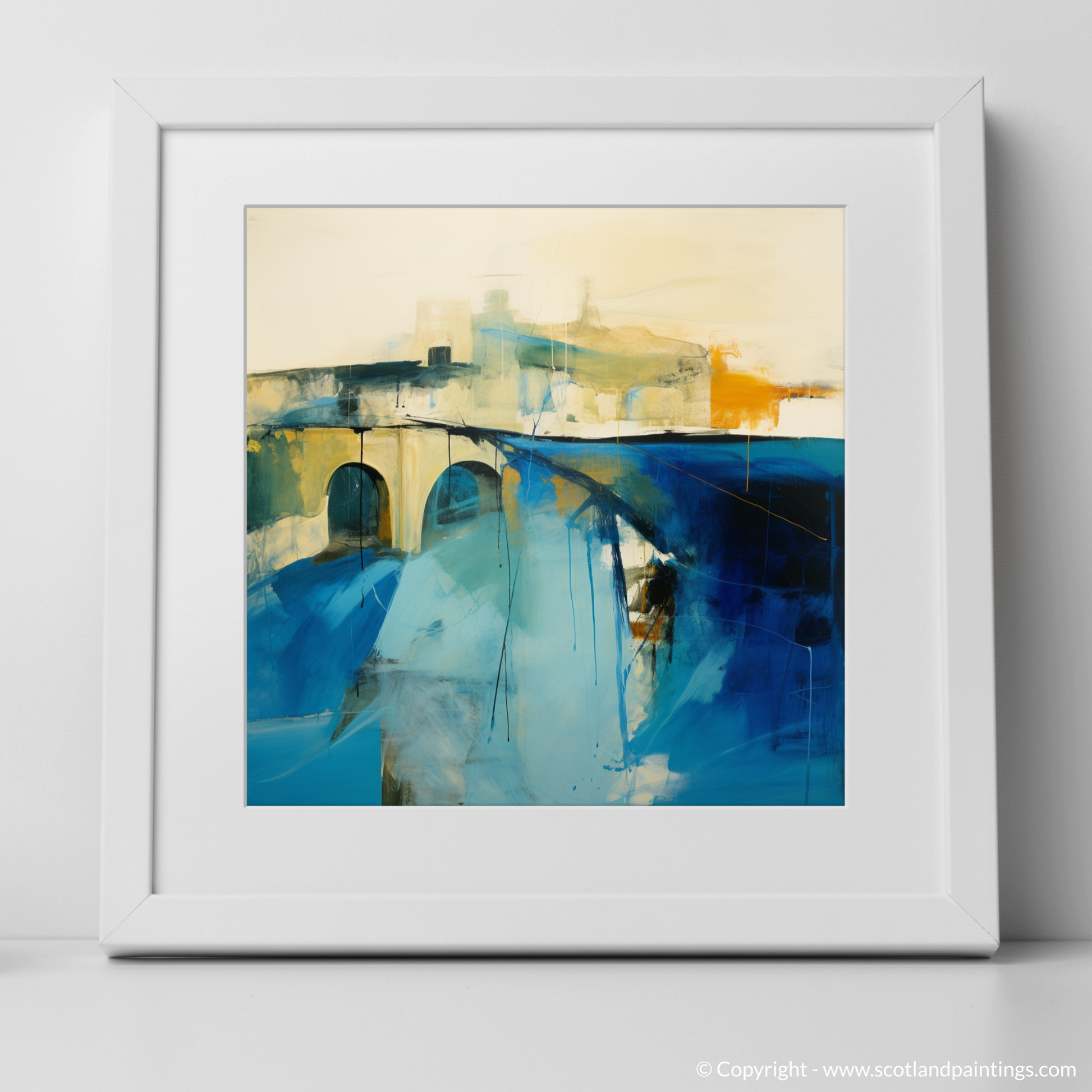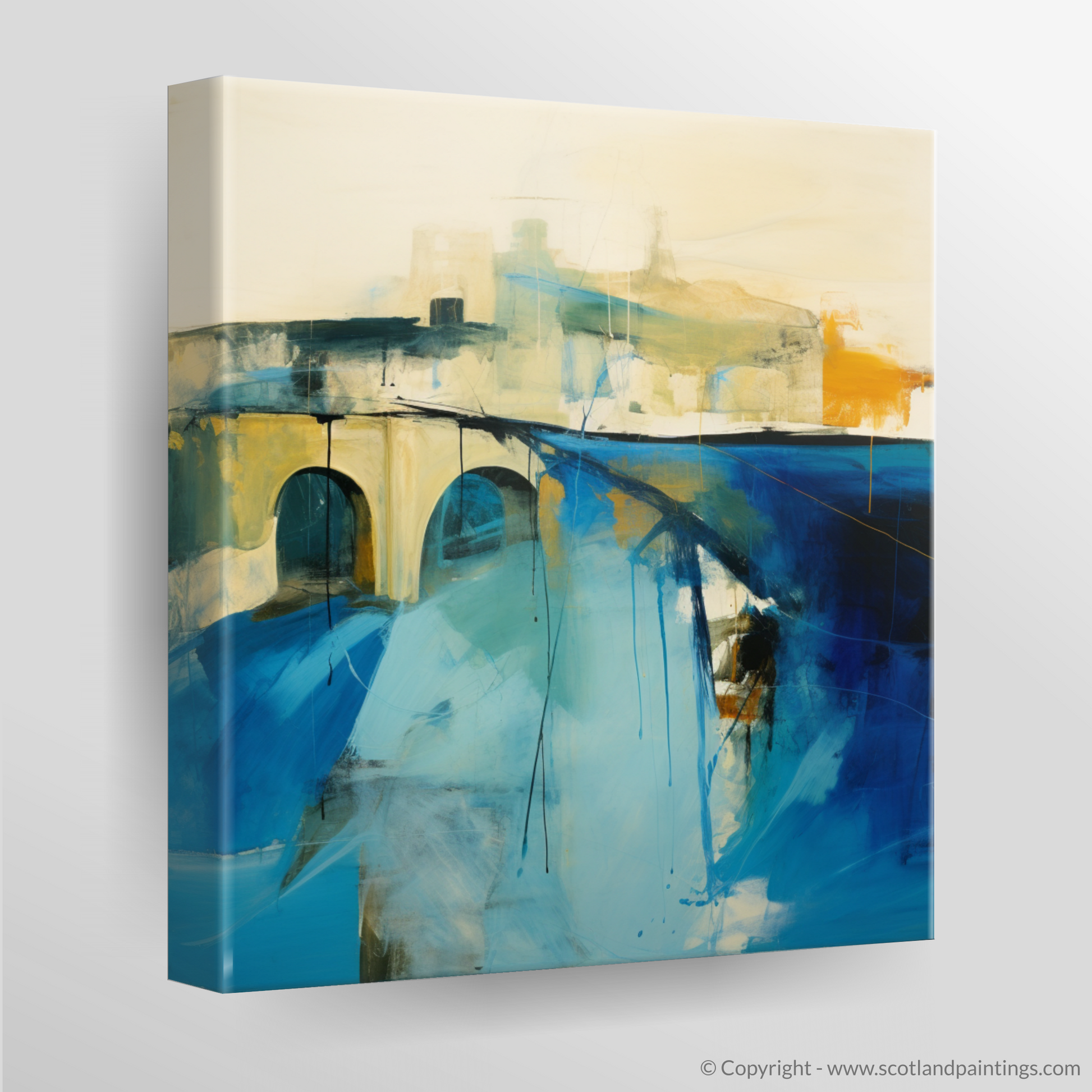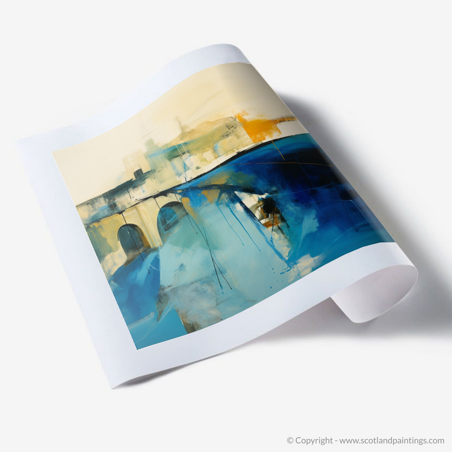 Immerse yourself in the vivid swirls of cerulean and azure that dominate this abstract homage to the historic Brig O' Balgownie. Hailed as one of Scotland's most picturesque bridges, its essence is captured here not through rigid lines, but via a maelstrom of colour and texture that beckons the observer into a reimagined realm.