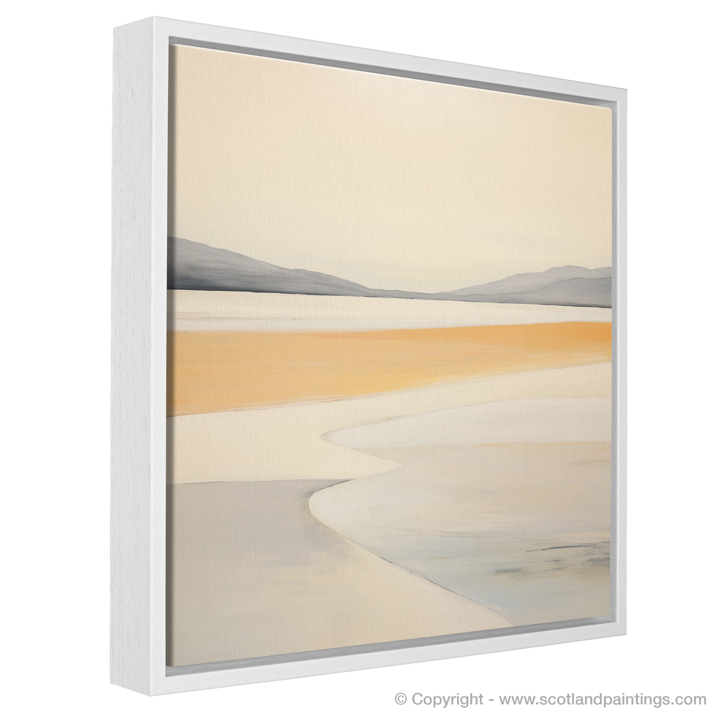 Immerse yourself in the serene beauty of Scotland's coastal charm with this exquisite abstract print, capturing the essence of Kiloran Bay bathed in the resplendent light of golden hour. The sweeping vista features a harmonious symphony of warm amber tones blending gently into the cool, muted shades of the sky and distant rolling hills. The distinct yet subtle gradations of colour convey the quiet lull at day's end, while the broad, delicate brushstrokes evoke the peaceful ebb and flow of the tides.