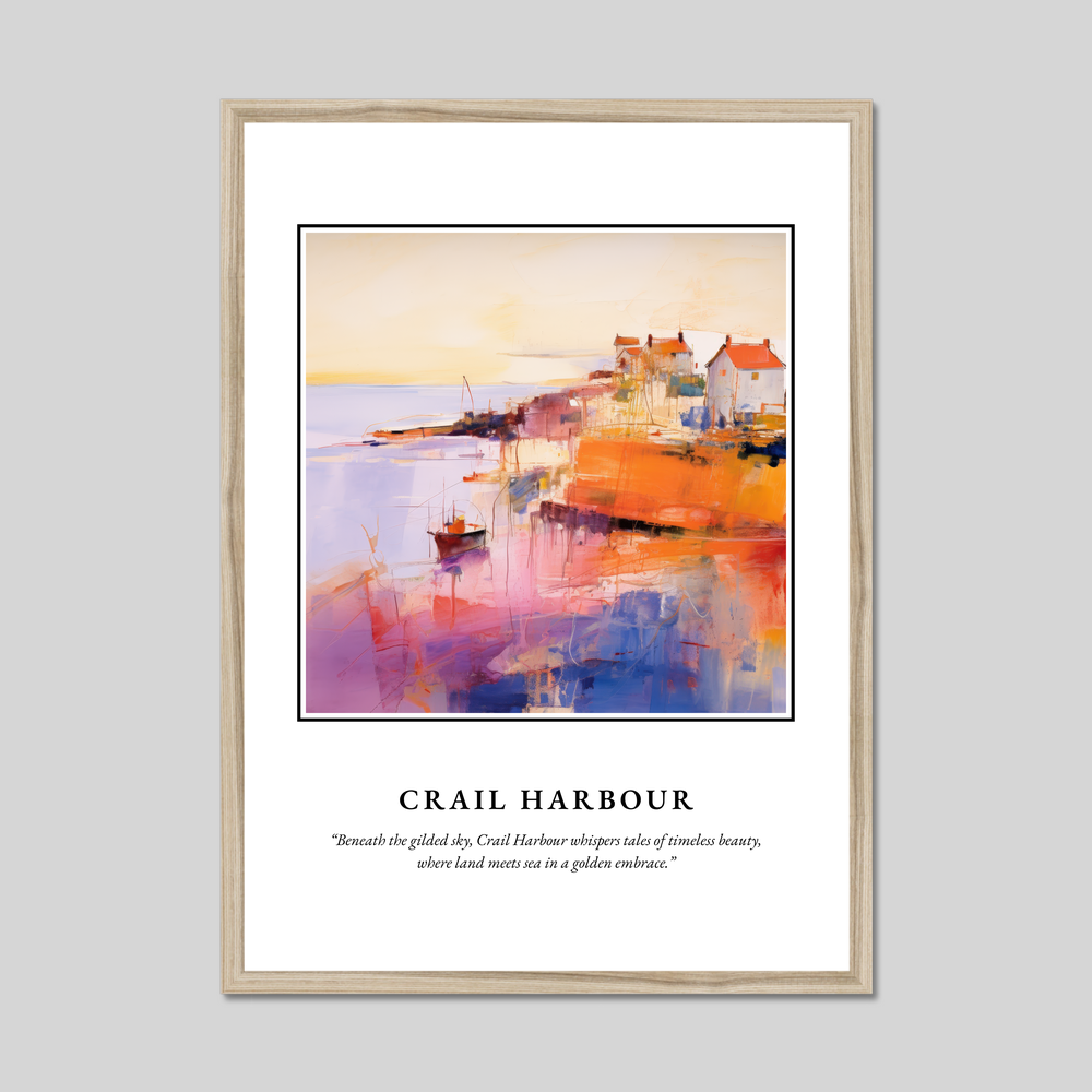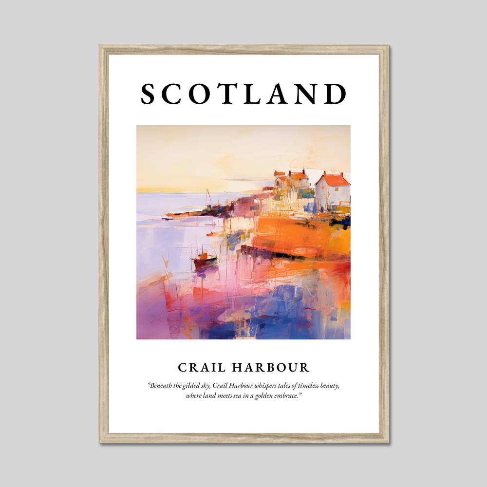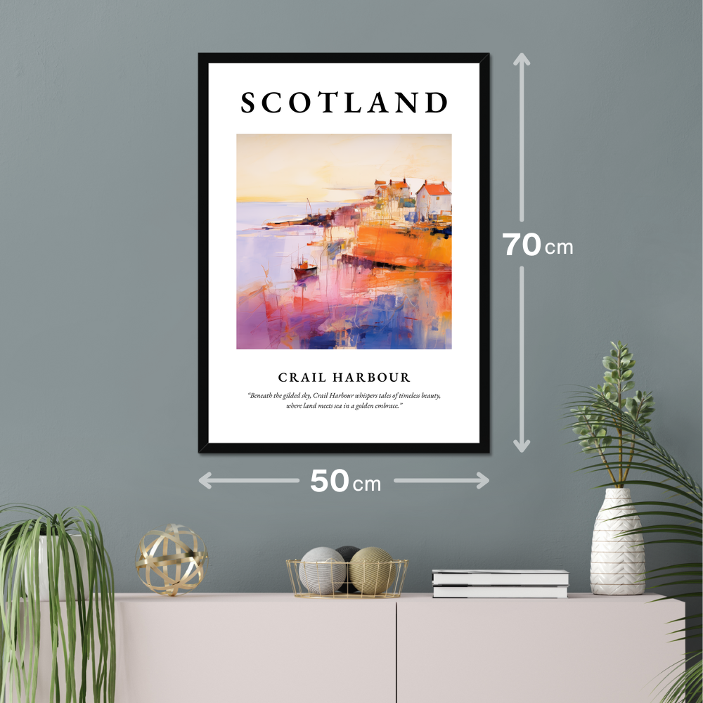 Transform your space with our stunning framed poster print, a vibrant celebration of Scotland’s captivating beauty. At a generous size of 50cm x 70cm, this poster is the perfect statement piece to grace your wall, offering an exquisite view of Crail Harbour without breaking the bank. Available in sleek black, crisp white, or a warm natural wood-effect frame, it effortlessly complements any decor style.