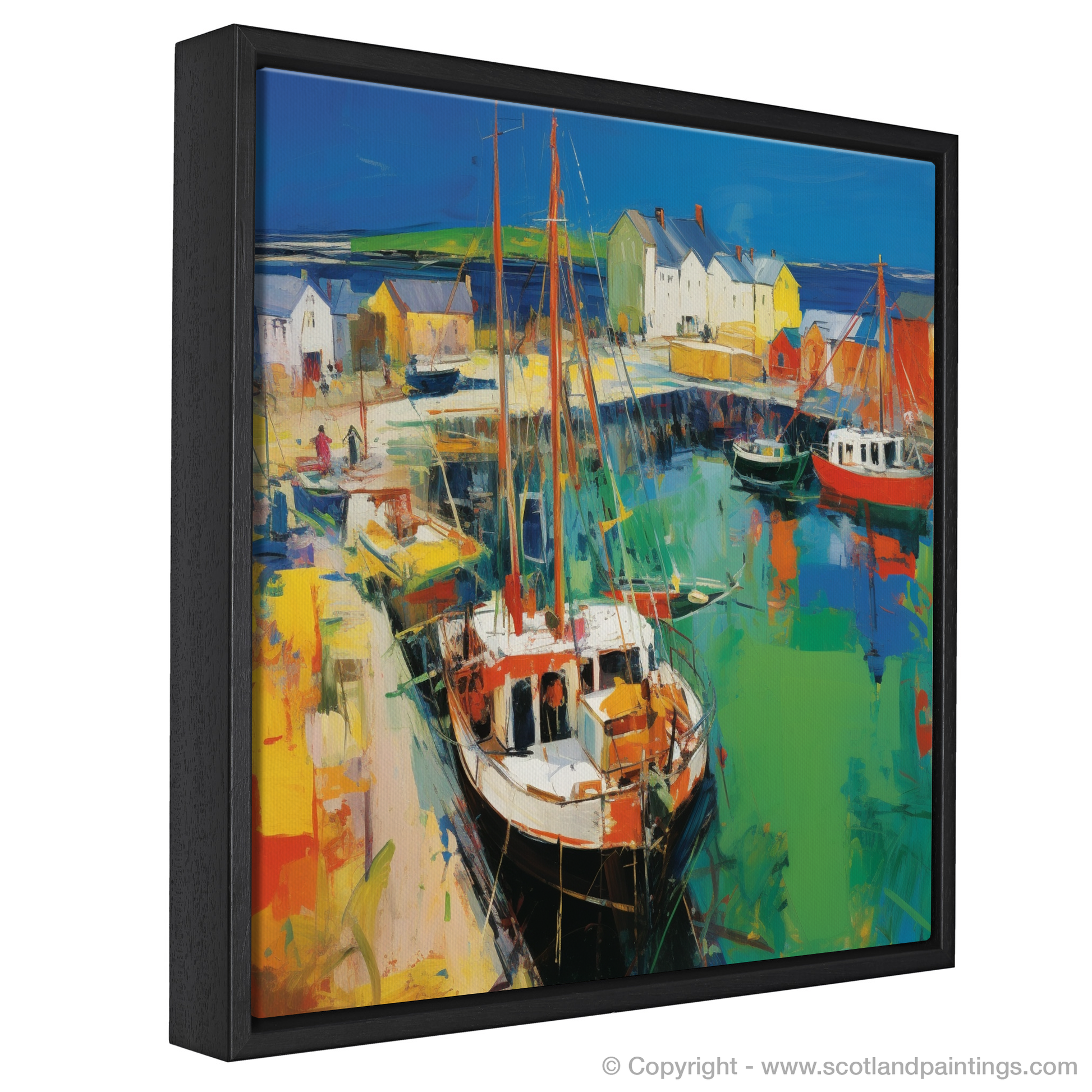 Step into the vibrant world of Charlestown Harbour, captured through this vivacious and dynamic abstract expressionist print. With bold strokes and an exuberant palette, the artwork invites viewers to experience the movement and energy that radiates from the bustling Fife coast.
