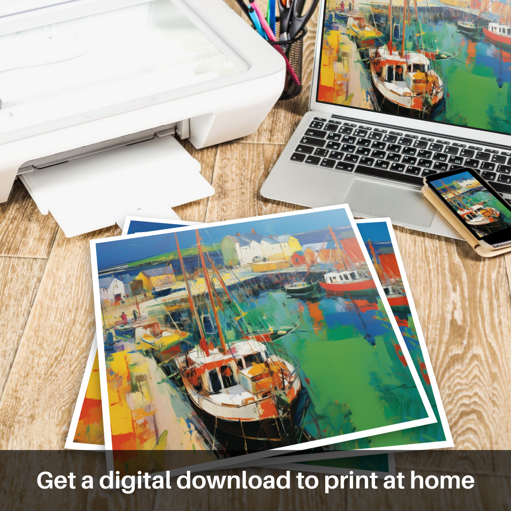 This print from our 'Scottish Harbours' collection is not just a visual treat; it’s an invitation to weave your narrative into the tapestry of abstract shapes and potent colours. It’s perfect for adding a touch of Scottish allure and the spirit of abstract expressionism to any space that craves a statement piece resonant with life and motion.