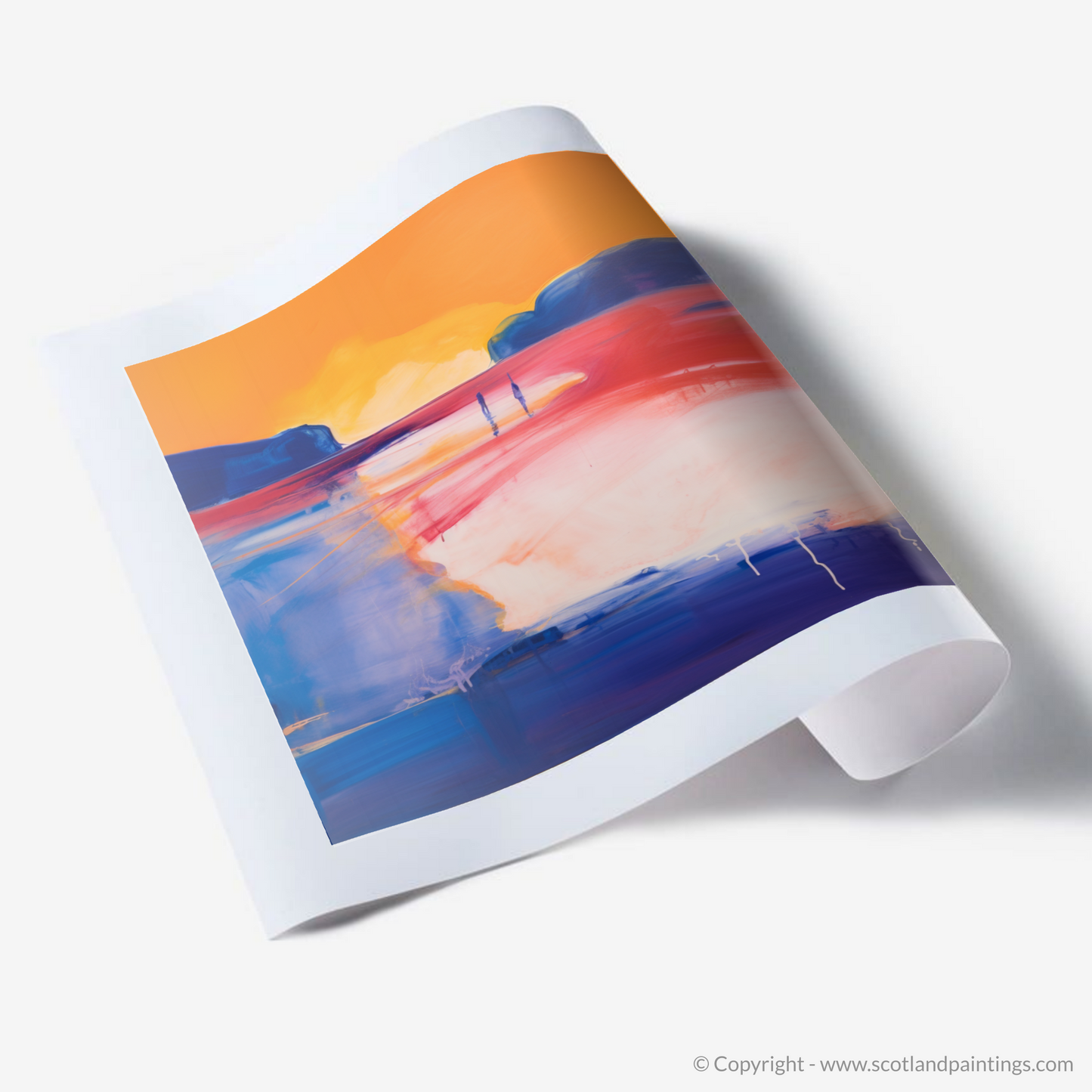 This print, rich in abstract expression, invites contemplation and serenity into any space. It is not just a picture but an experience, offering a window to a world where the border between sea and sky is a heartfelt brushstroke, and the whispers of the waves tell tales in vivid pigments. It is a must-have for enthusiasts seeking to bring the transcendental beauty of a Scottish sunset into their home or office.