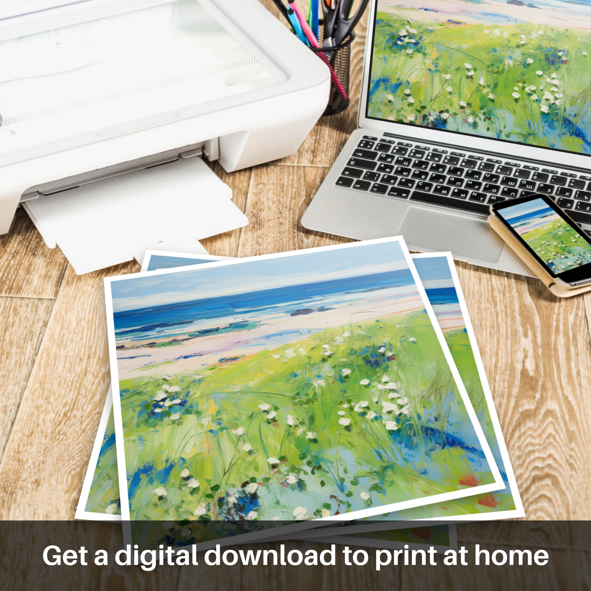 A fusion of form and colour, this print invites the beholder to step into a fragmented yet harmonious world where each brushstroke contributes to the overall sensory experience. Whether one is drawn to the abstract depictions of the natural elements or the emotion conveyed through vibrant tones and textures, this piece from our 'Scottish Flowers and Flora' collection is a captivating homage to Scotland's coastal flora, enriching any space with its bold, abstract beauty.