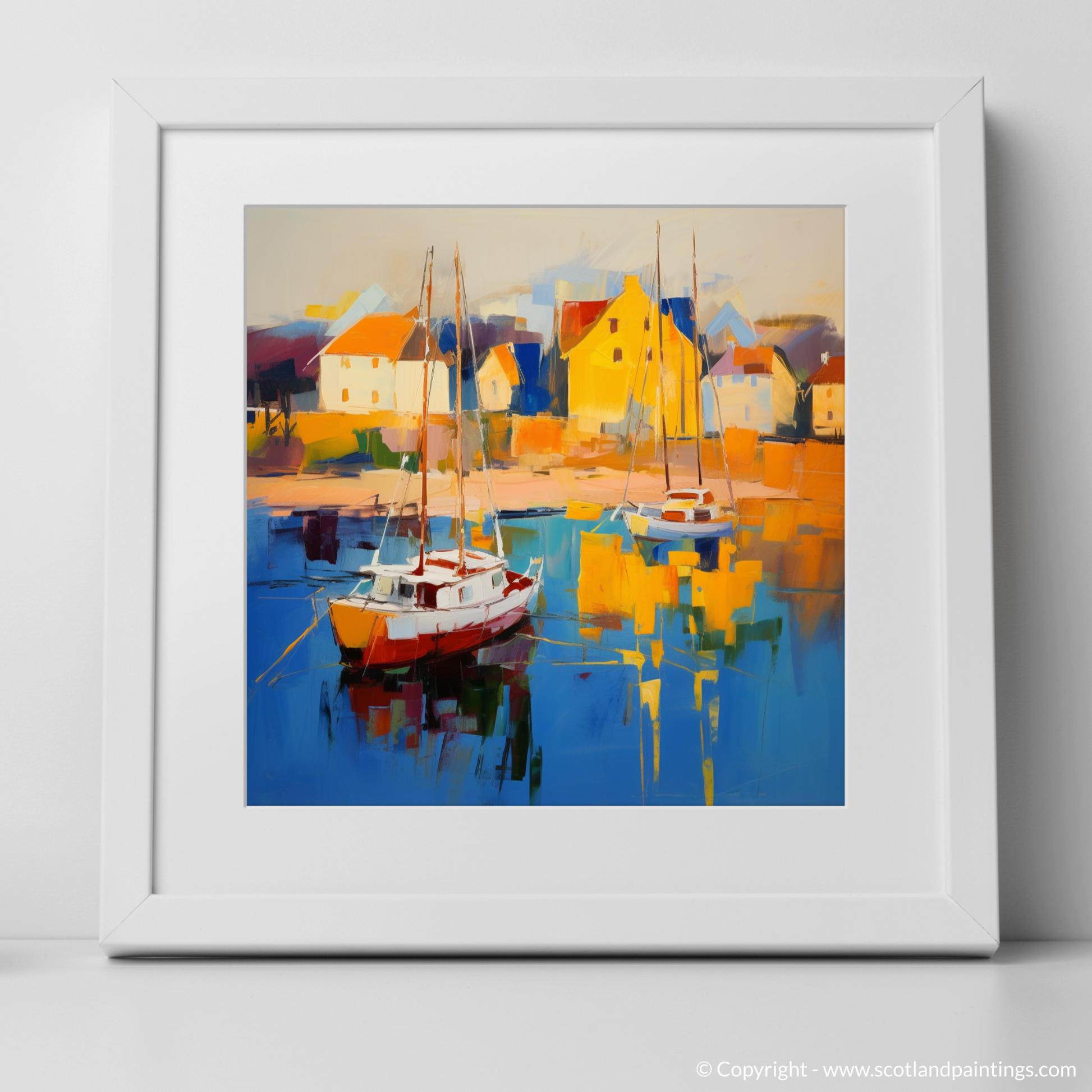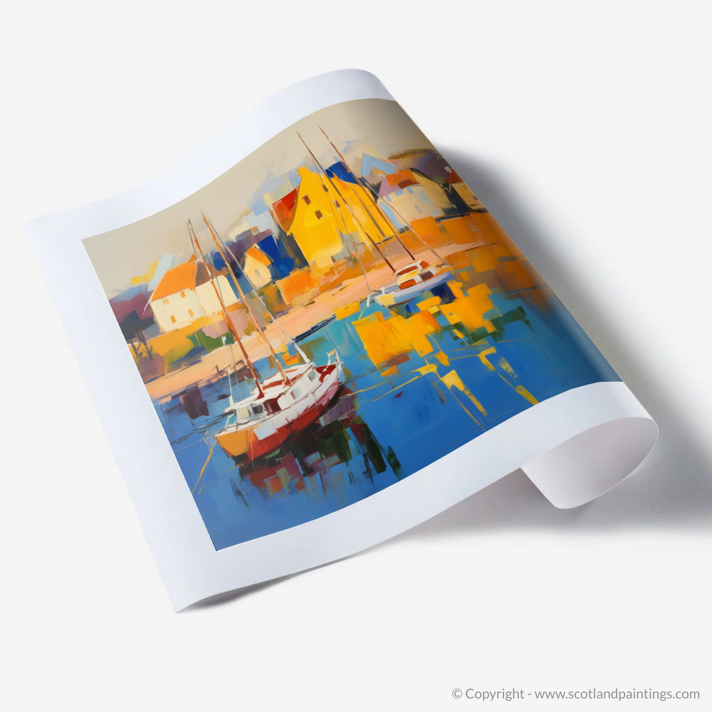Allow the tranquil splendour of North Berwick Harbour at the zenith of golden hour to envelop your space with this evocative print. Captured in the distinctive energy of Abstract Expressionism, the piece is a dynamic symphony of bold strokes and vibrant hues that simultaneously evoke a sense of calm and a burst of creative vitality.