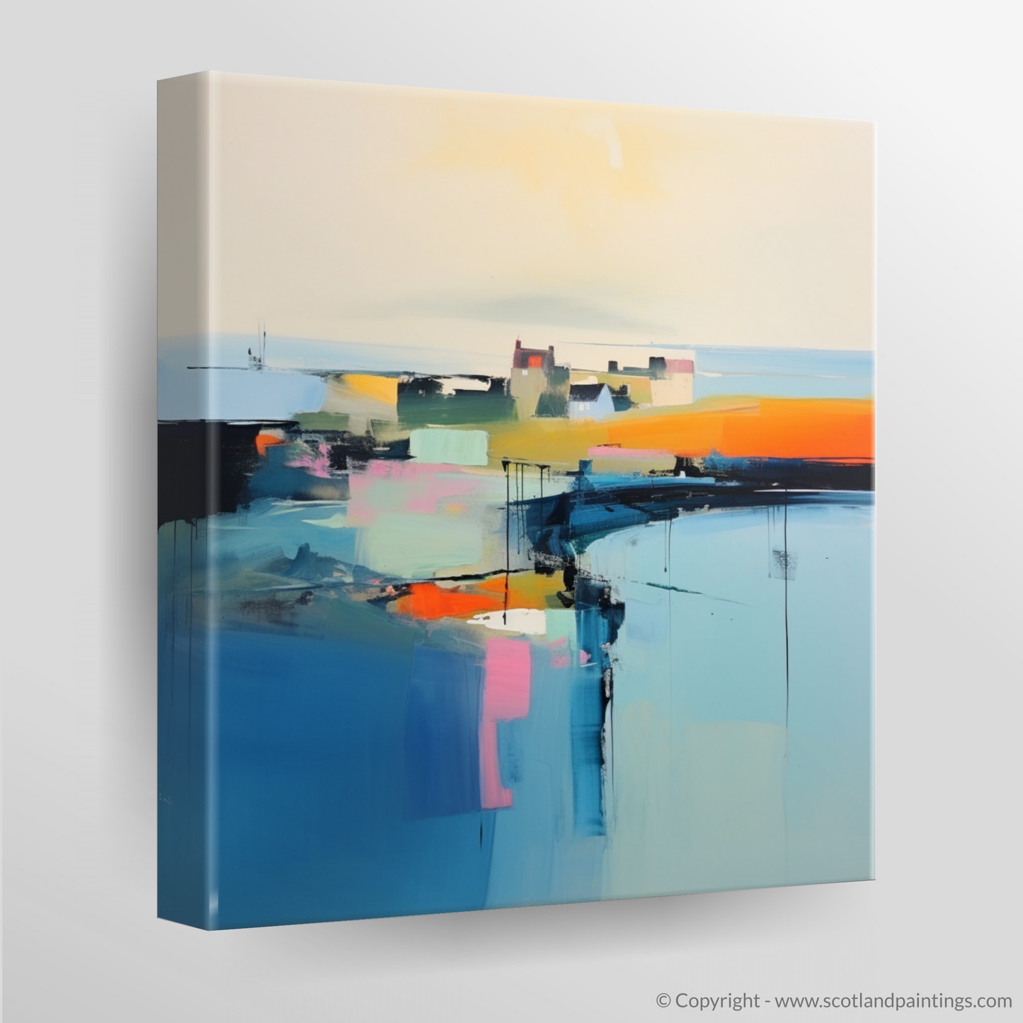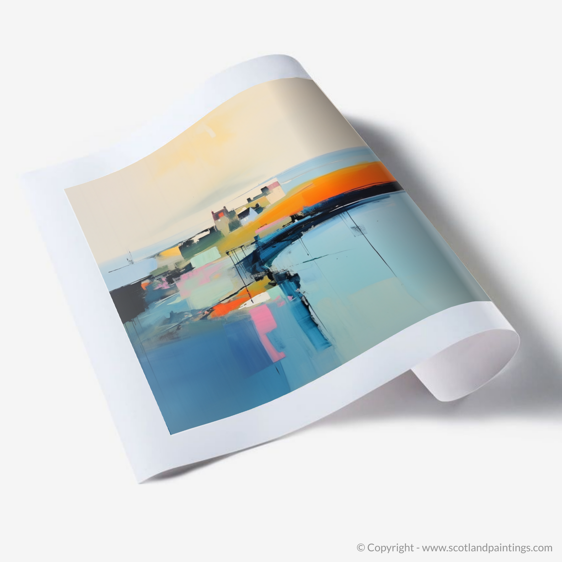 Immerse yourself in the tranquil essence of Macduff Harbour at dusk, captured abstractly through a symphony of vibrant and subdued hues that evoke the soul of the Scottish coastline. This exquisite print from our 'Scottish Harbours' collection offers a contemporary interpretation of the serene landscape, where the last whispers of sunlight dance with the sea's gentle rhythm.