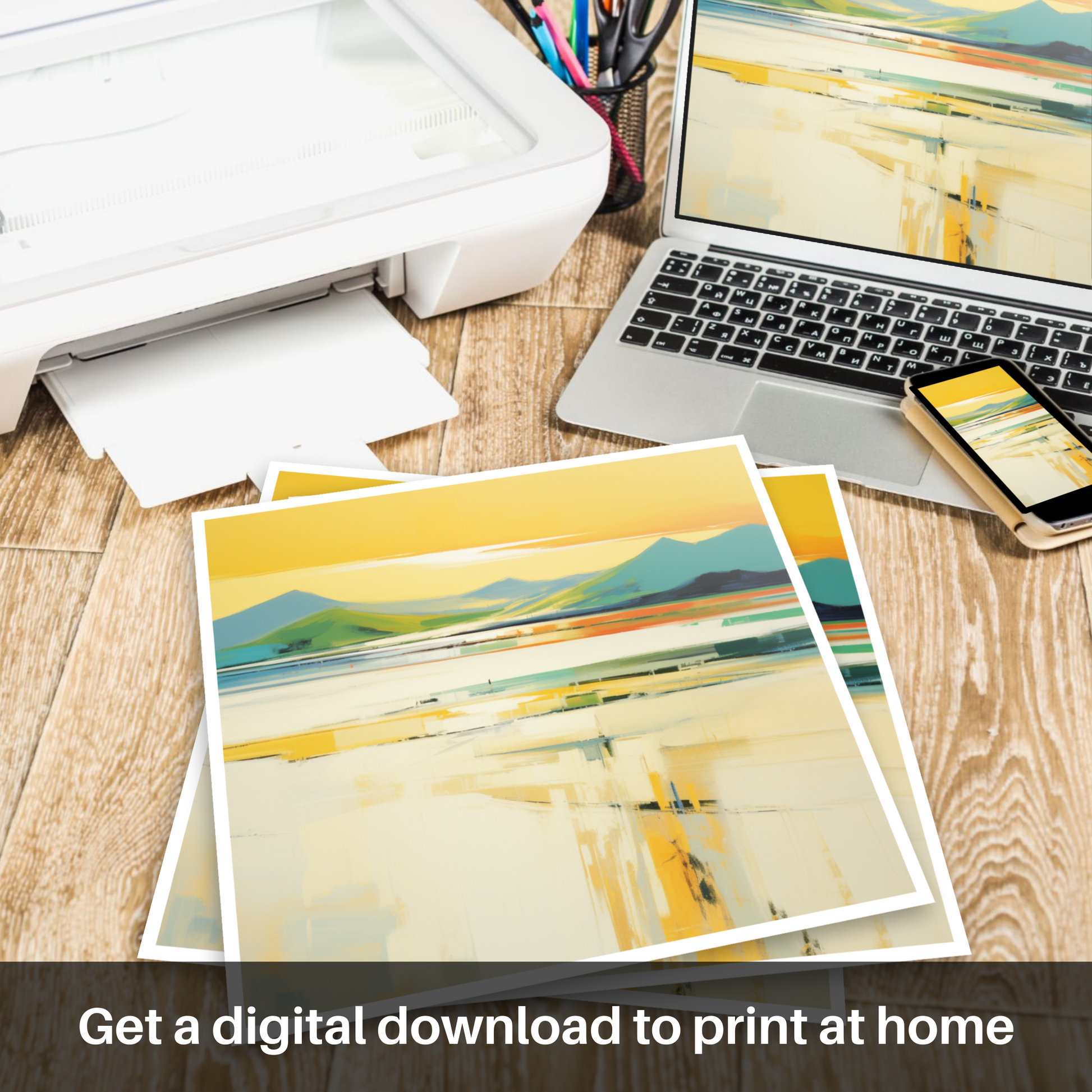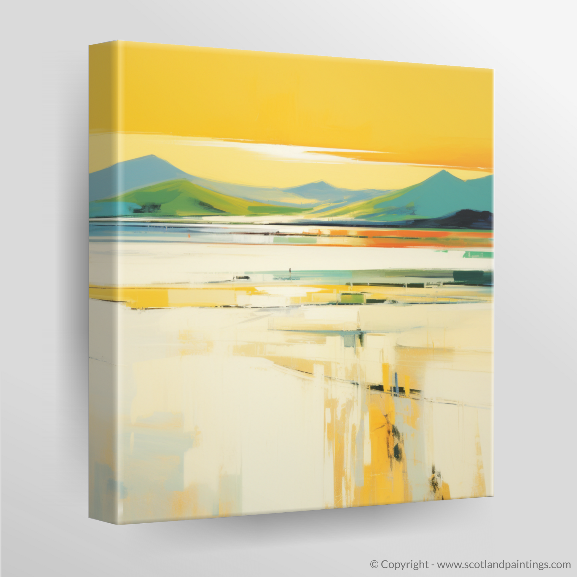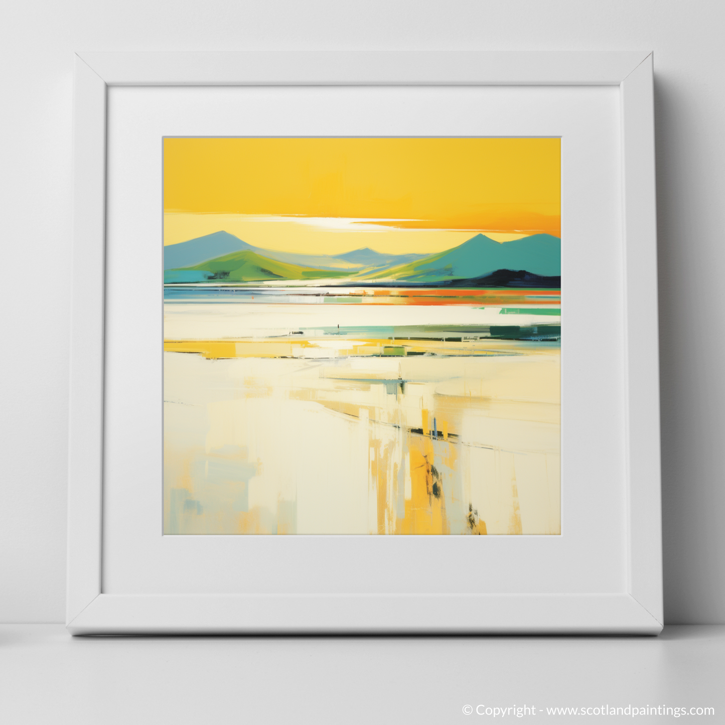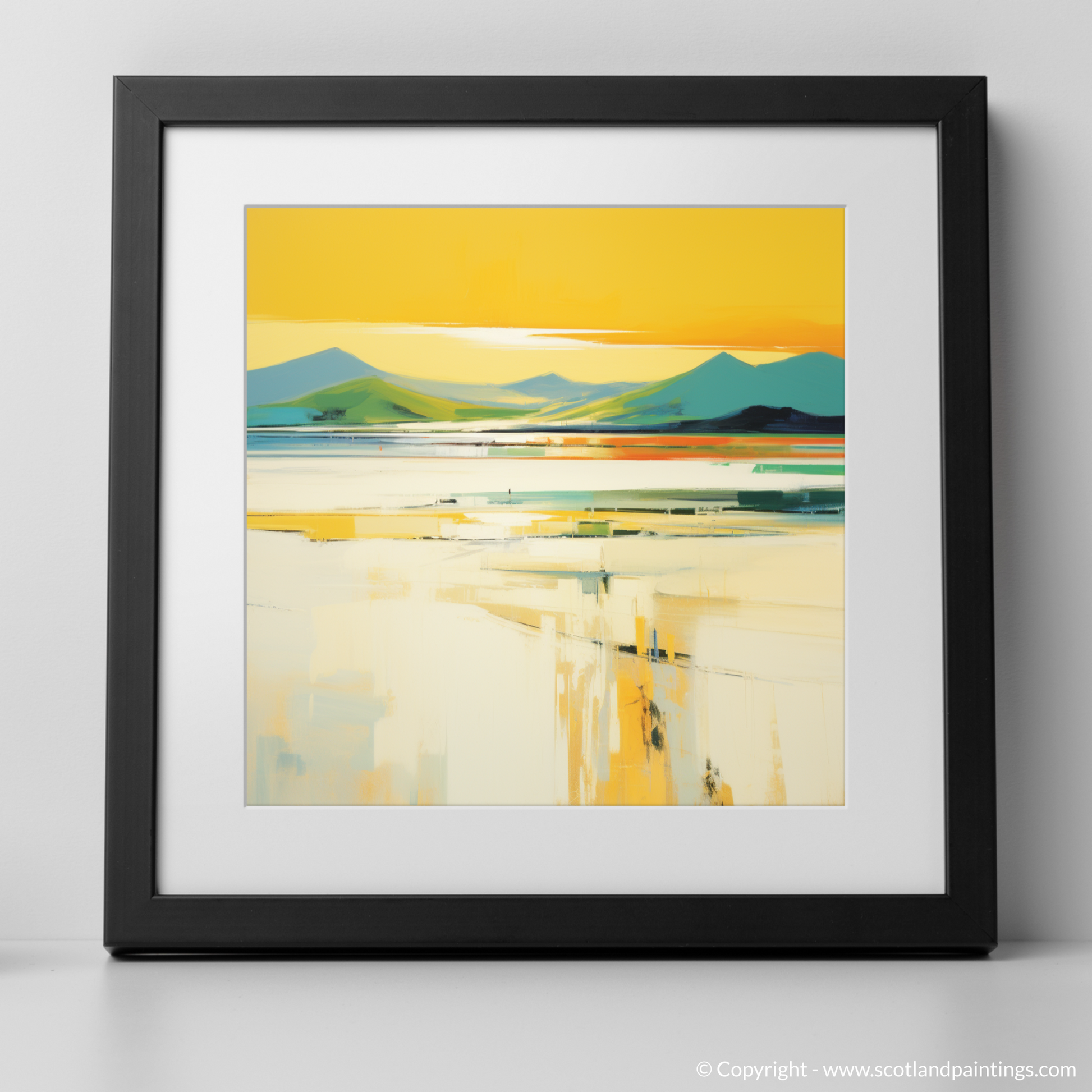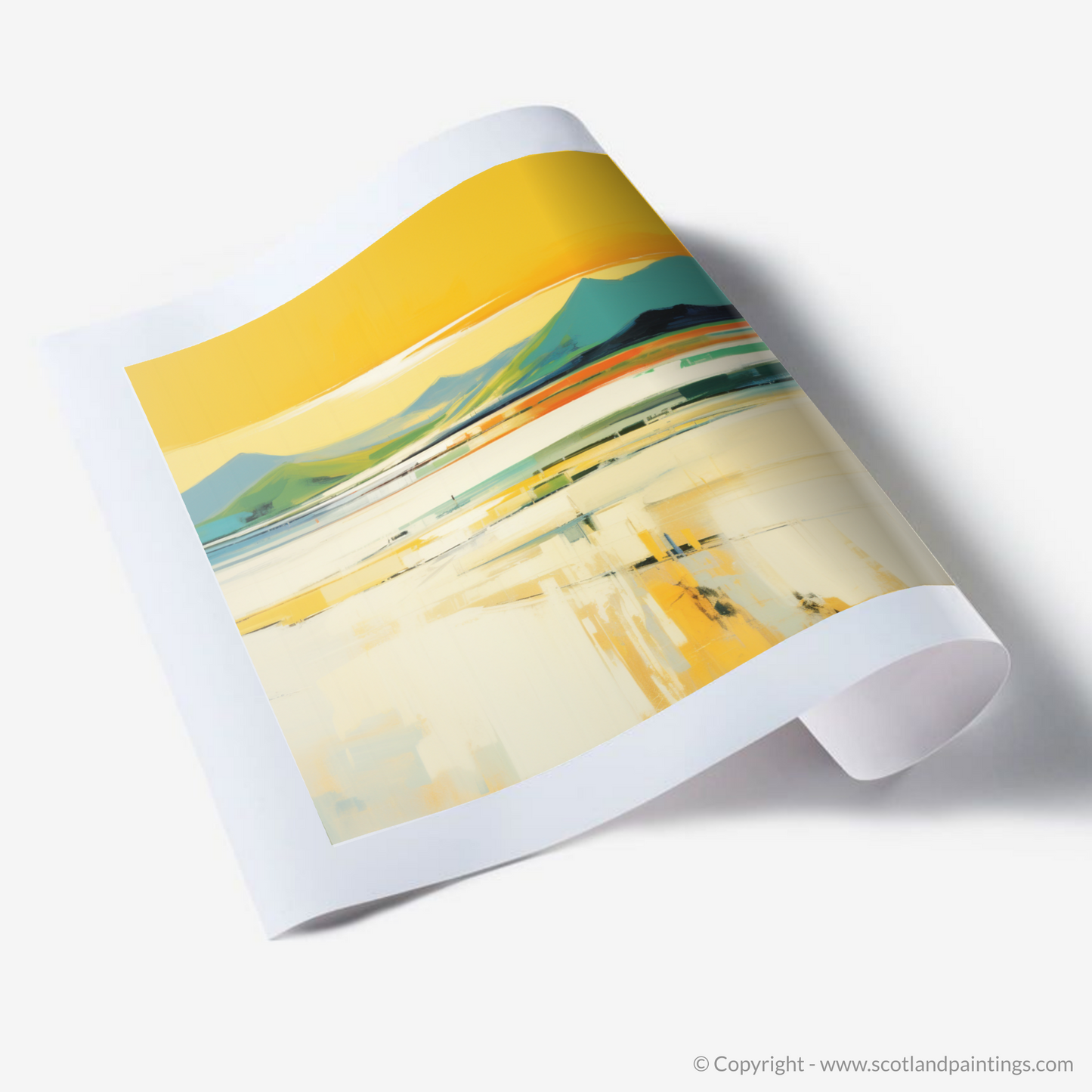 Immerse yourself in the serene essence of Luskentyre Sands as captured during the magical golden hour, an ethereal experience that now lives forever on this distinctive print. Embracing the essence of Abstract Expressionism, the piece interprets the beauty of one of Scotland's most breath-taking beaches, offering viewers a feast for the senses through an array of bold colours and dynamic brushwork.