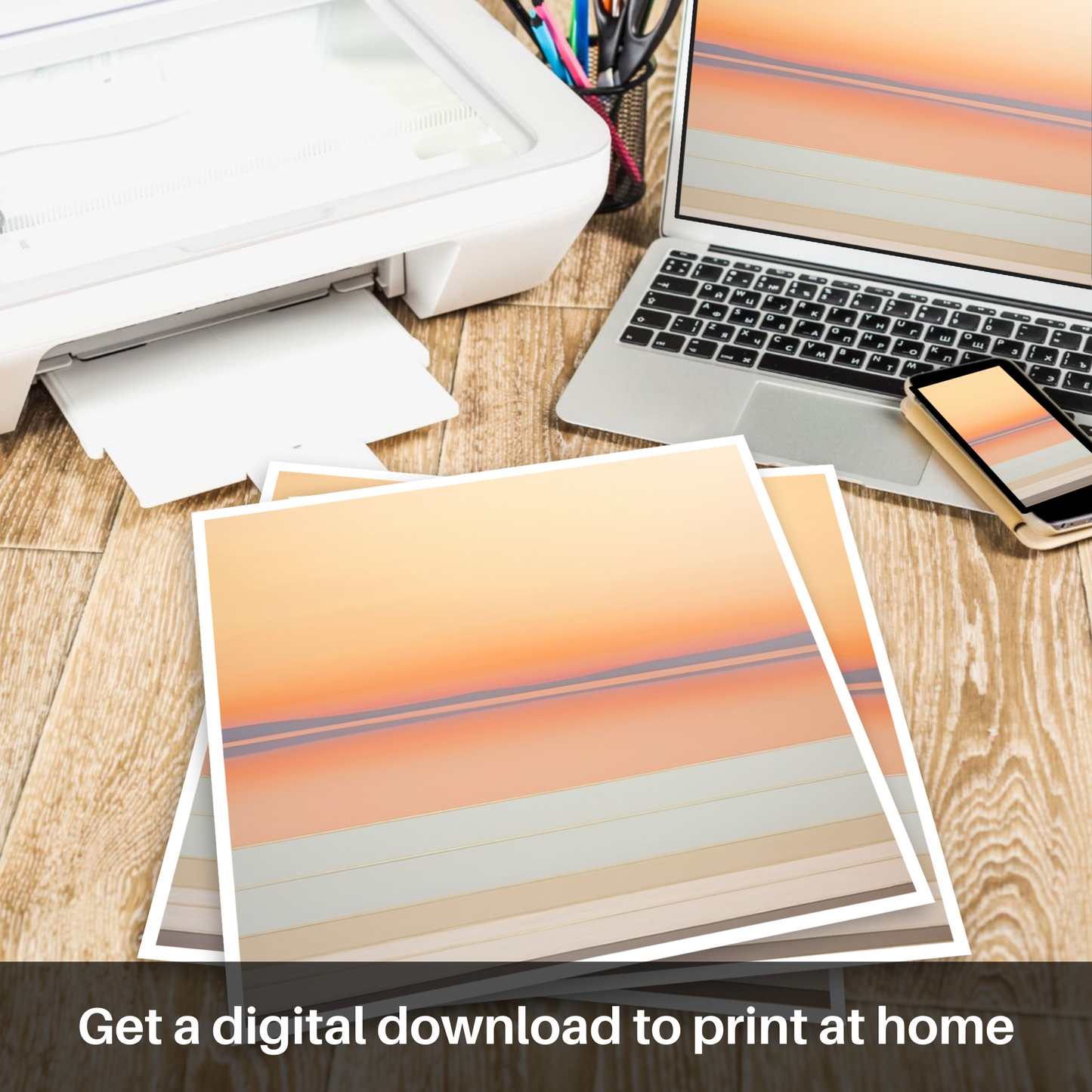 Allow the tranquil essence of a Scottish sunset to wash over you with this mesmerising abstract print from our 'Scottish Beaches' collection. Capturing the serene beauty of Longniddry Beach, the artwork provides a contemporary interpretation of the natural spectacle that graces the horizon at day's end.