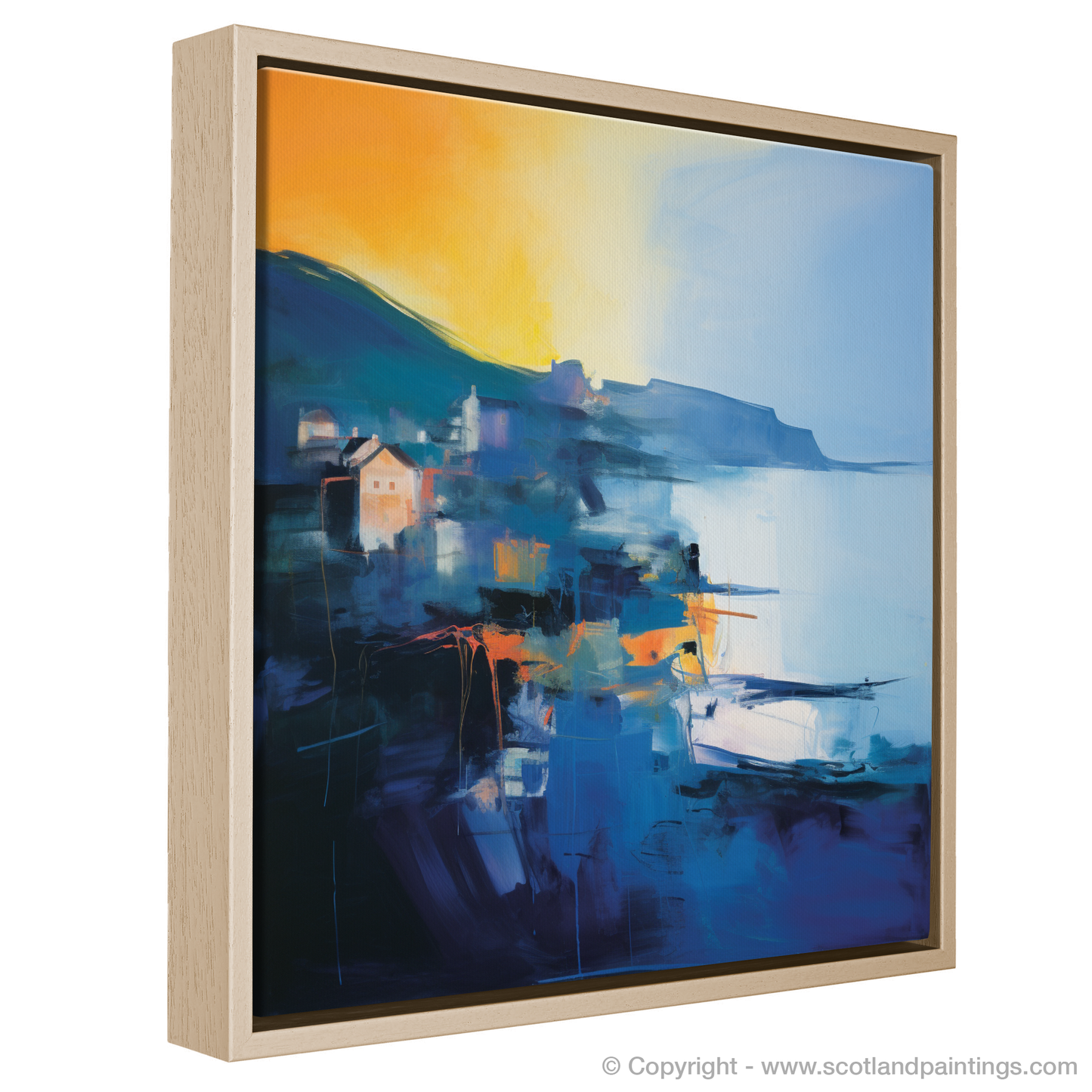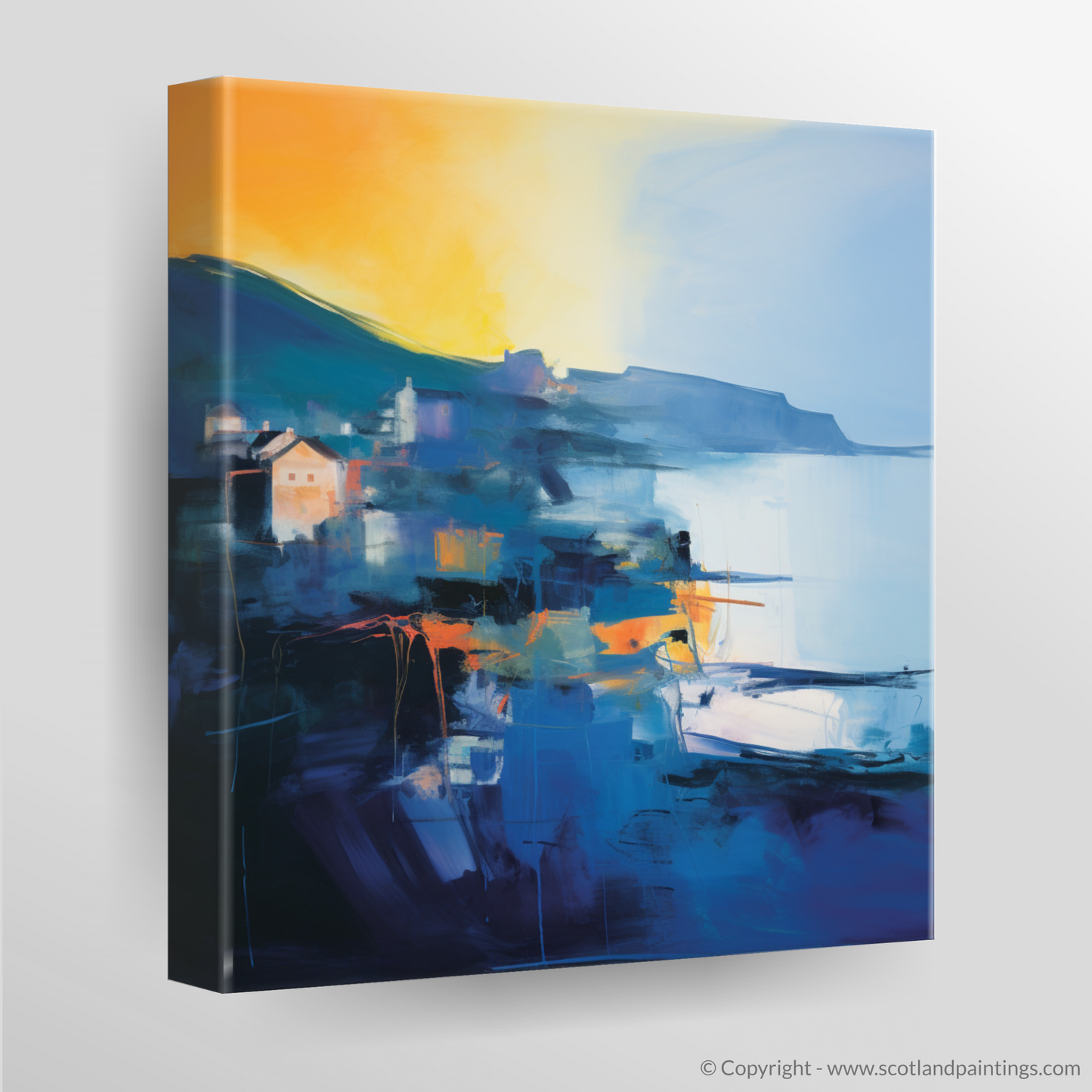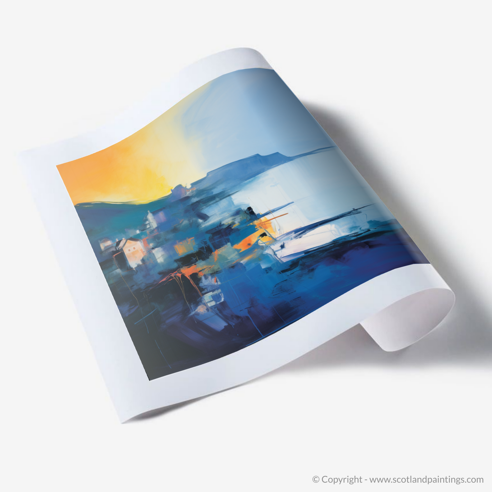 Immerse yourself in the captivating essence of the Scottish coastline with this evocative abstract interpretation of Pennan Harbour at dusk. The work is a mesmerising confluence of bold and subtle hues, where the line between sea, land, and sky is intriguingly blurred.