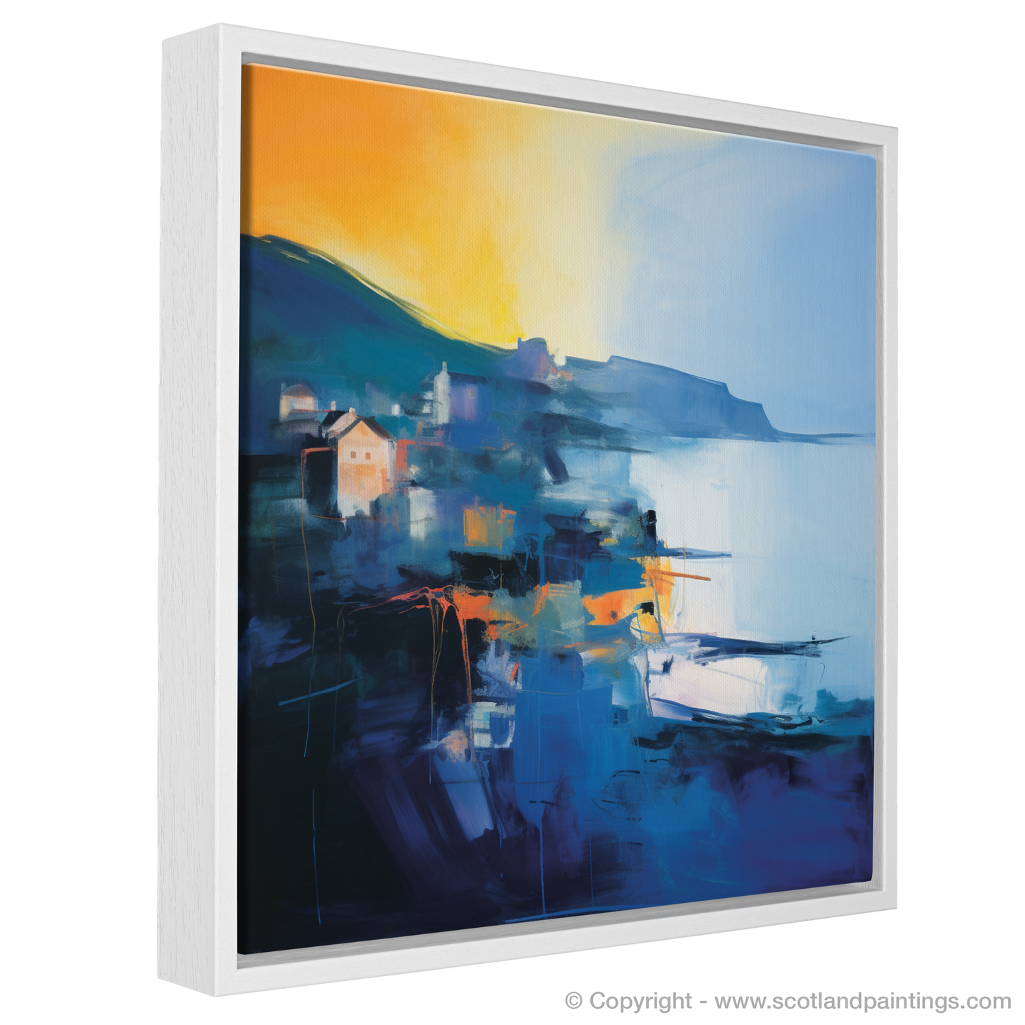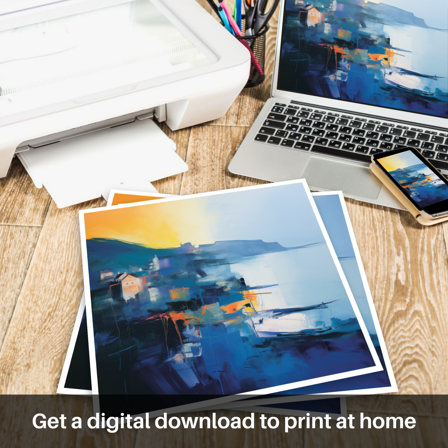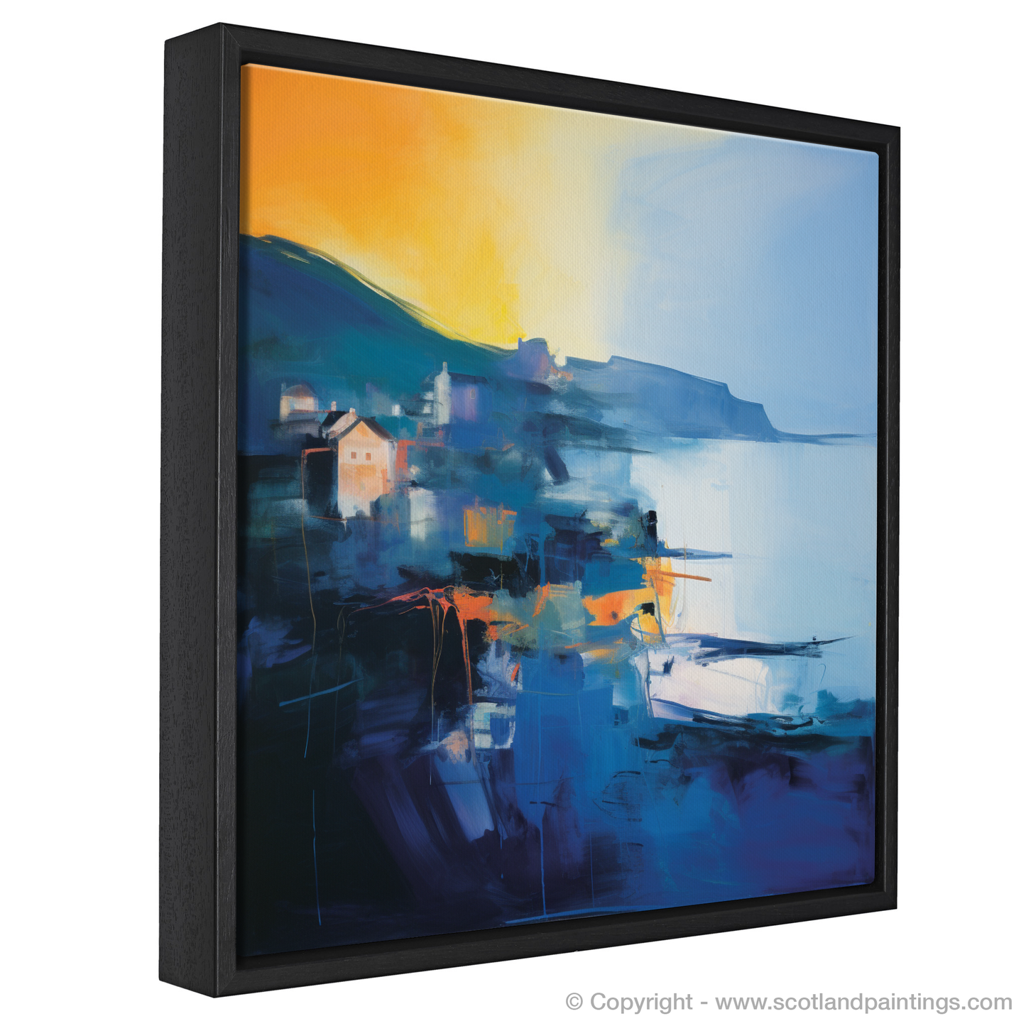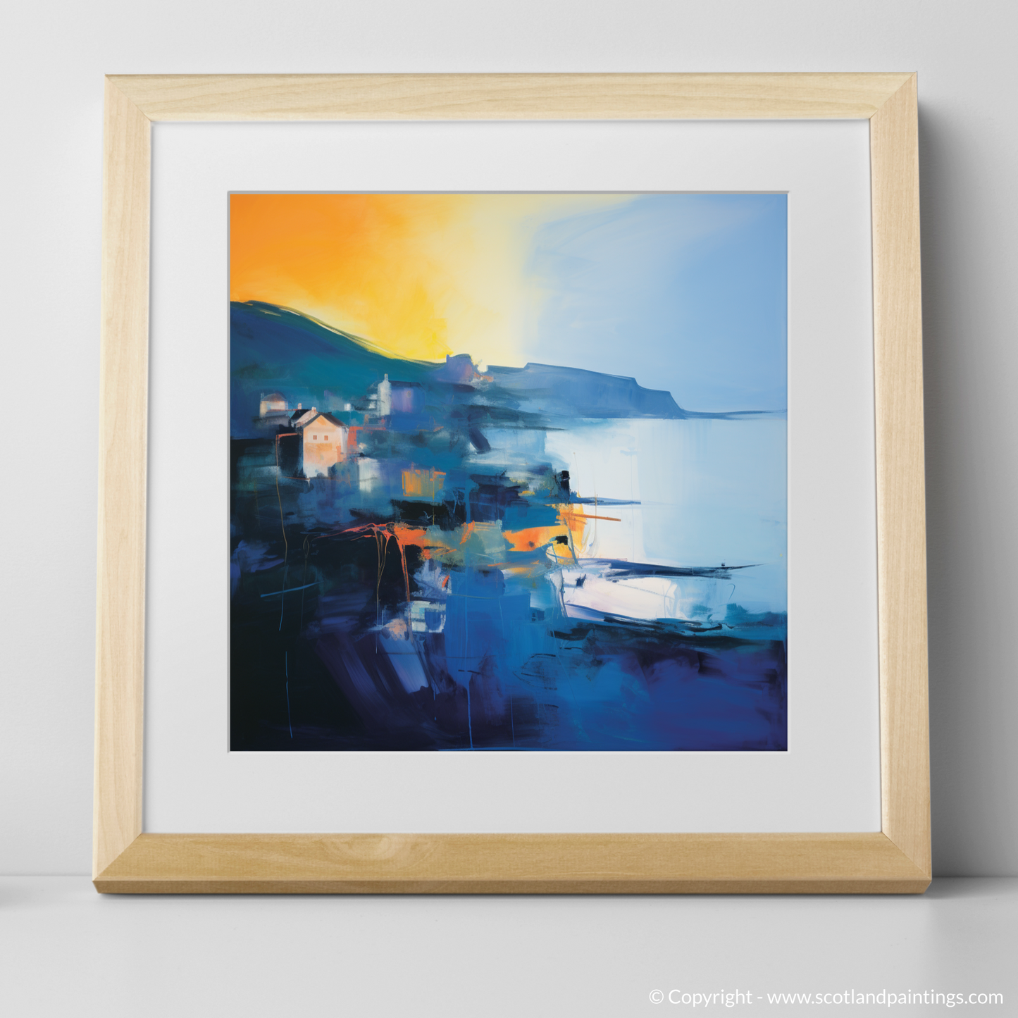 Immerse yourself in the captivating essence of the Scottish coastline with this evocative abstract interpretation of Pennan Harbour at dusk. The work is a mesmerising confluence of bold and subtle hues, where the line between sea, land, and sky is intriguingly blurred.