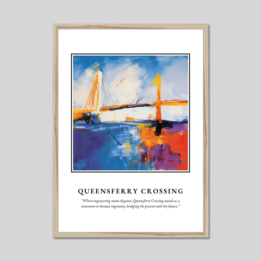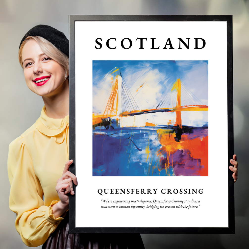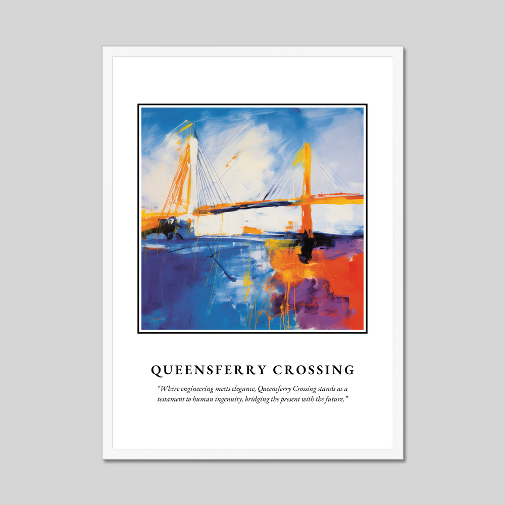 Below the painting, the quote “Where engineering meets elegance, Queensferry Crossing stands as a testament to human ingenuity, bridging the present with the future.” encapsulates the essence of this modern marvel and enriches the narrative of this masterpiece.