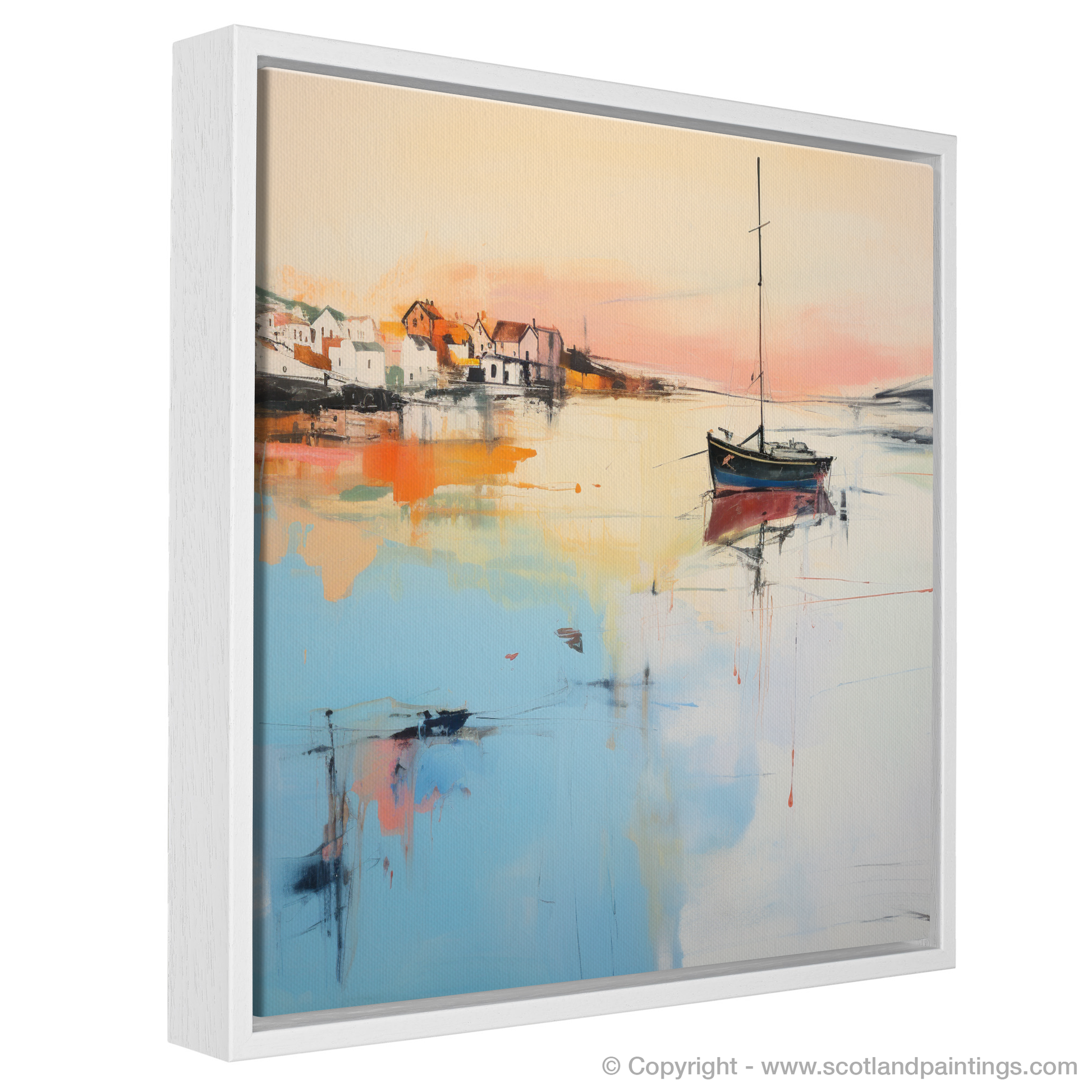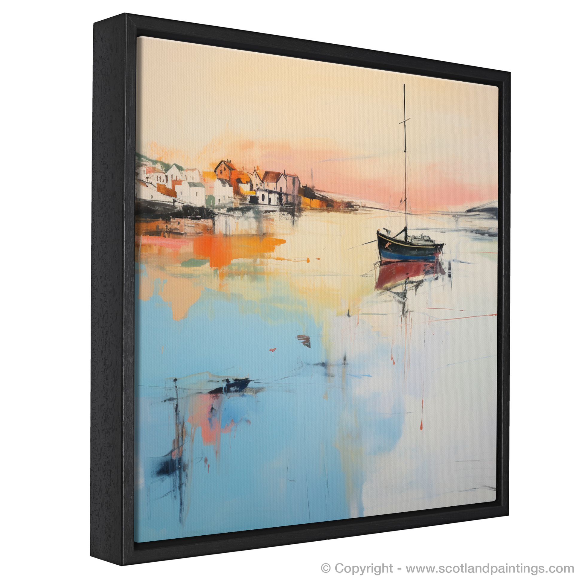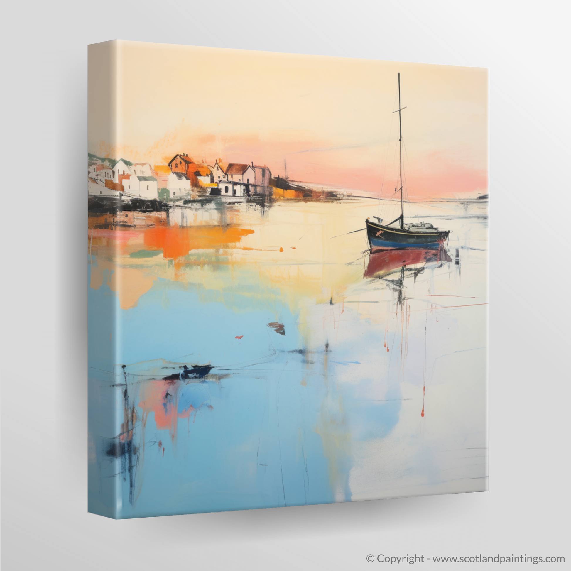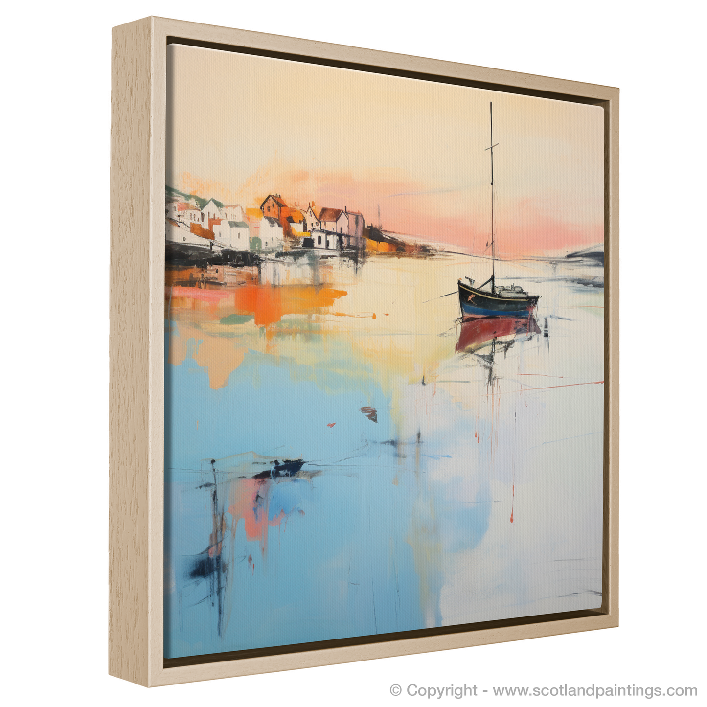 Immerse yourself in the tranquil beauty of a Scottish harbour at golden hour, captured in this evocative abstract print. The essence of Port Ellen is distilled through vibrant brush strokes and a deftly curated palette, intertwining the warmth of the sunset with the cool tranquillity of the sea.
