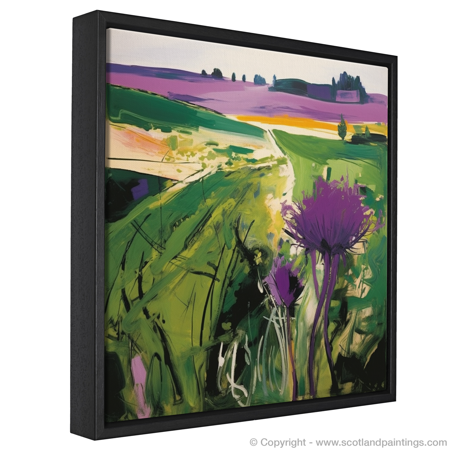 Immerse yourself in the vibrant essence of Scotland's natural beauty with our abstract rendition of the Thistle, set amidst the mesmerising fields that embrace Stirling Castle. As Scotland's cherished national flower, the thistle stands proudly at the forefront of this captivating print, rendered in striking shades of purple that command the viewer's attention and symbolise the resilience and majesty of the Scottish spirit.