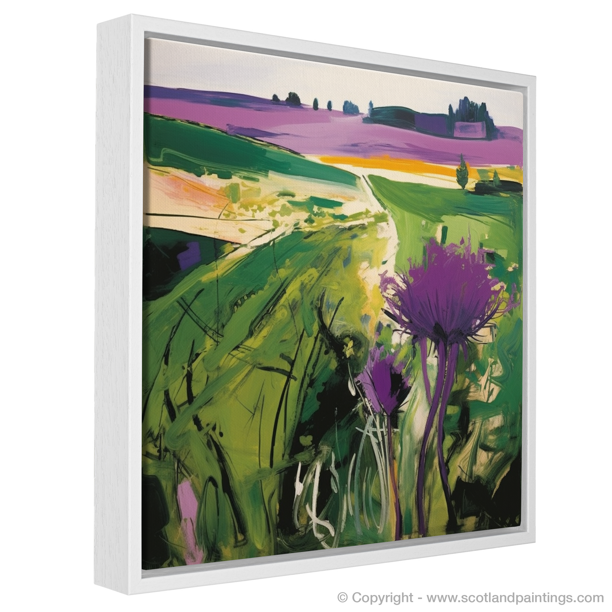 The composition cleverly balances the raw, untamed energy of abstract forms with the serene beauty of nature, resulting in a piece that is both thought-provoking and soothing to the senses. This print invites the onlooker to a unique experience, allowing each individual to interpret the flourishing Scottish flora in their own imaginative way.