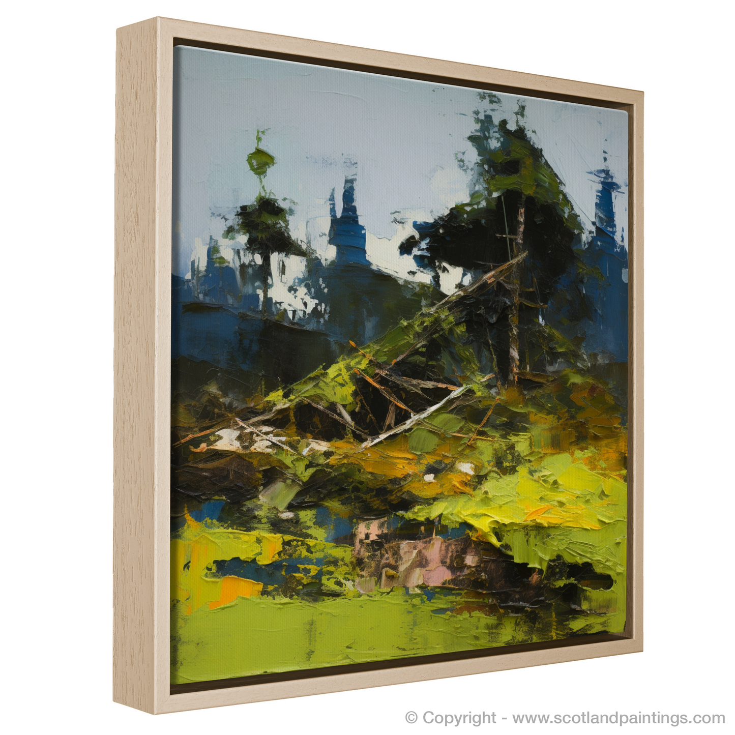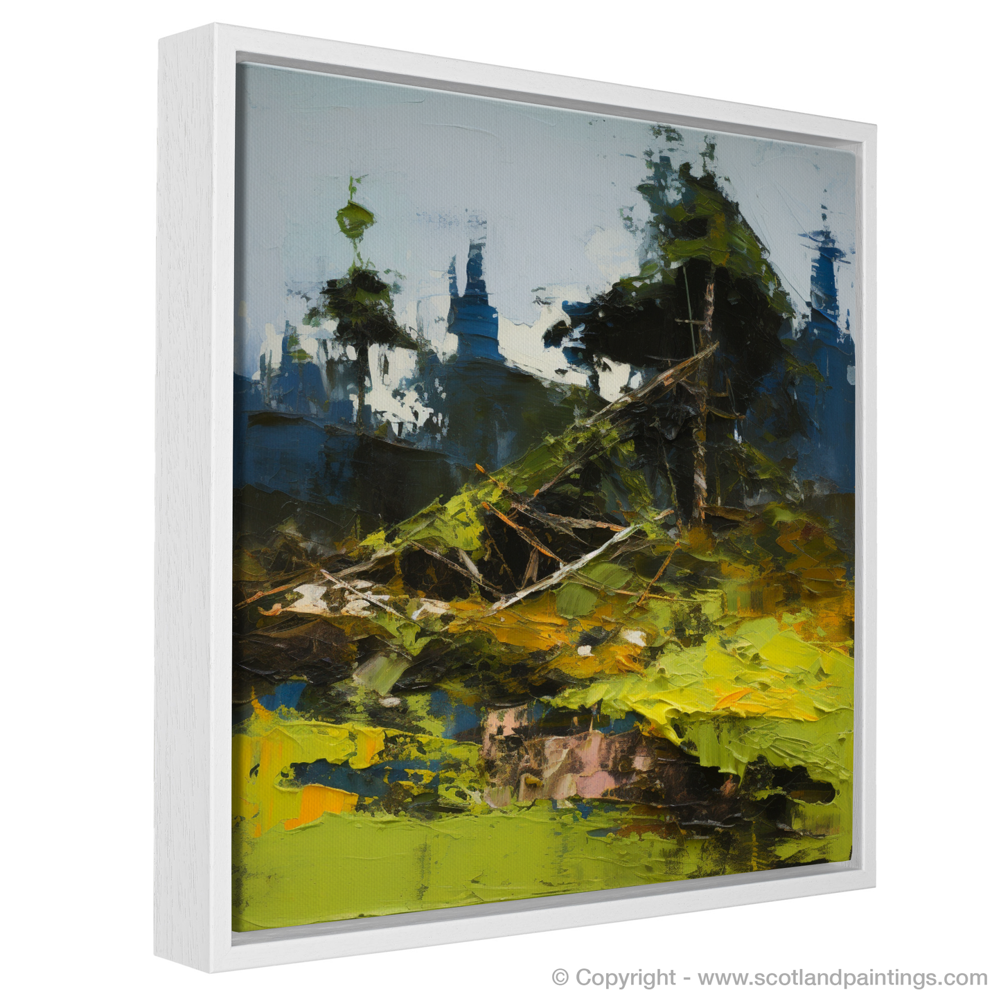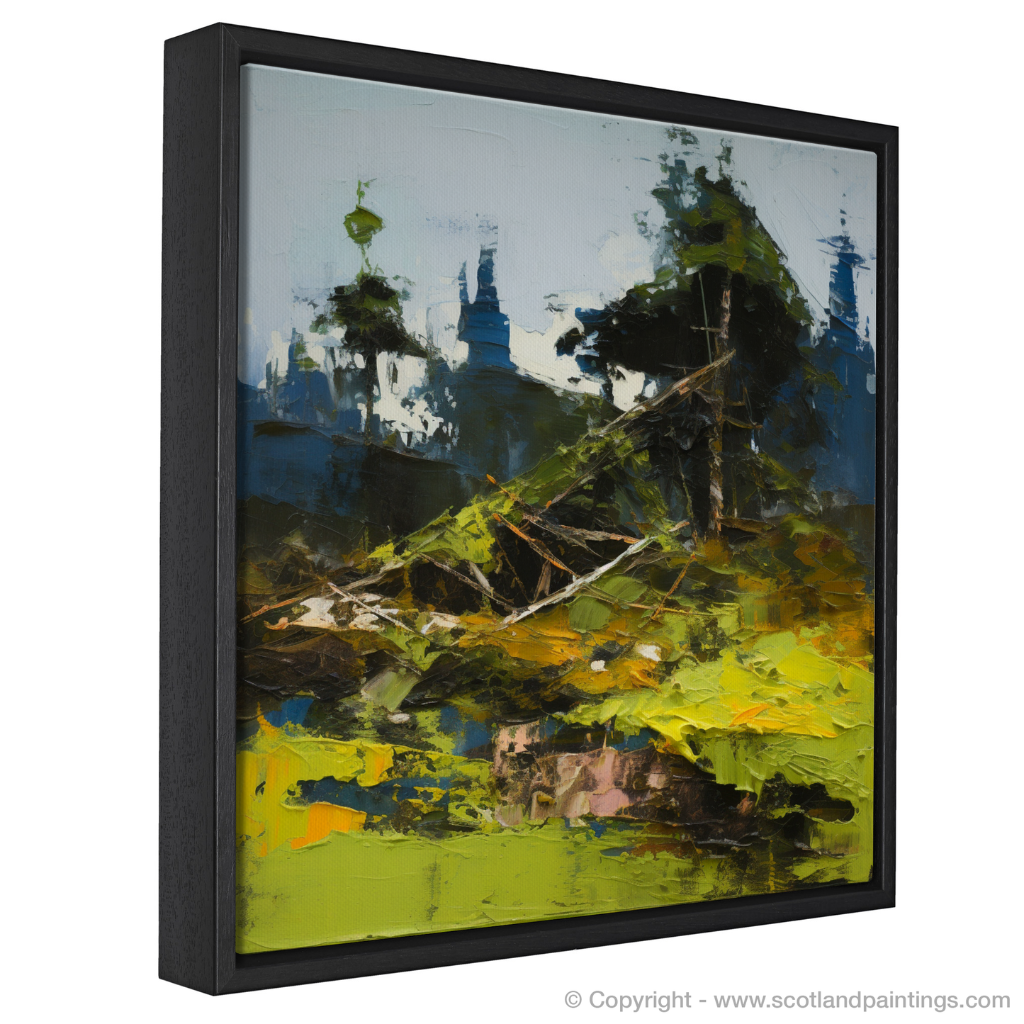 Boisterous strokes of deep greens and rich earthy tones intermingle with splashes of vibrant yellows and ochres, invoking the verdant mosses and lichens that carpet the Scottish wilderness. The vigorous application of paint creates an almost tactile surface that beckons to be explored, mirroring the complex, spongy texture of the clubmoss underfoot.