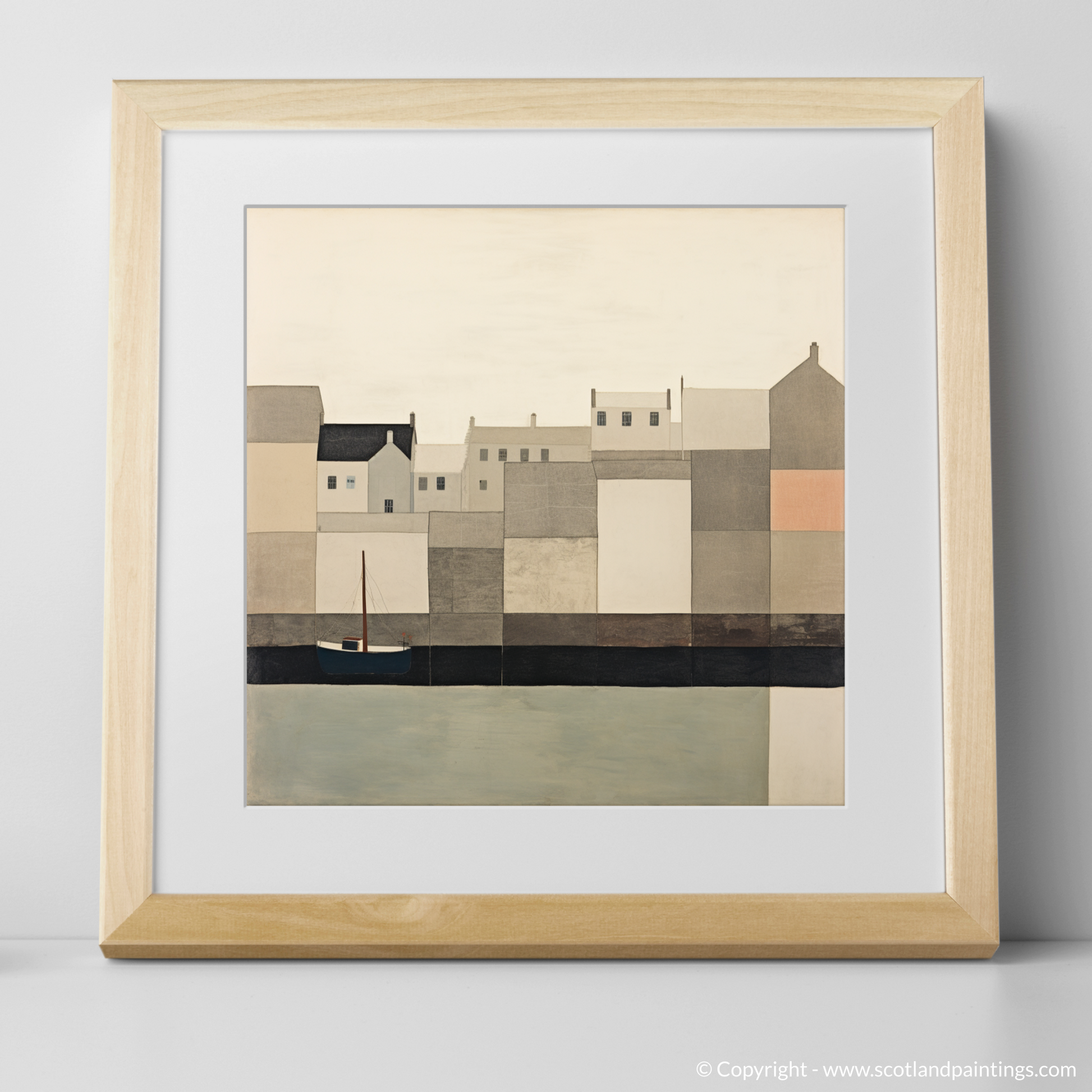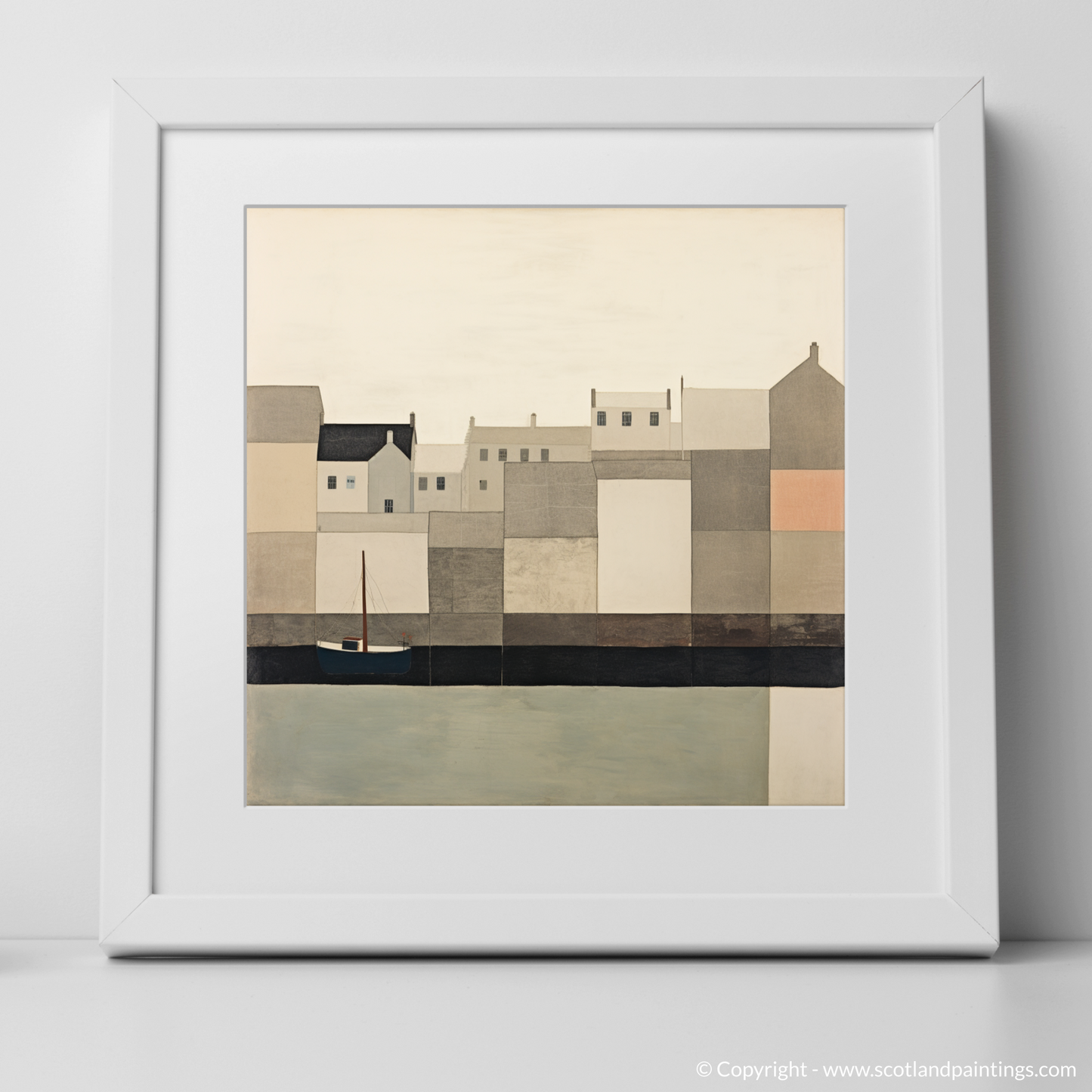 Above, a softened sky, rendered in a light, almost imperceptible gradient, crowns the composition, creating a harmonious balance between the water below and the open heavens above. This enticing print, a blend of nostalgia and modernism, offers a fresh perspective on one of Scotland's picturesque harbours, transitioning effortlessly from the representational to the abstract.