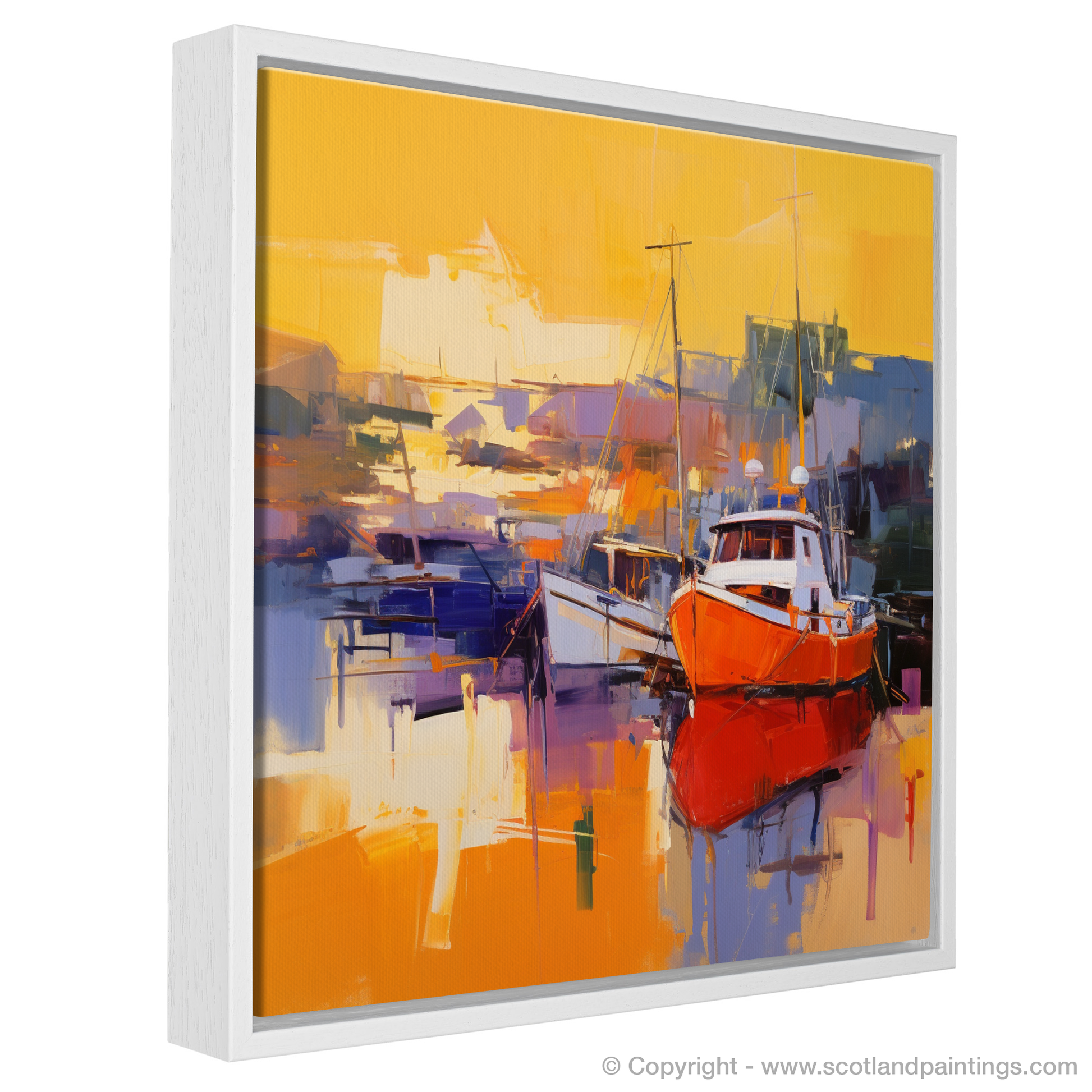 This piece is an homage to the transformative power of light over landscape, particularly in a setting as rich in character as a Scottish harbour. Whether adorning a living space or an office, the print serves as a window to a world where colour reigns supreme, and beauty arises from the interplay of light, water, and the artist's imagination. A testament to the charm of Scotland's maritime heritage, it is poised to enliven any interior with its dynamic abstract portrayal.