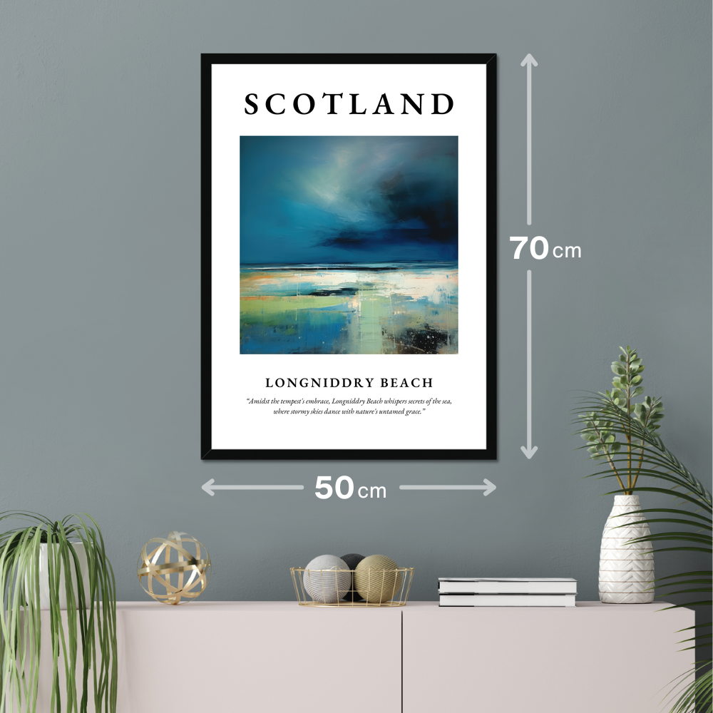 More than just a piece of art, this poster is an homage to Longniddry Beach, located on the east coast of Scotland. Known for its expansive sands and picturesque views, Longniddry is a beloved retreat for locals and travellers alike. It offers a serene escape, where you can breathe in the brisk sea air and lose yourself in the horizon's endless embrace. The poster’s abstract portrayal mirrors the beach’s changing moods—from tranquil to tempestuous—providing a visual narrative of its enduring allure.